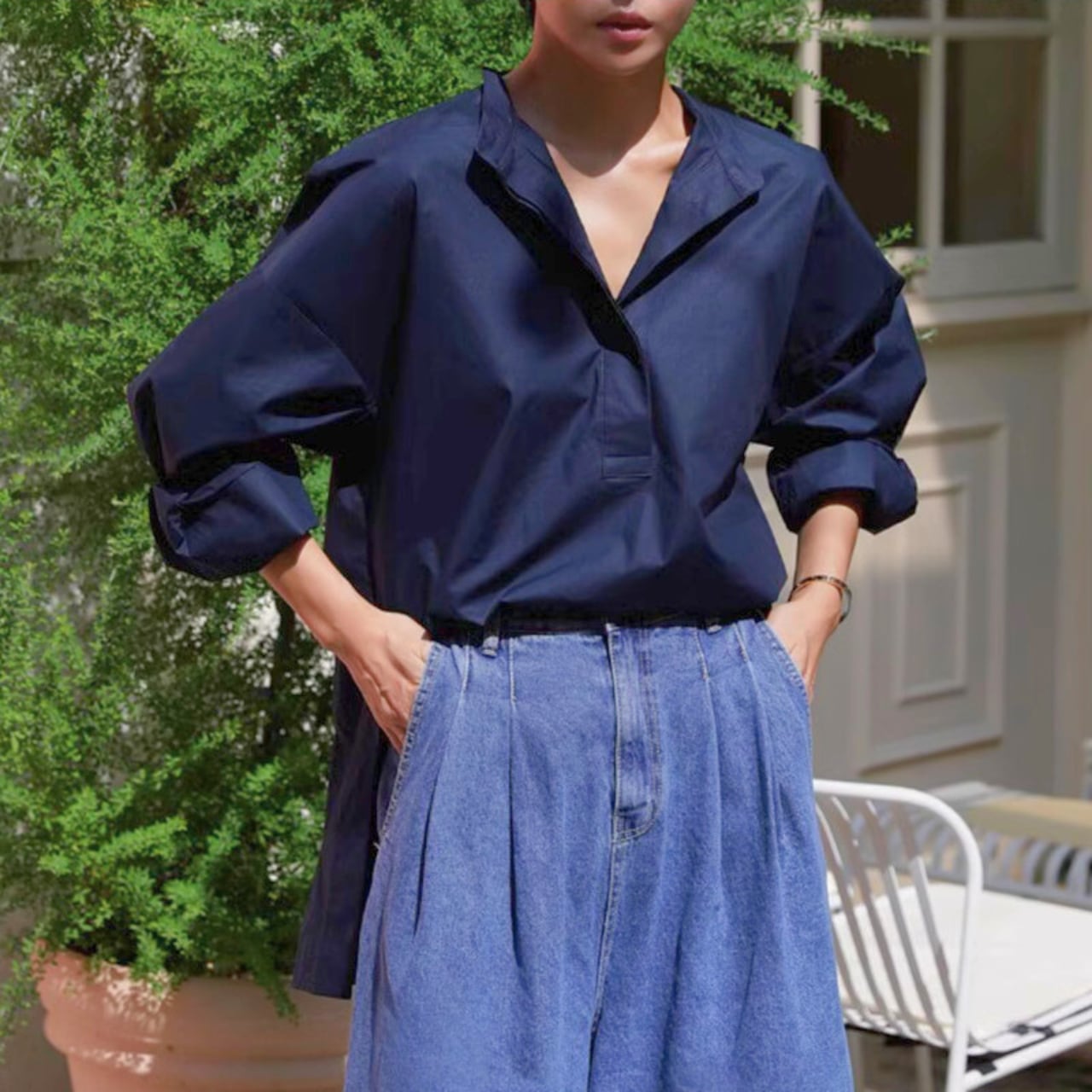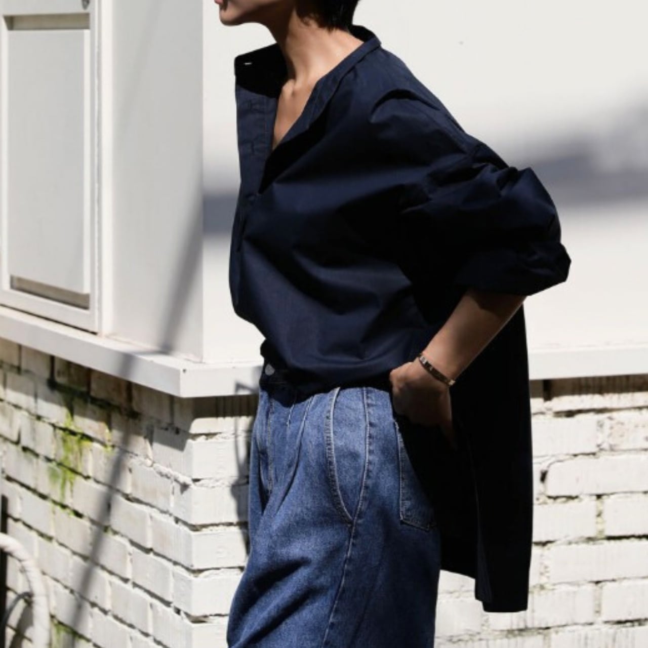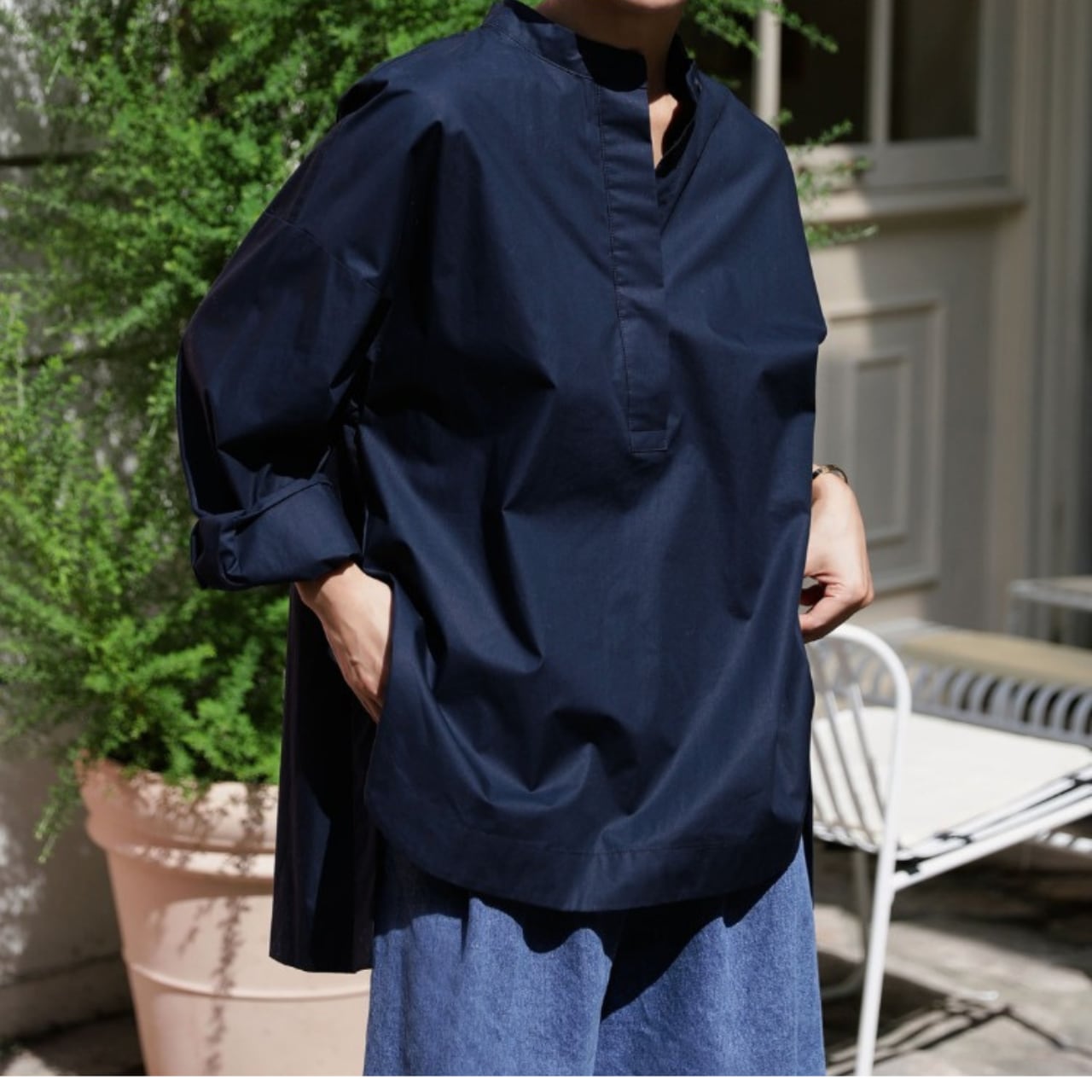 スタンドカラーロングスリーブAラインシャツ 00229