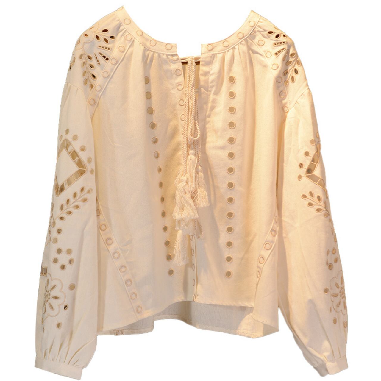 アイレット刺繍ボートネック七分袖ブラウス 00258