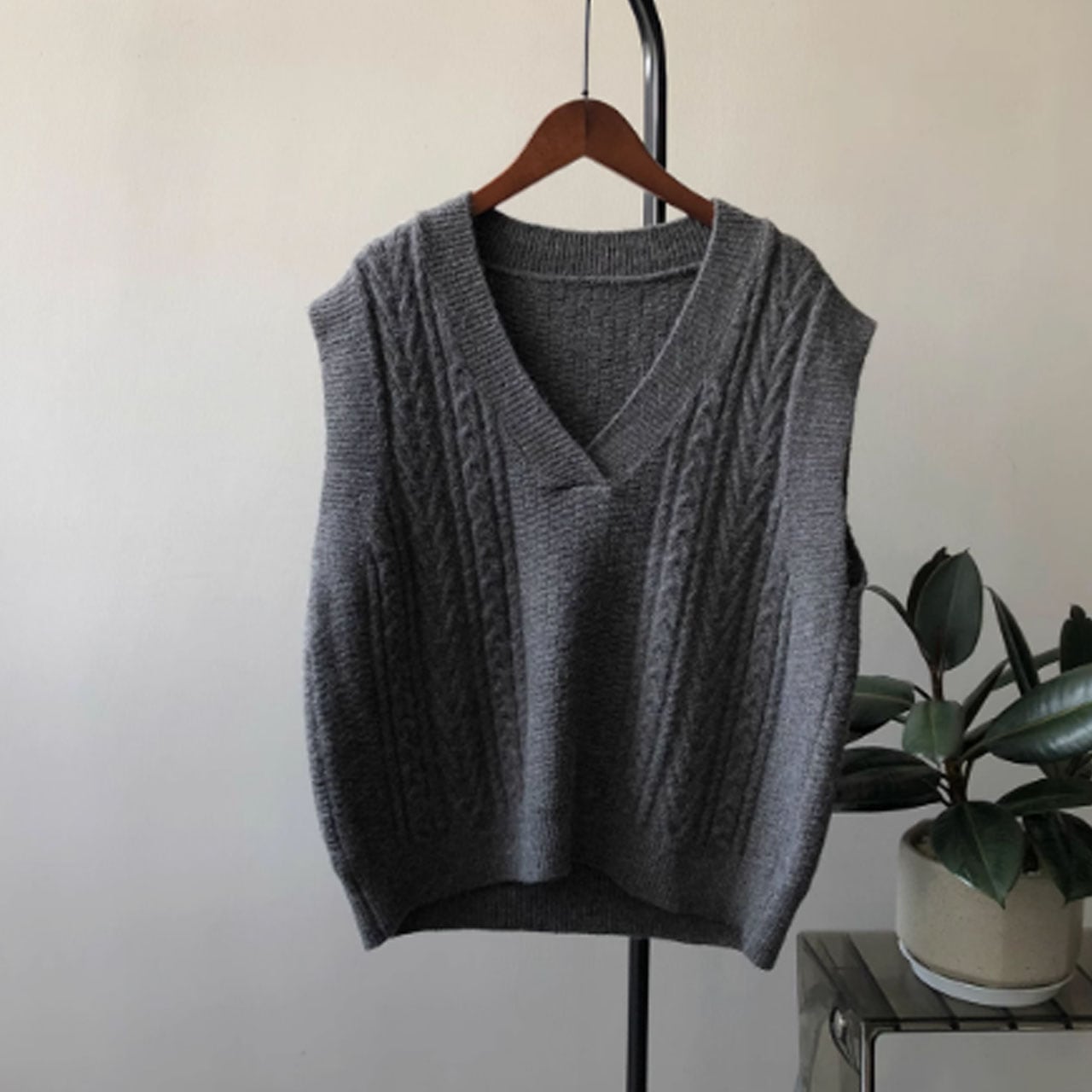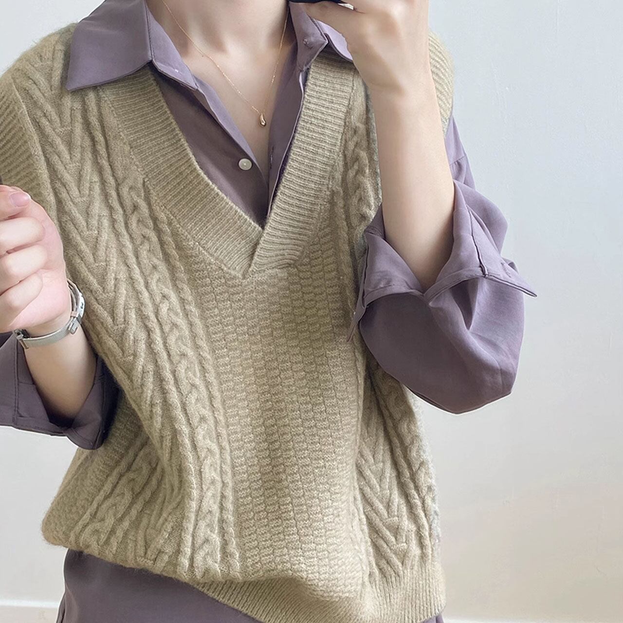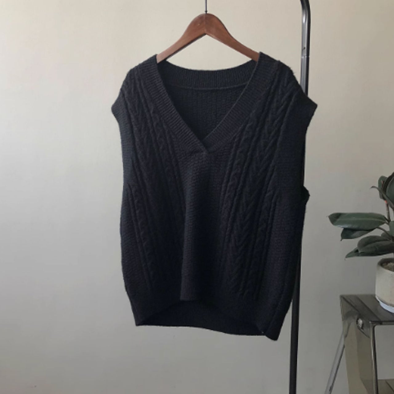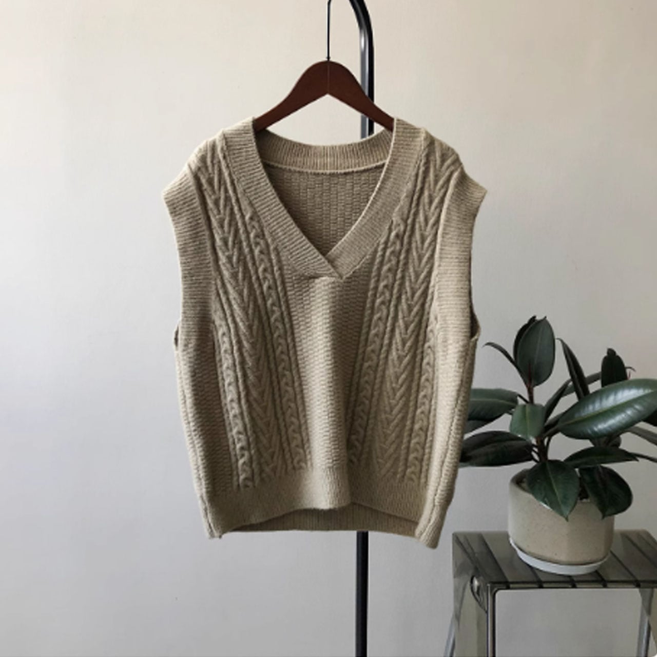 Vネックケーブルニットベスト 00289