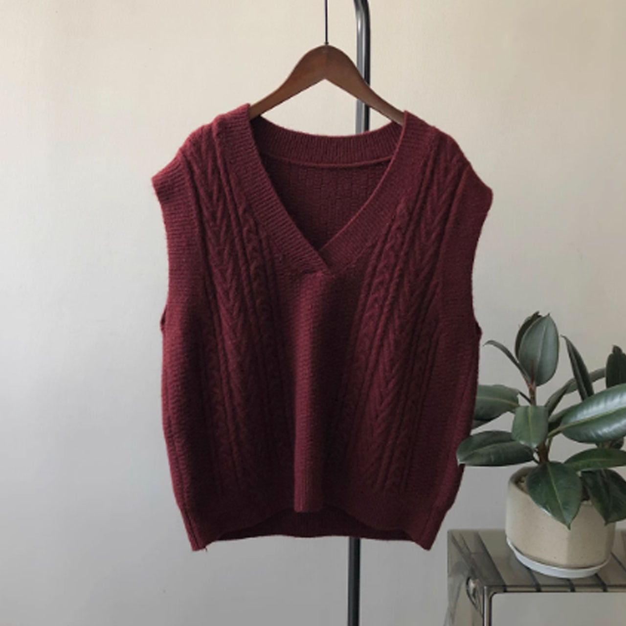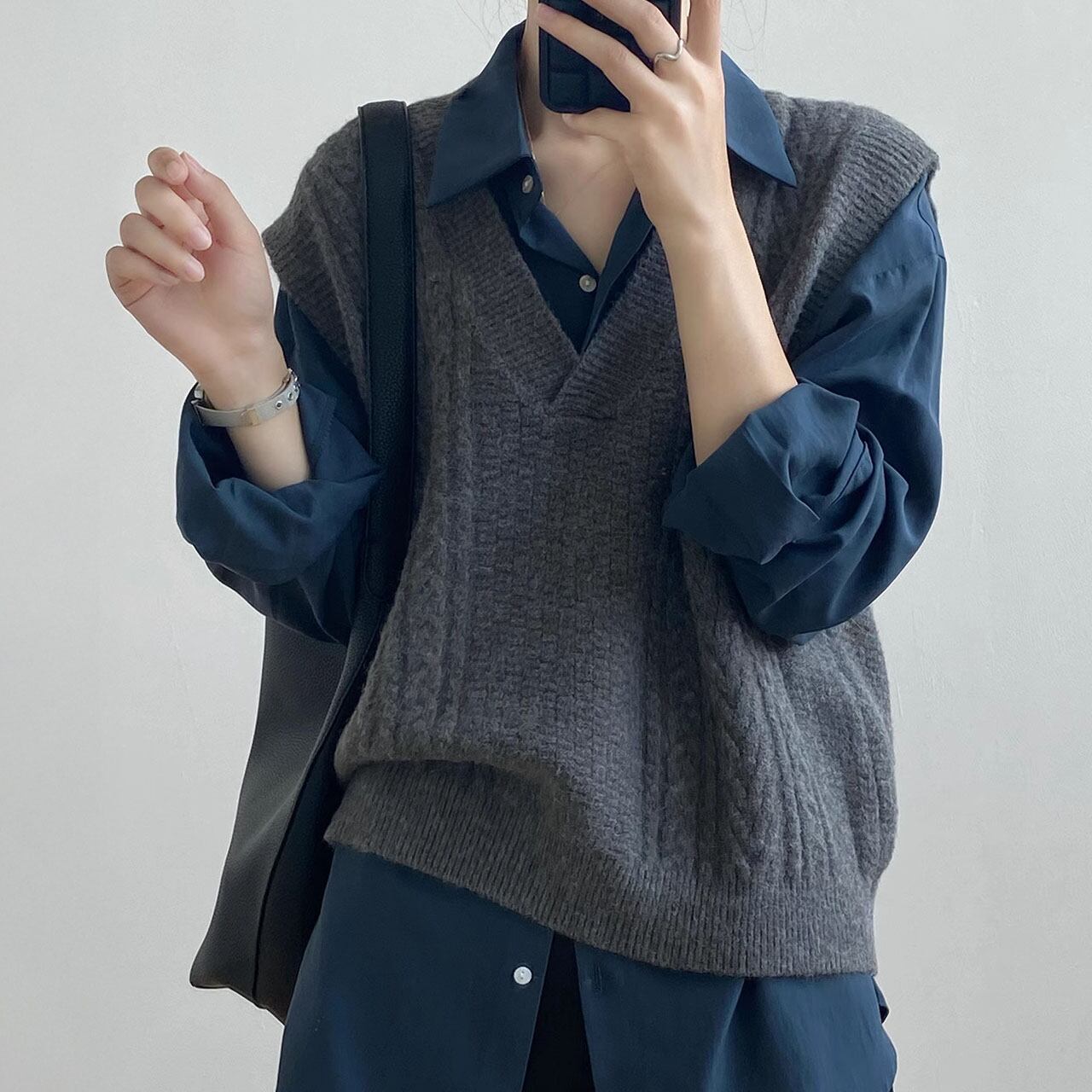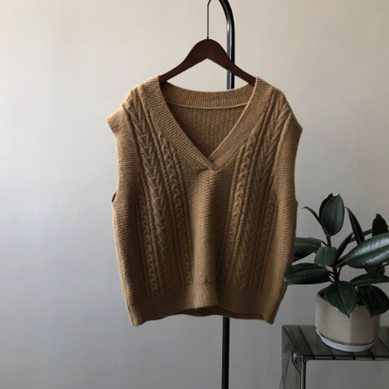 Vネックケーブルニットベスト 00289