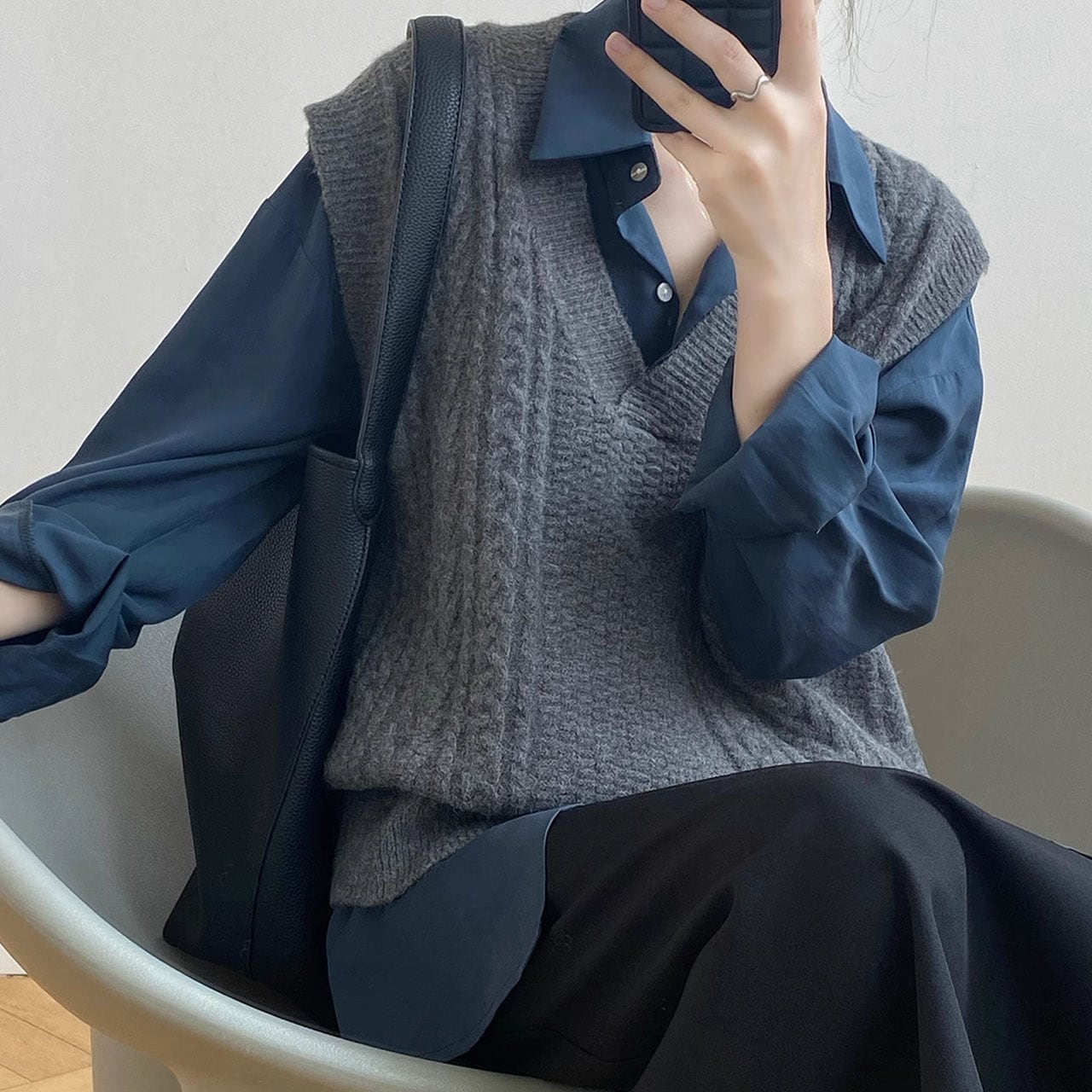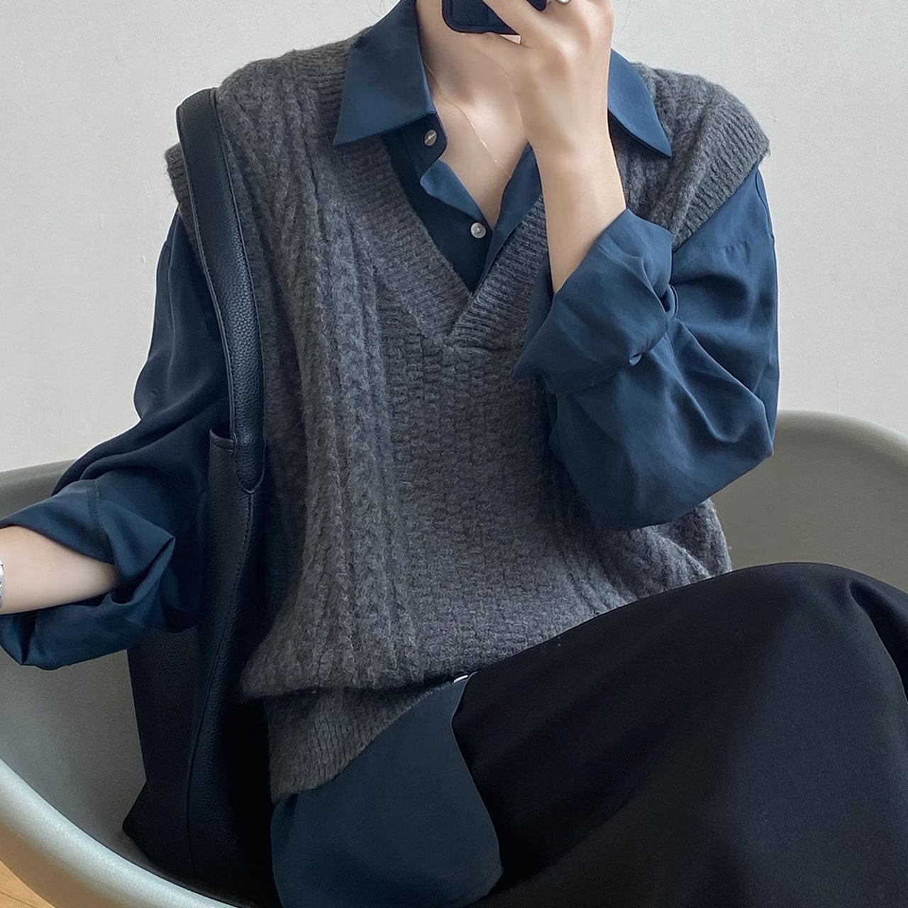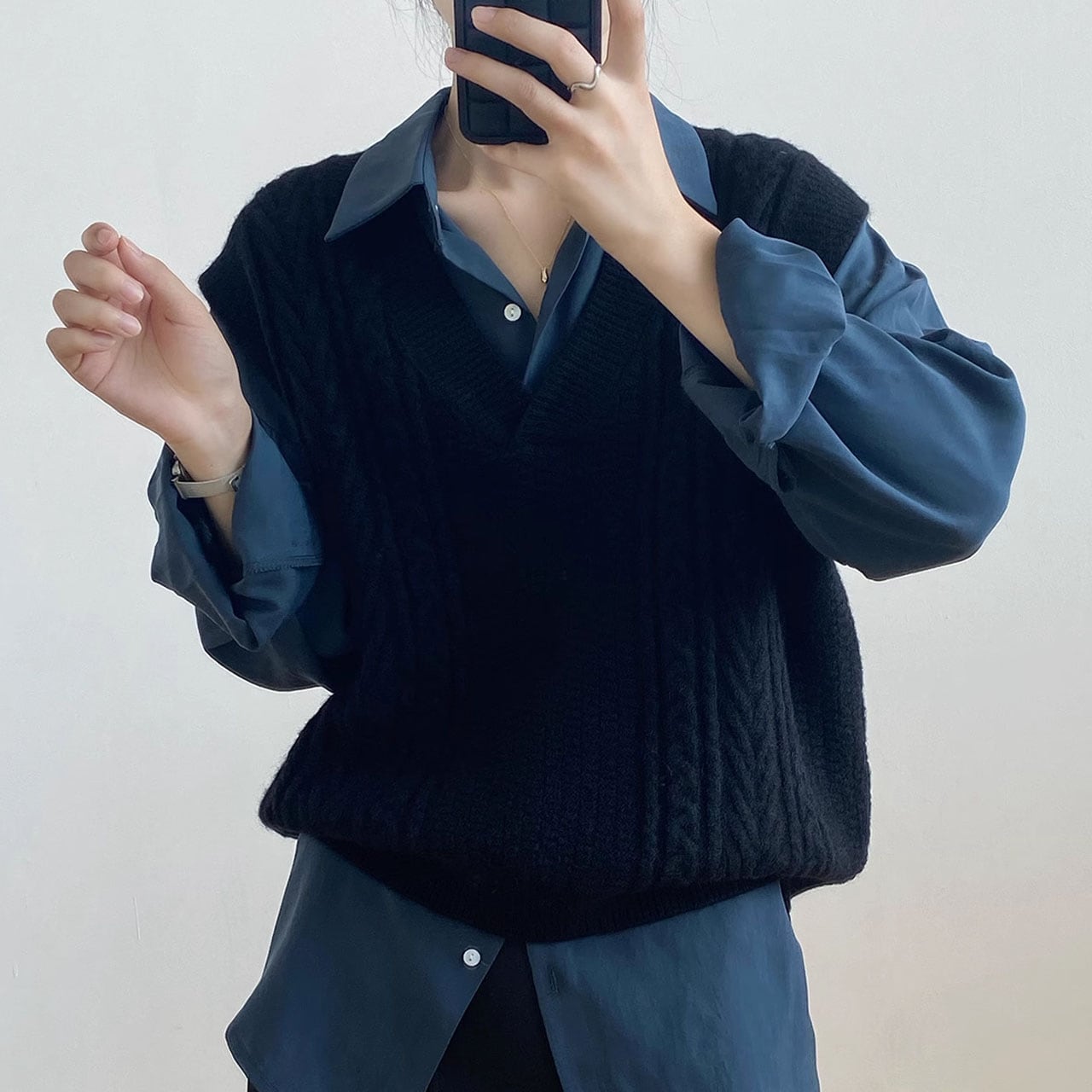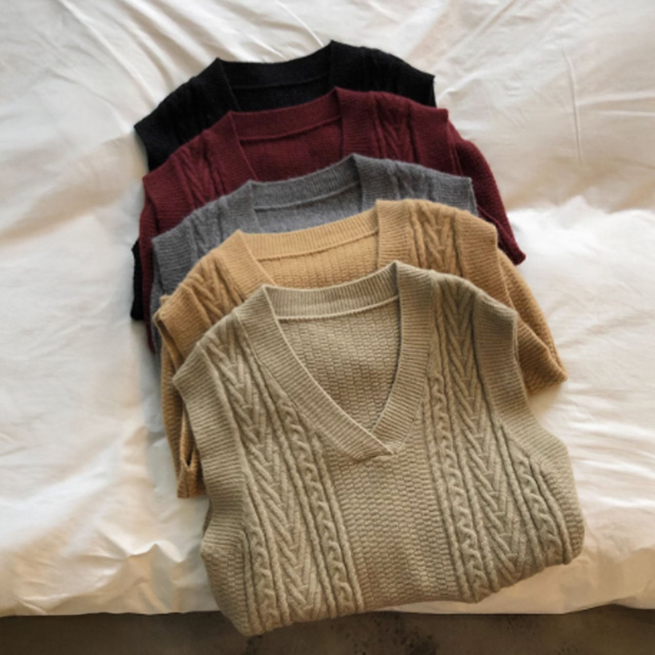 Vネックケーブルニットベスト 00289