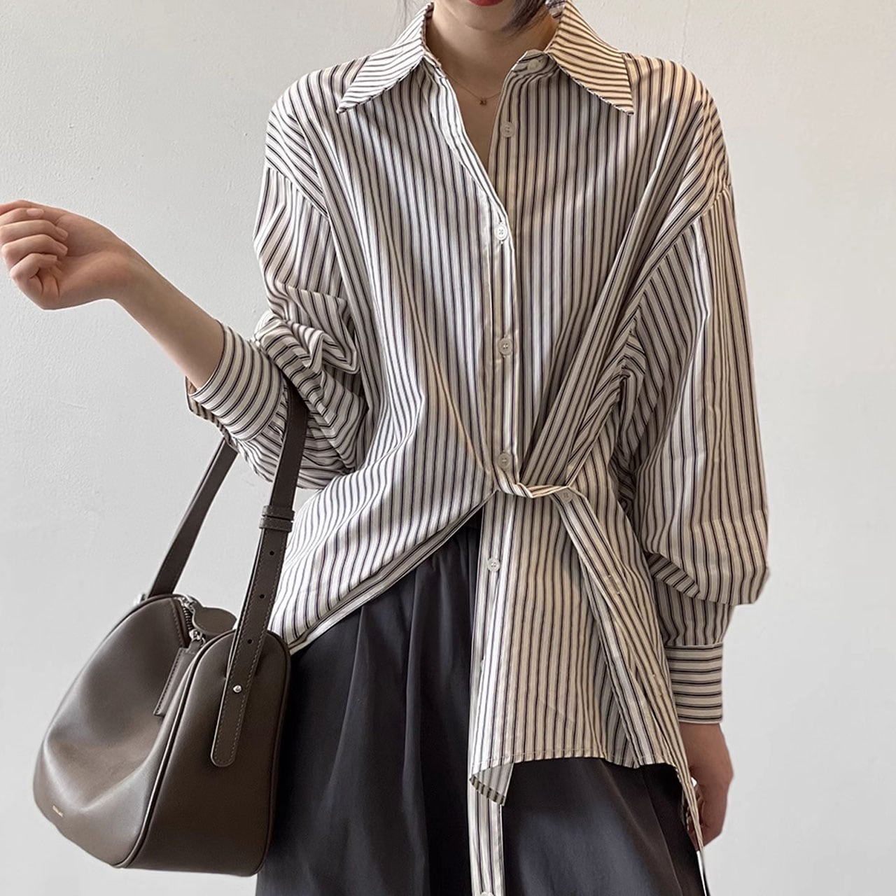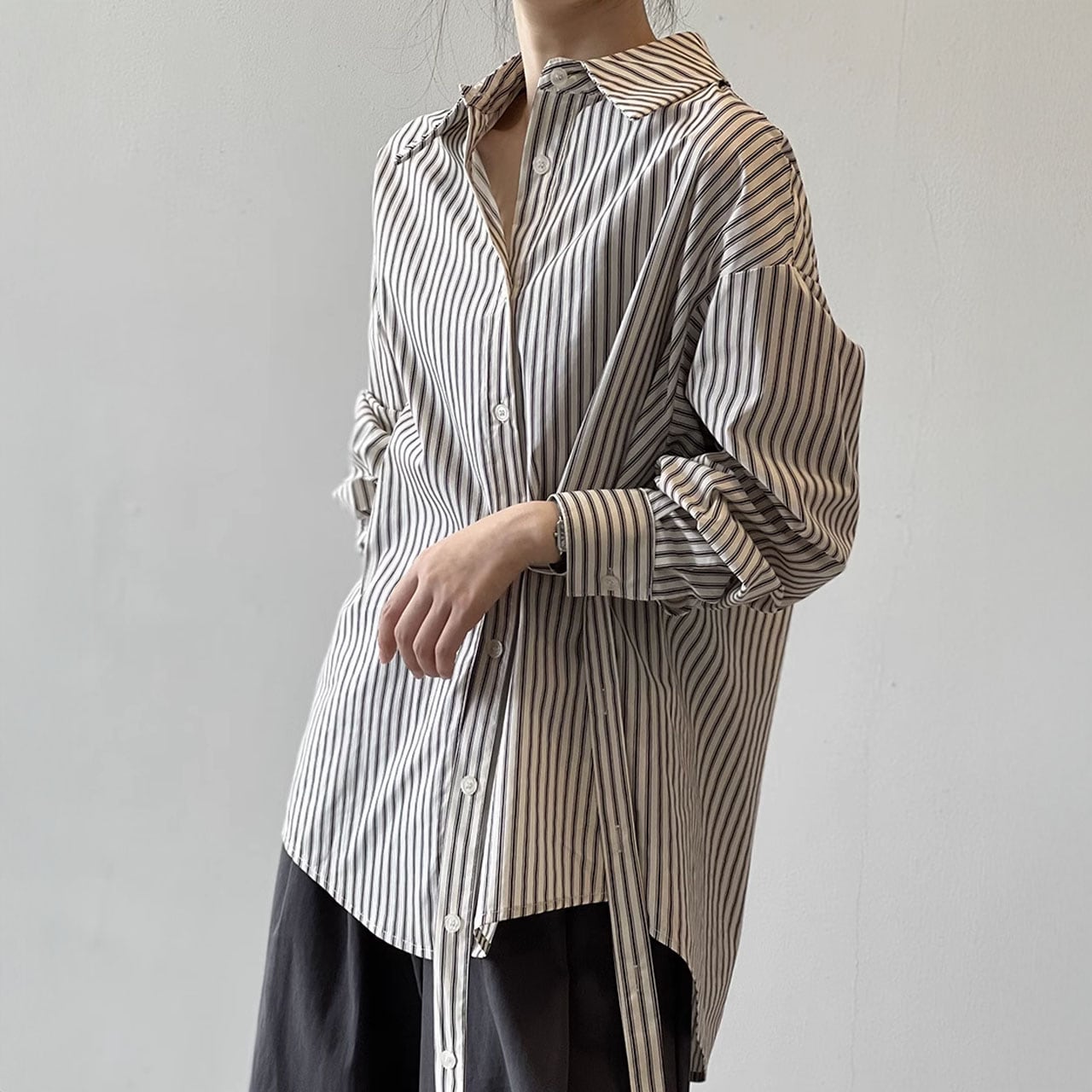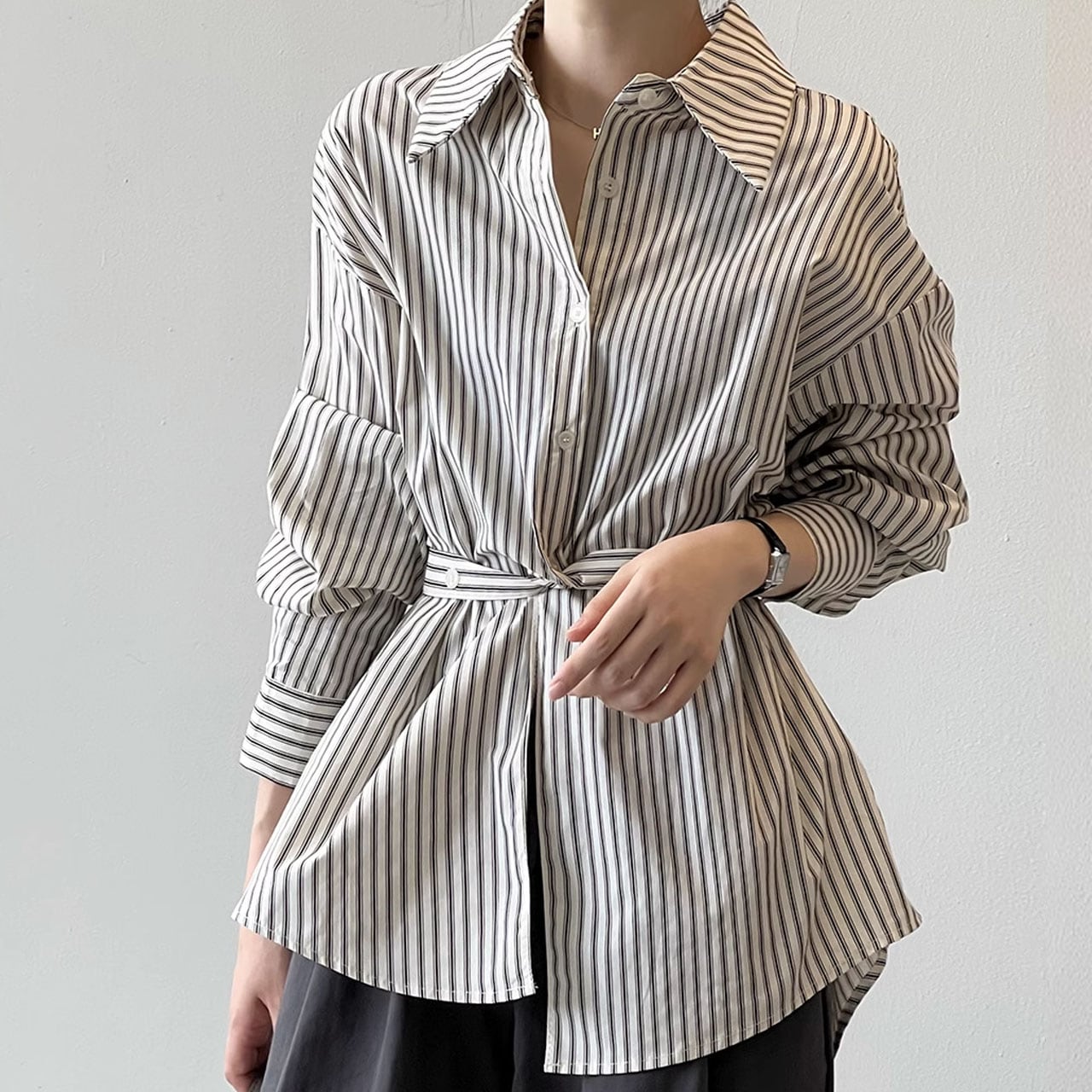 ストライプ柄ベルト付ロングシャツ 00297