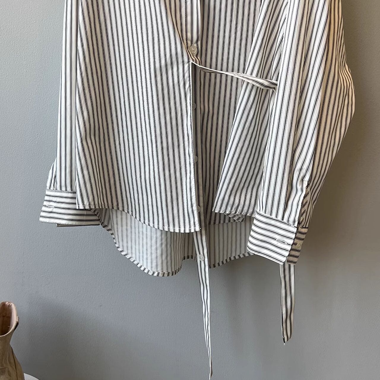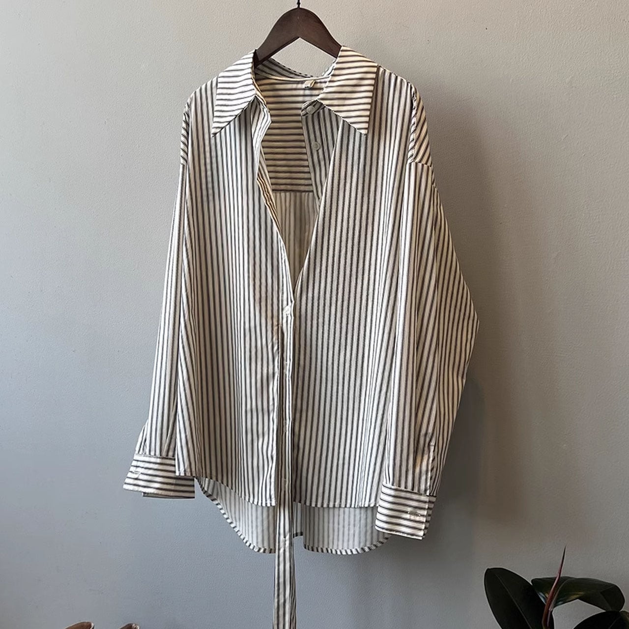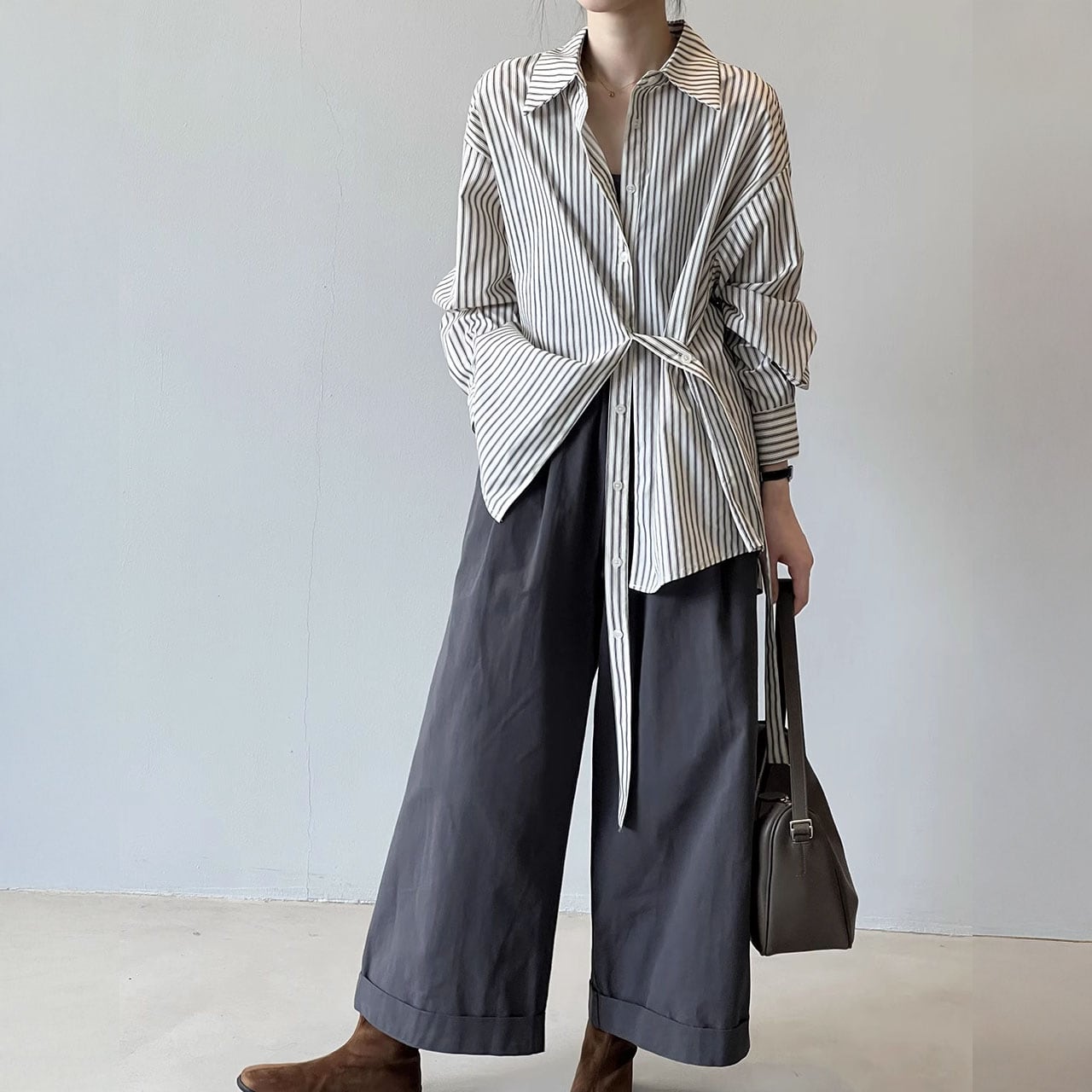 ストライプ柄ベルト付ロングシャツ 00297