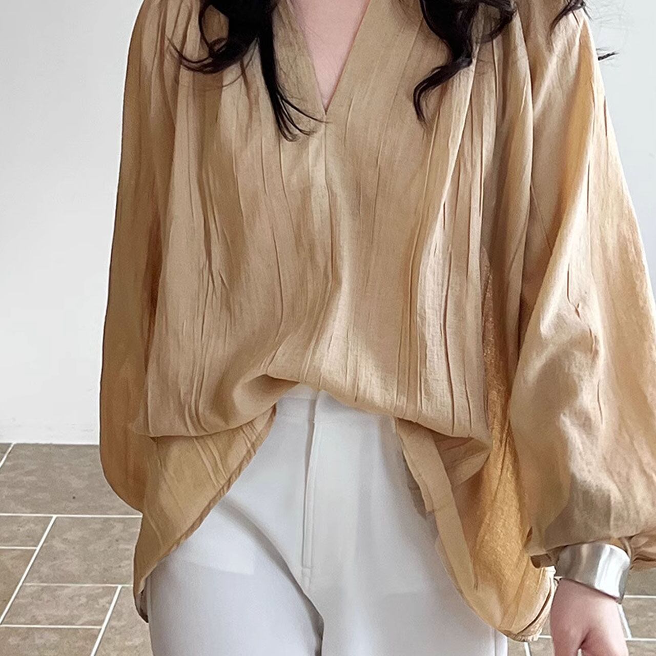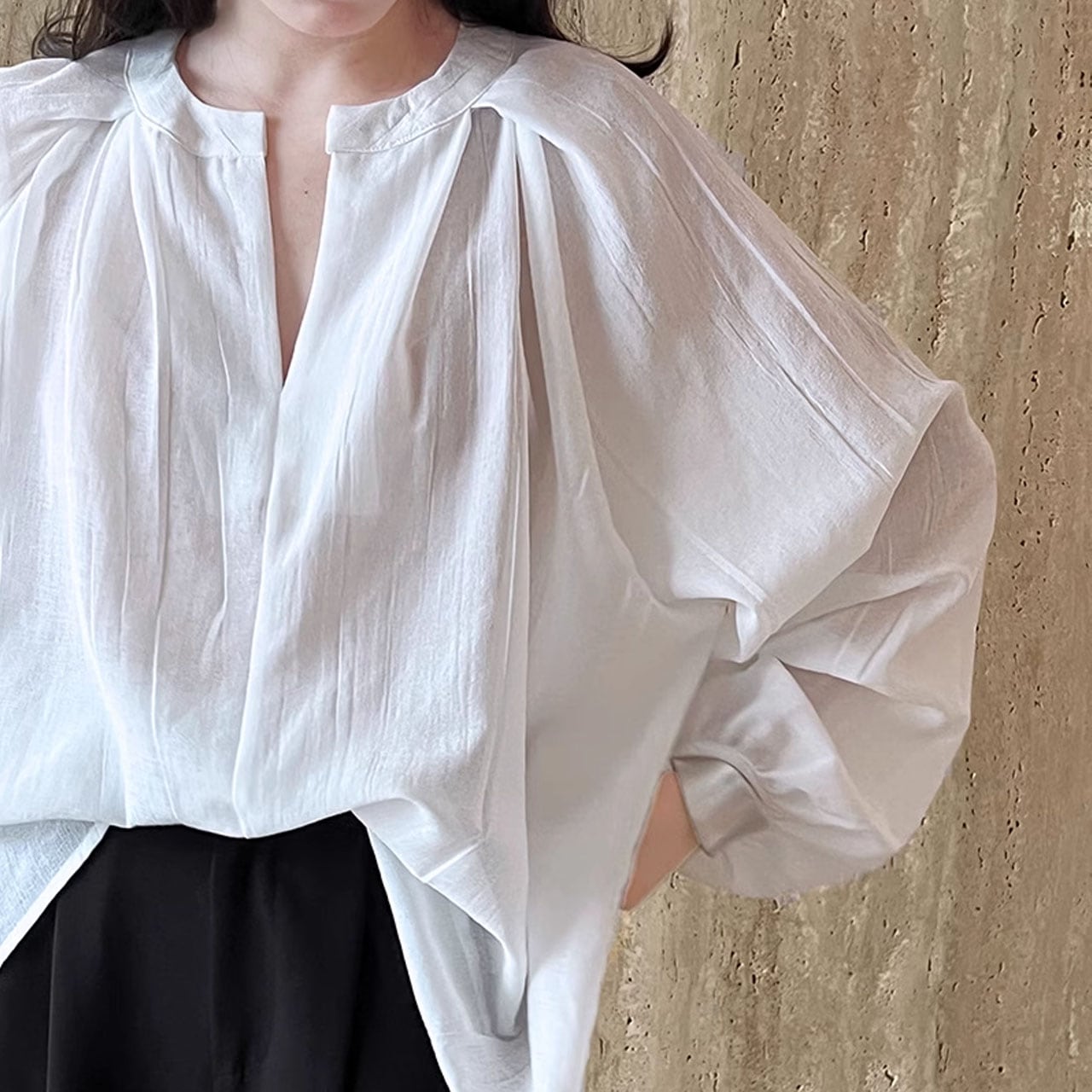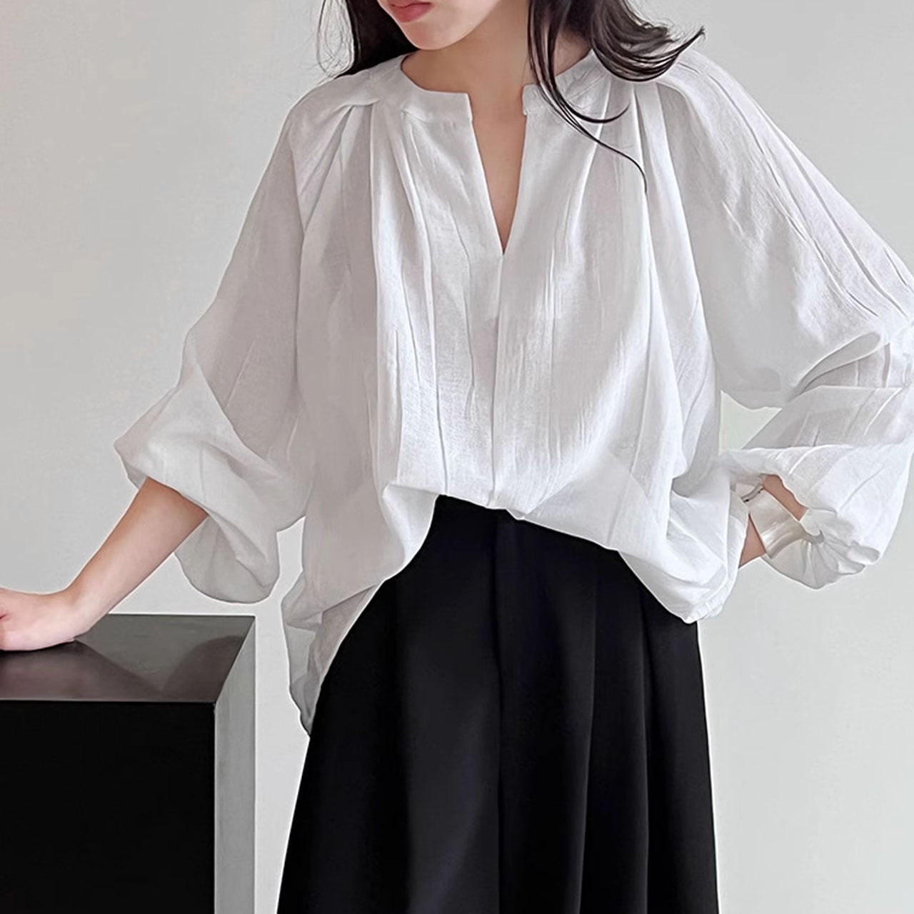 Vネックオーバーサイズバルーンスリーブブラウス 00303