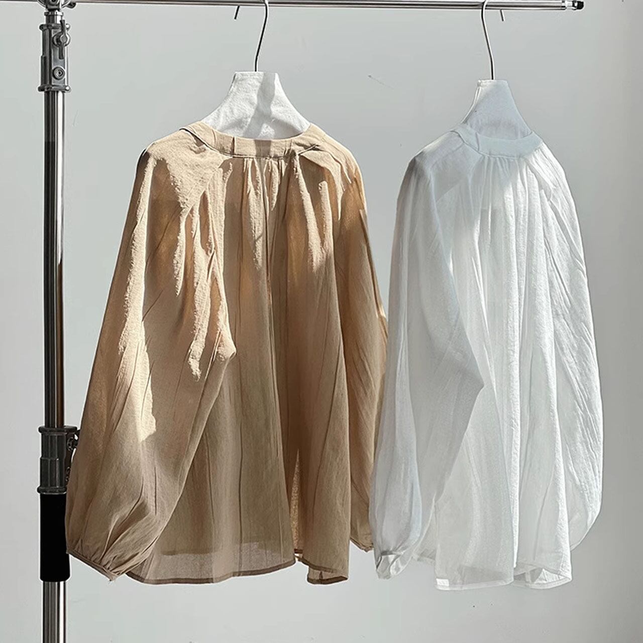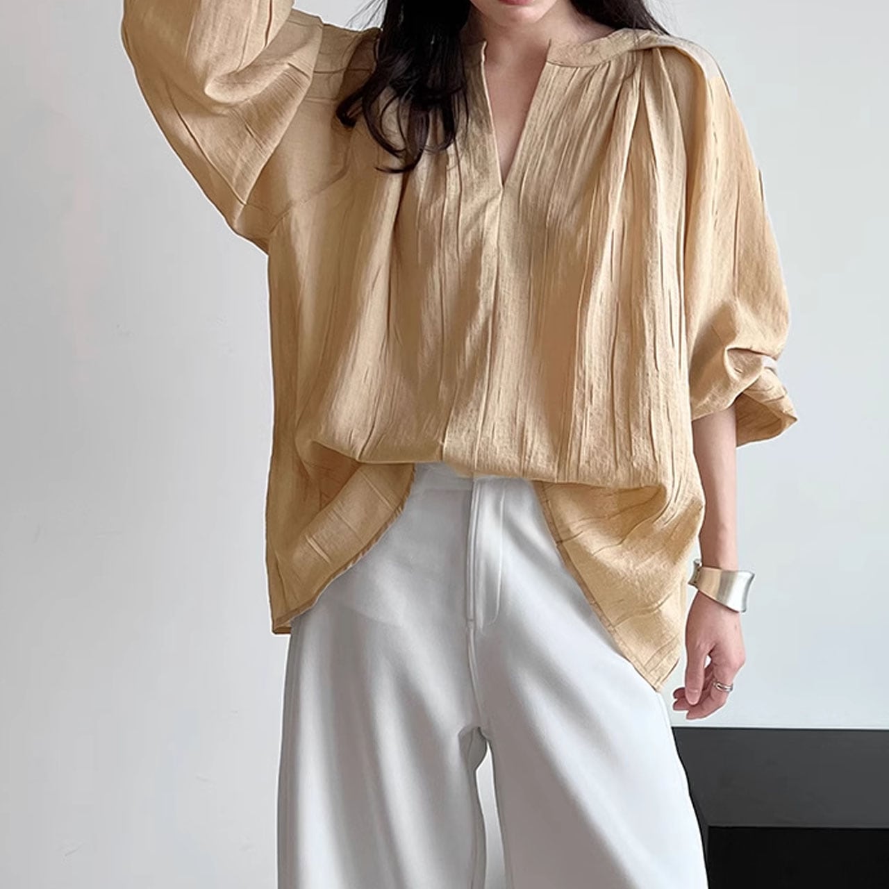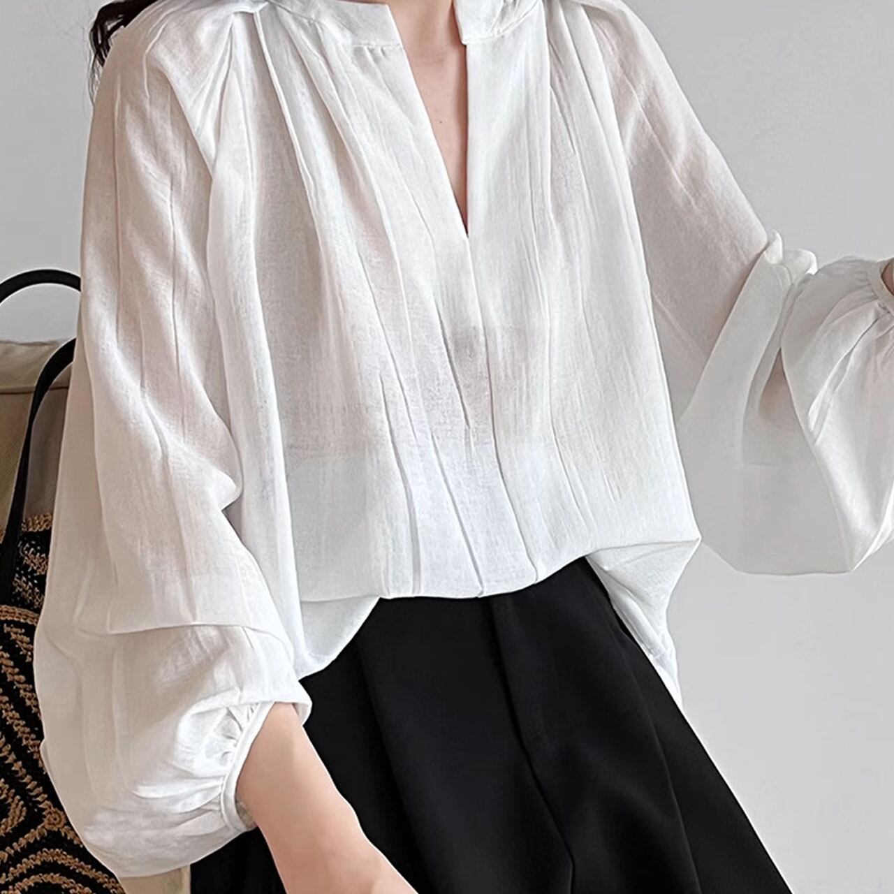 Vネックオーバーサイズバルーンスリーブブラウス 00303