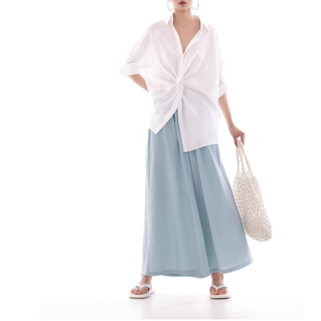 リネンフロントノットデザインシャツ 00378