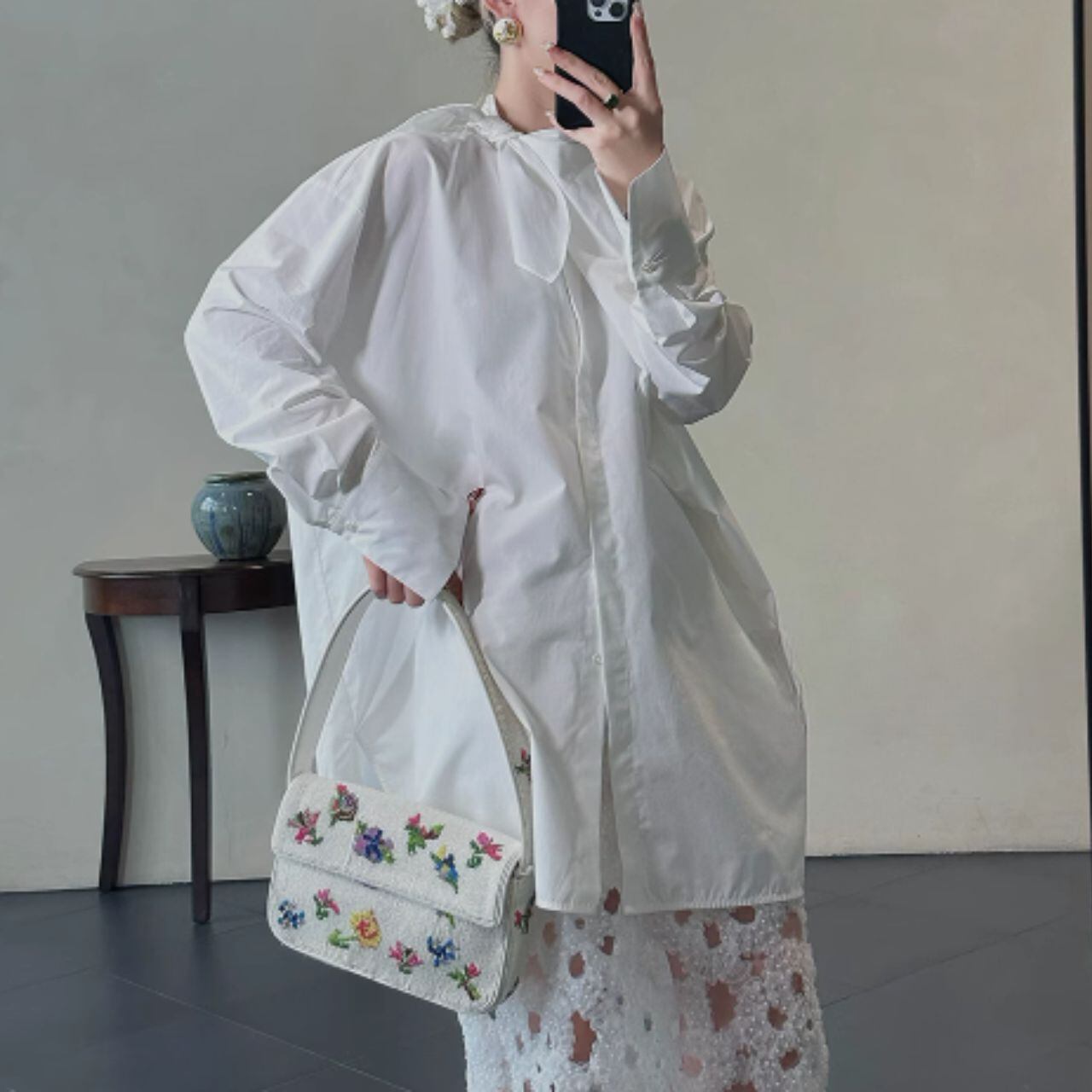 ボウタイデザインオーバーサイズロングスリーブシャツ 00387