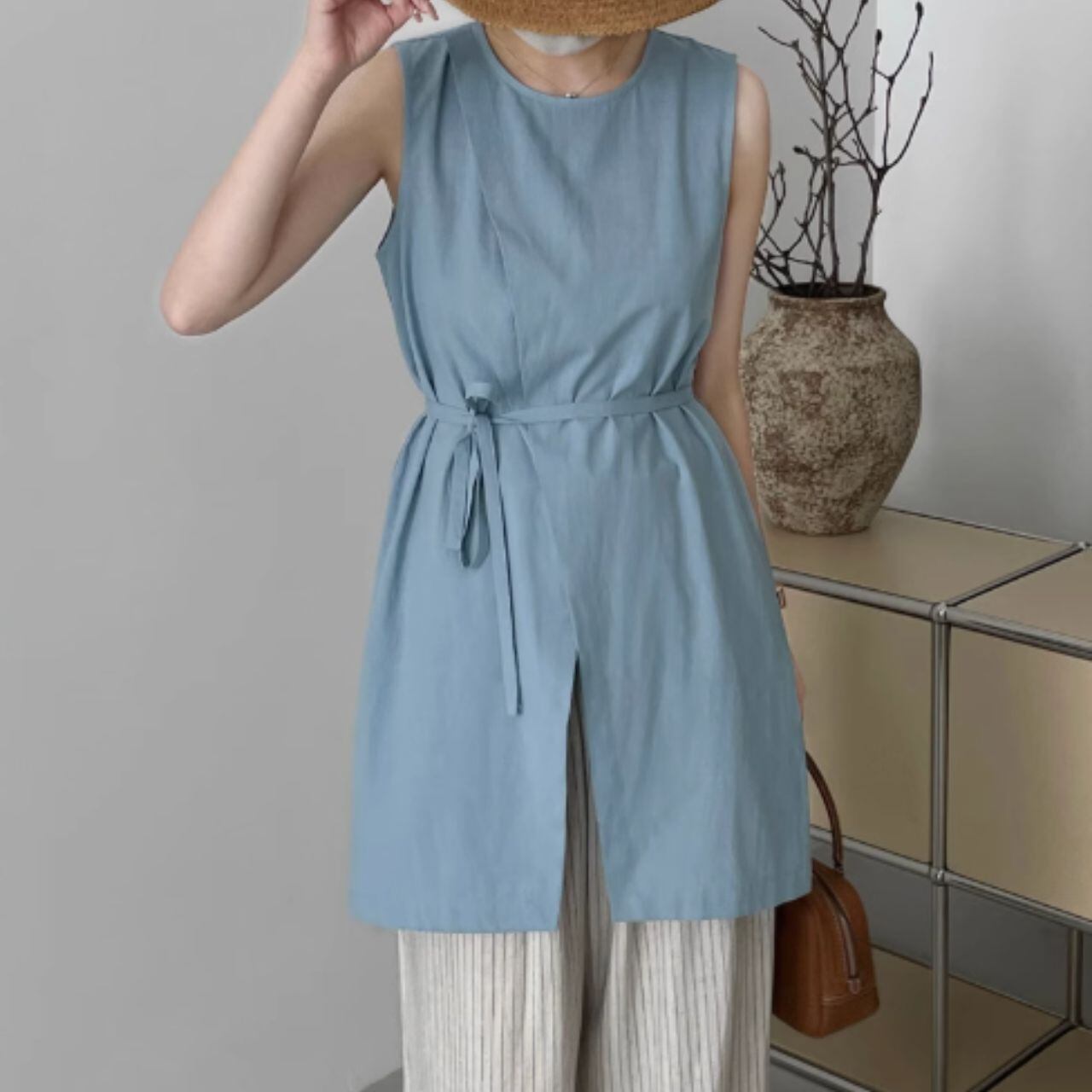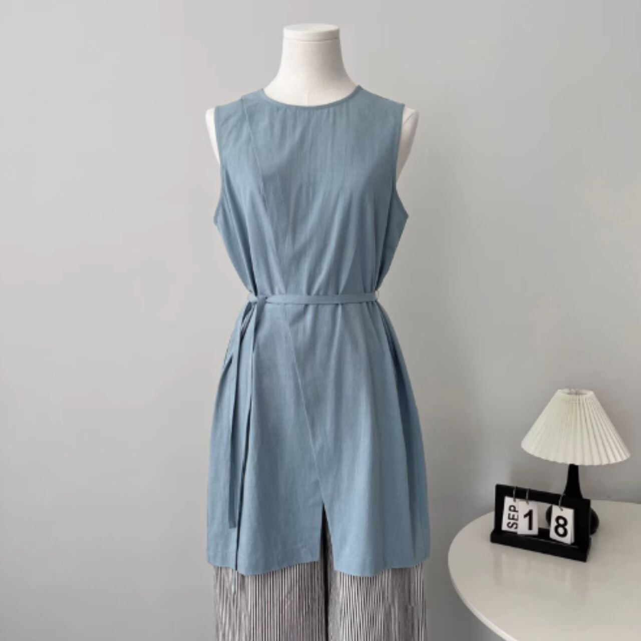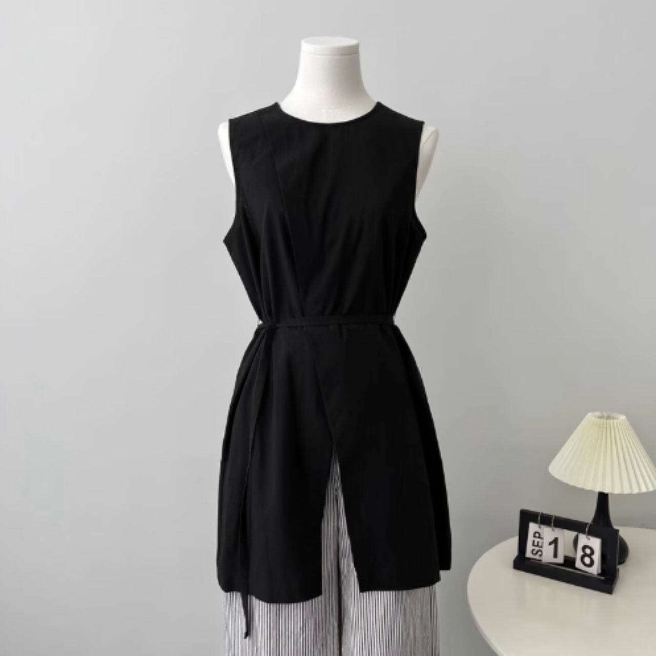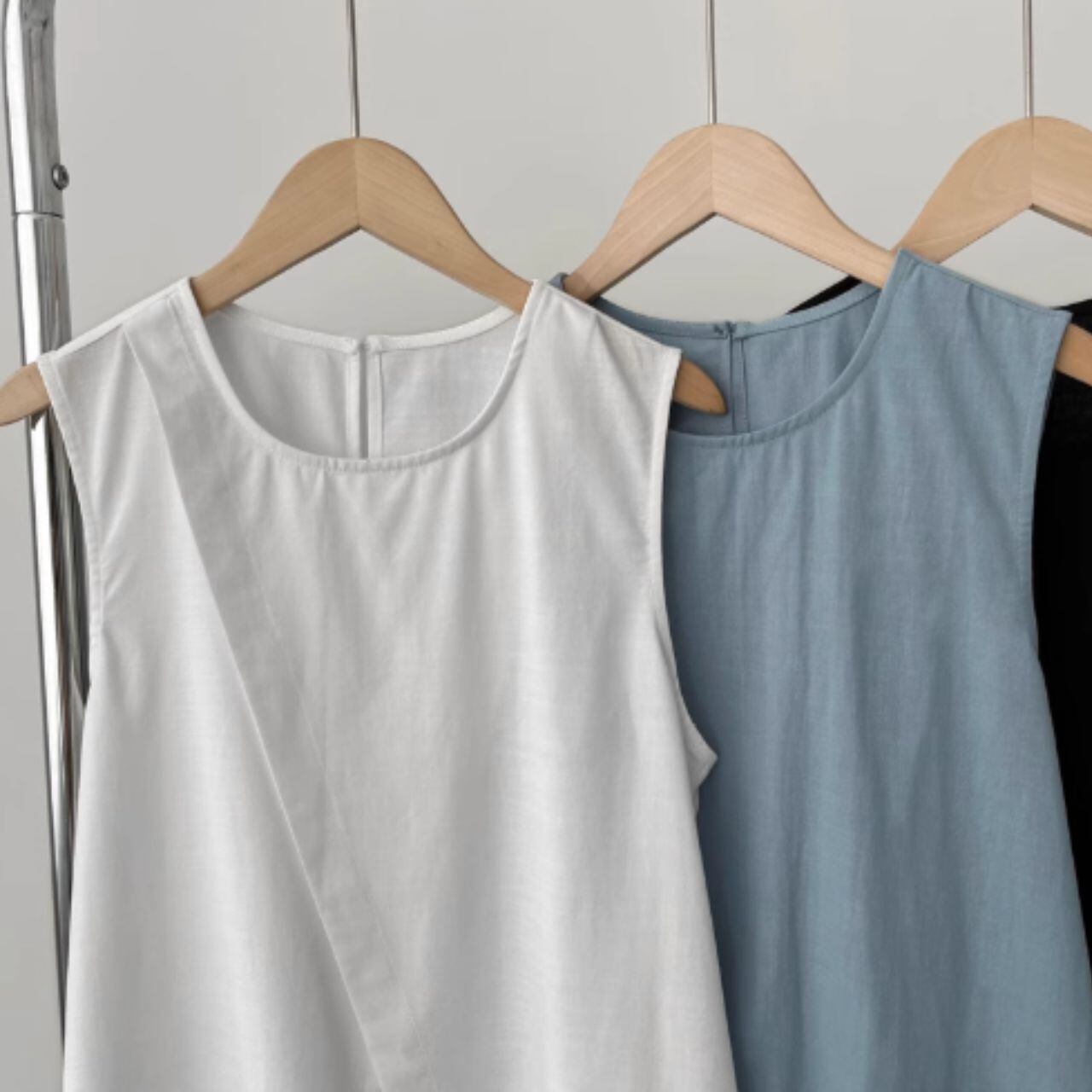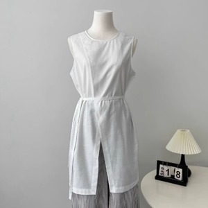 ラップデザインノースリーブロングトップス 00398