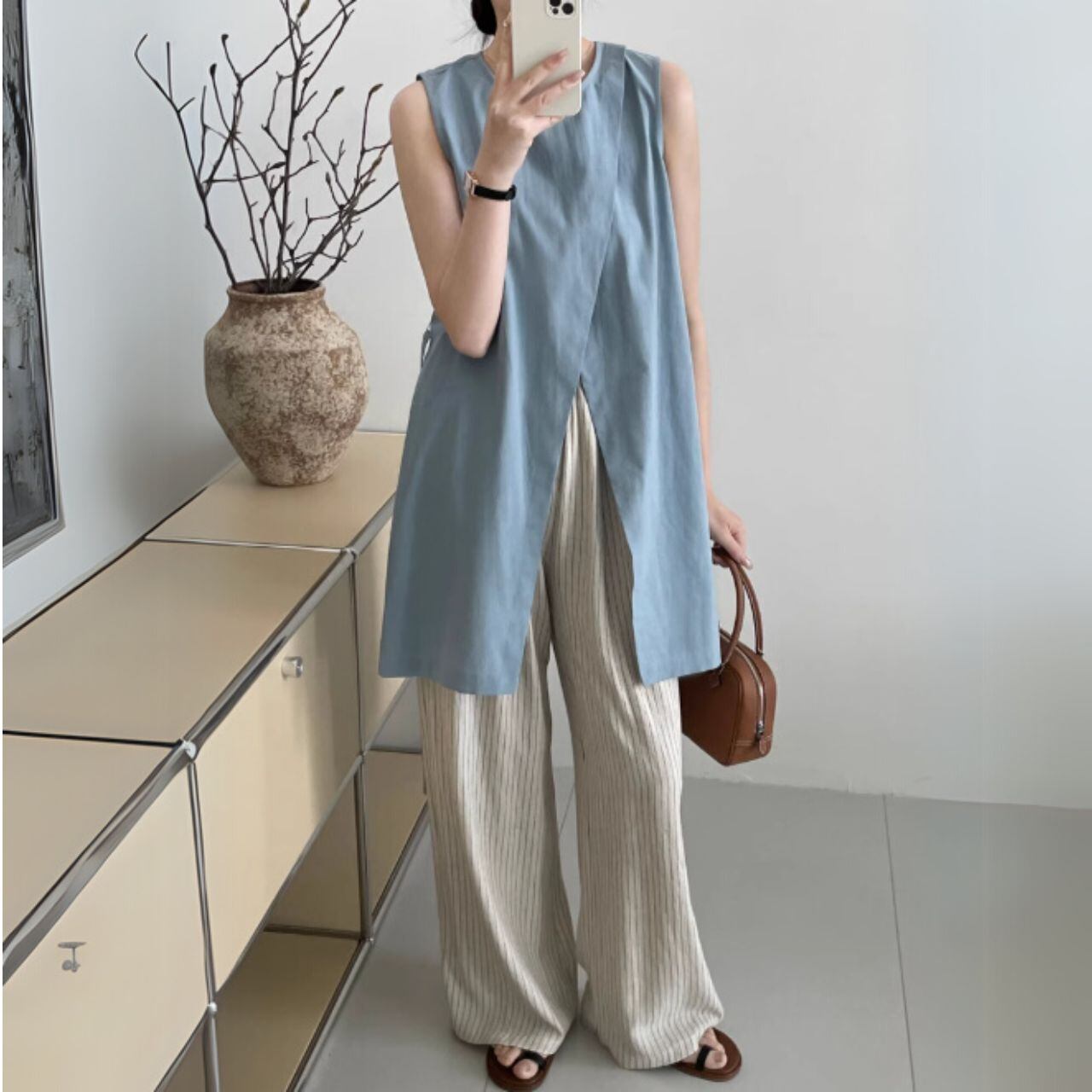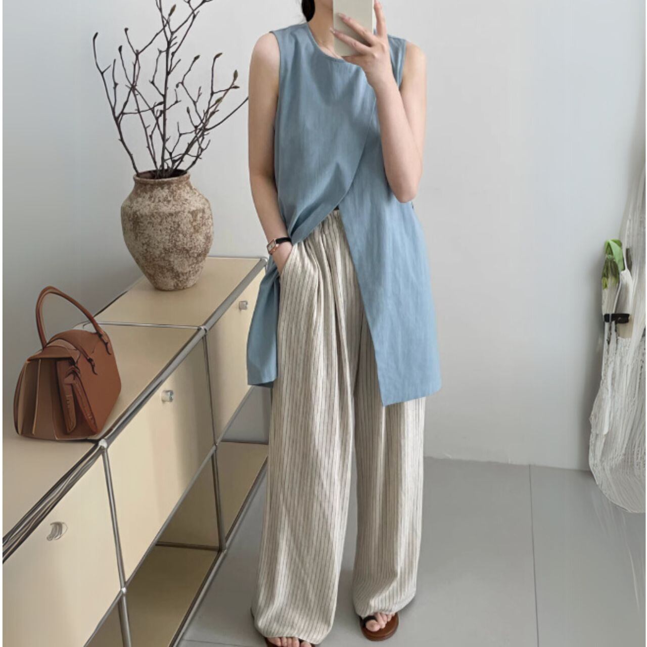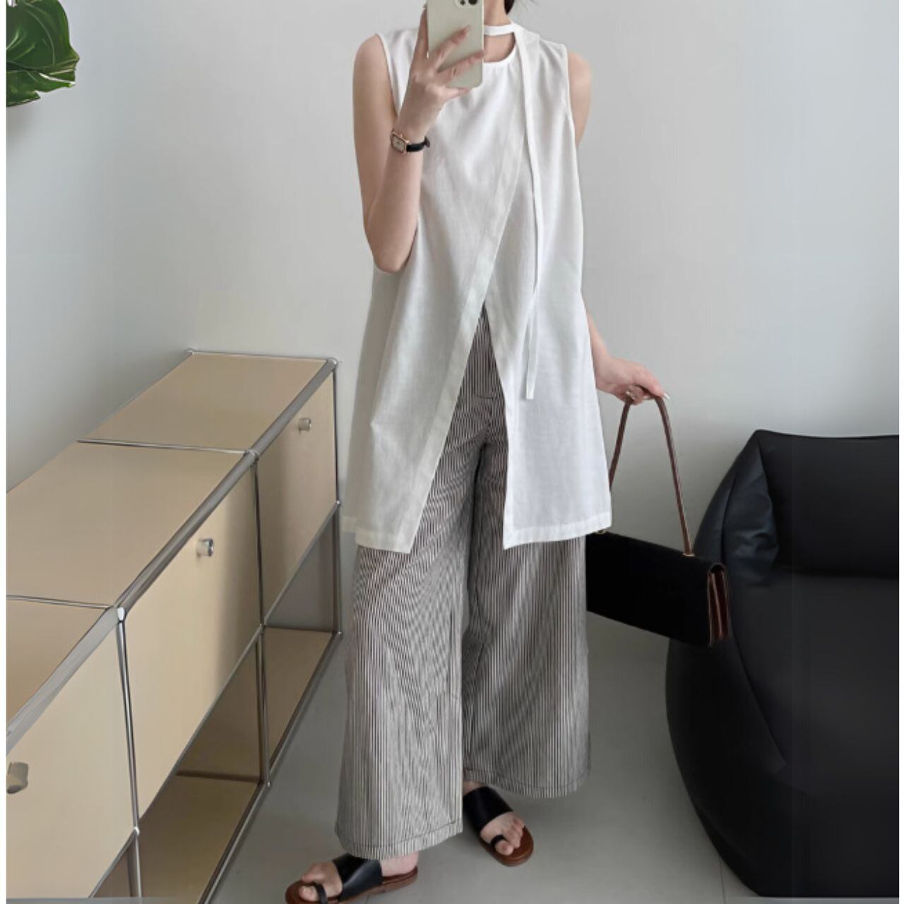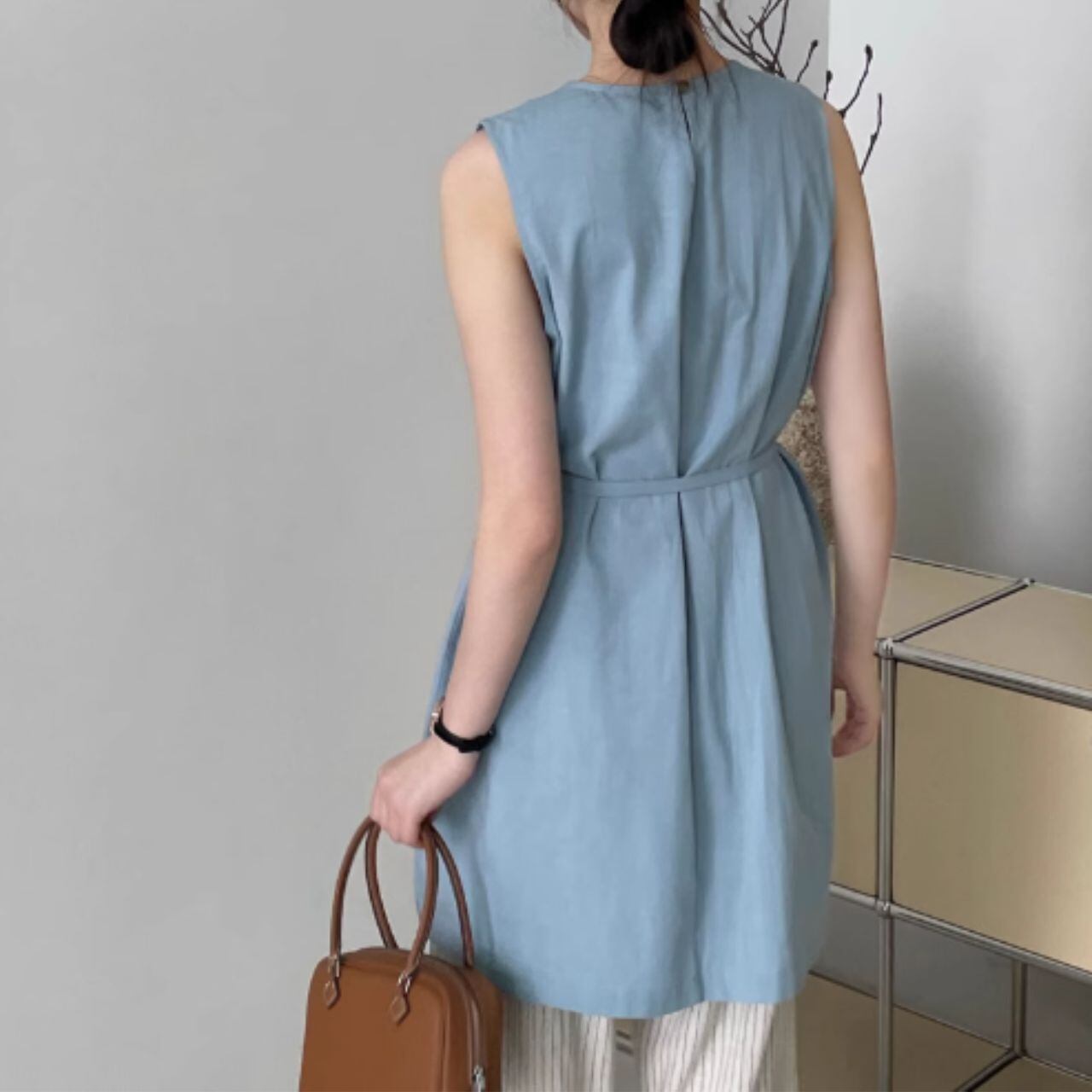 ラップデザインノースリーブロングトップス 00398