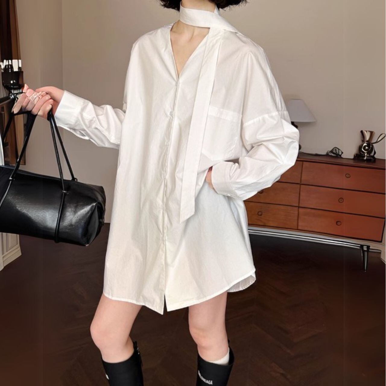 ネクタイ付きオーバーサイズシャツワンピース 00404