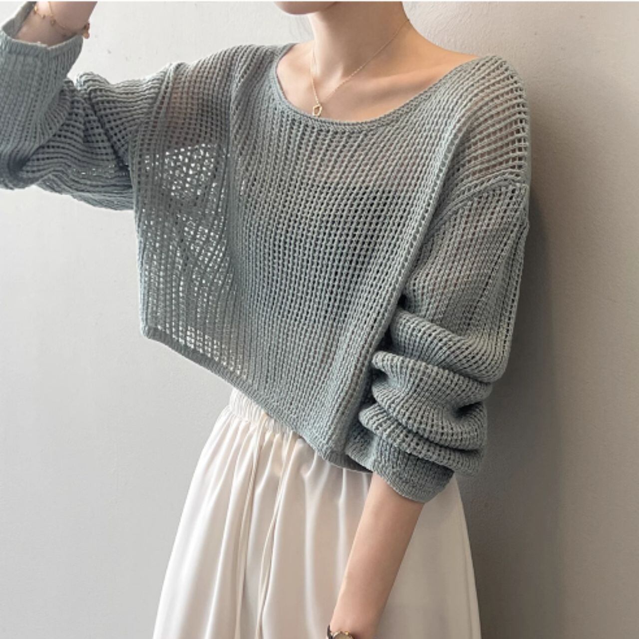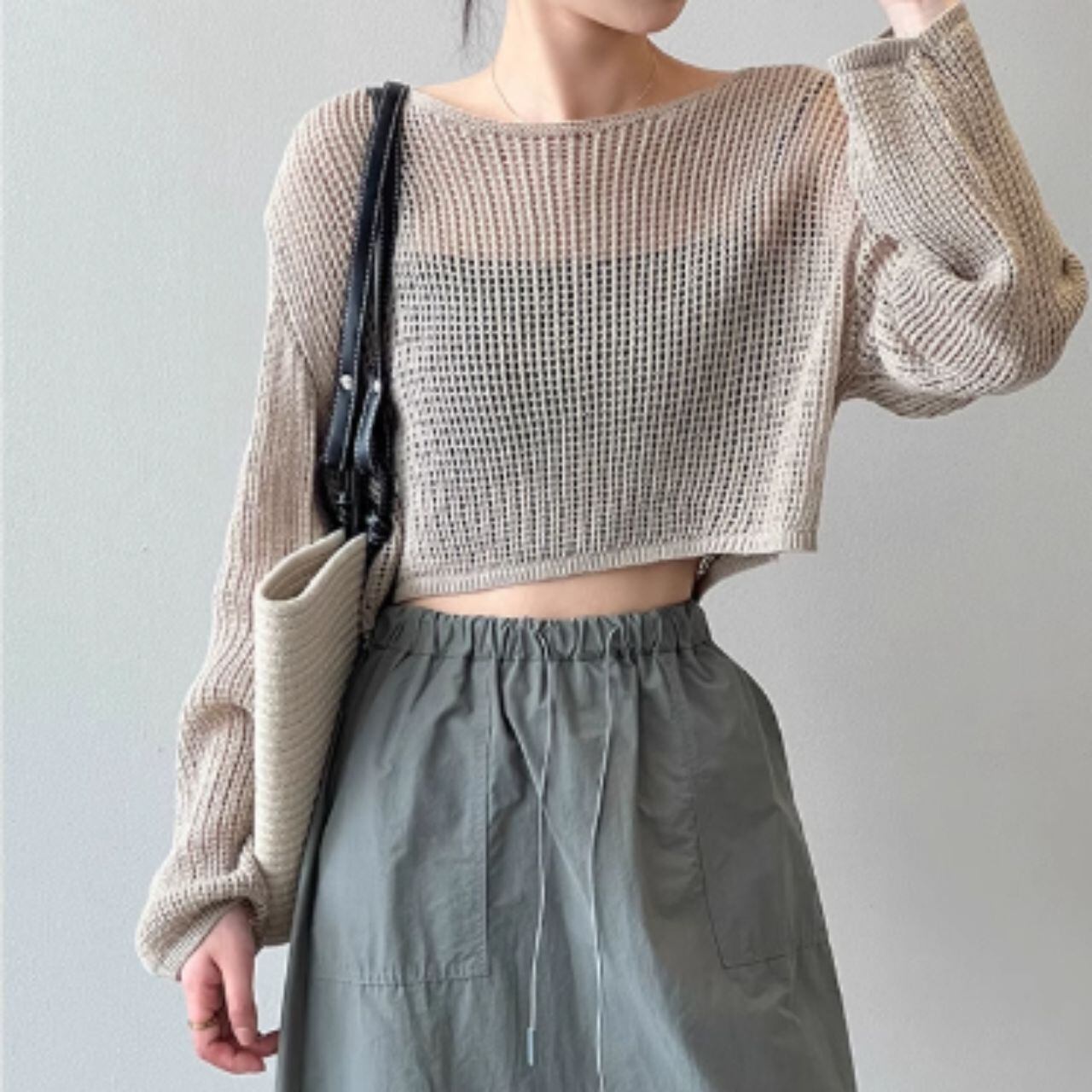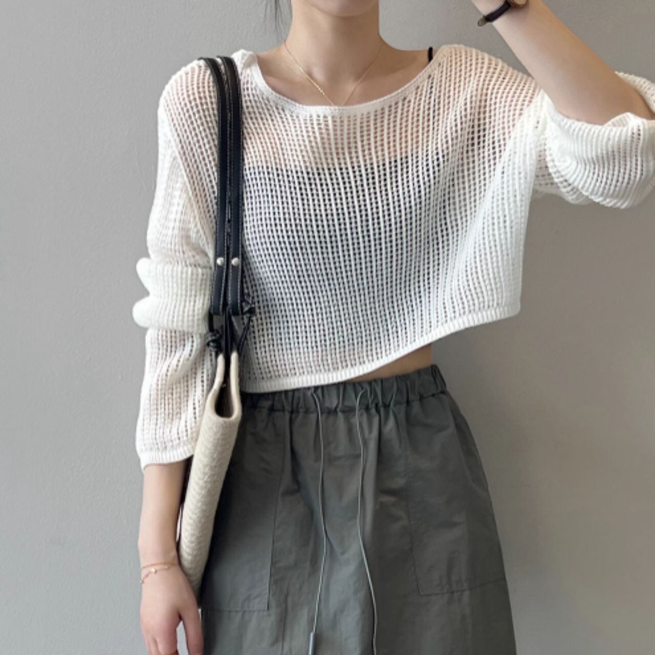 メッシュニットクロップド丈トップス 00407