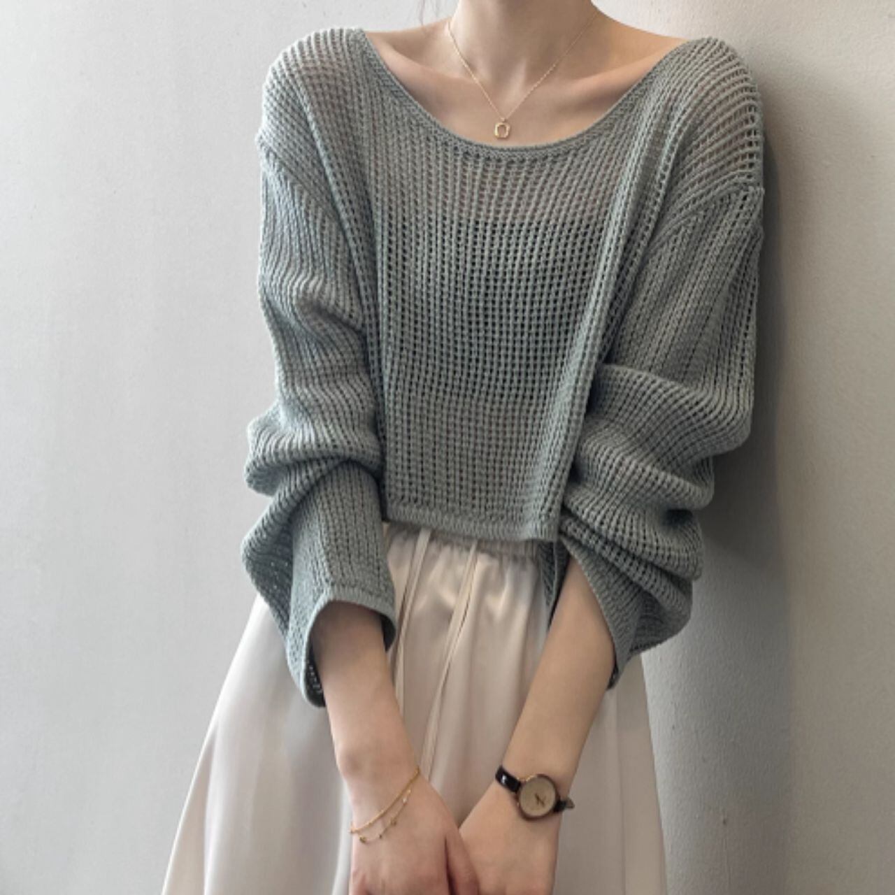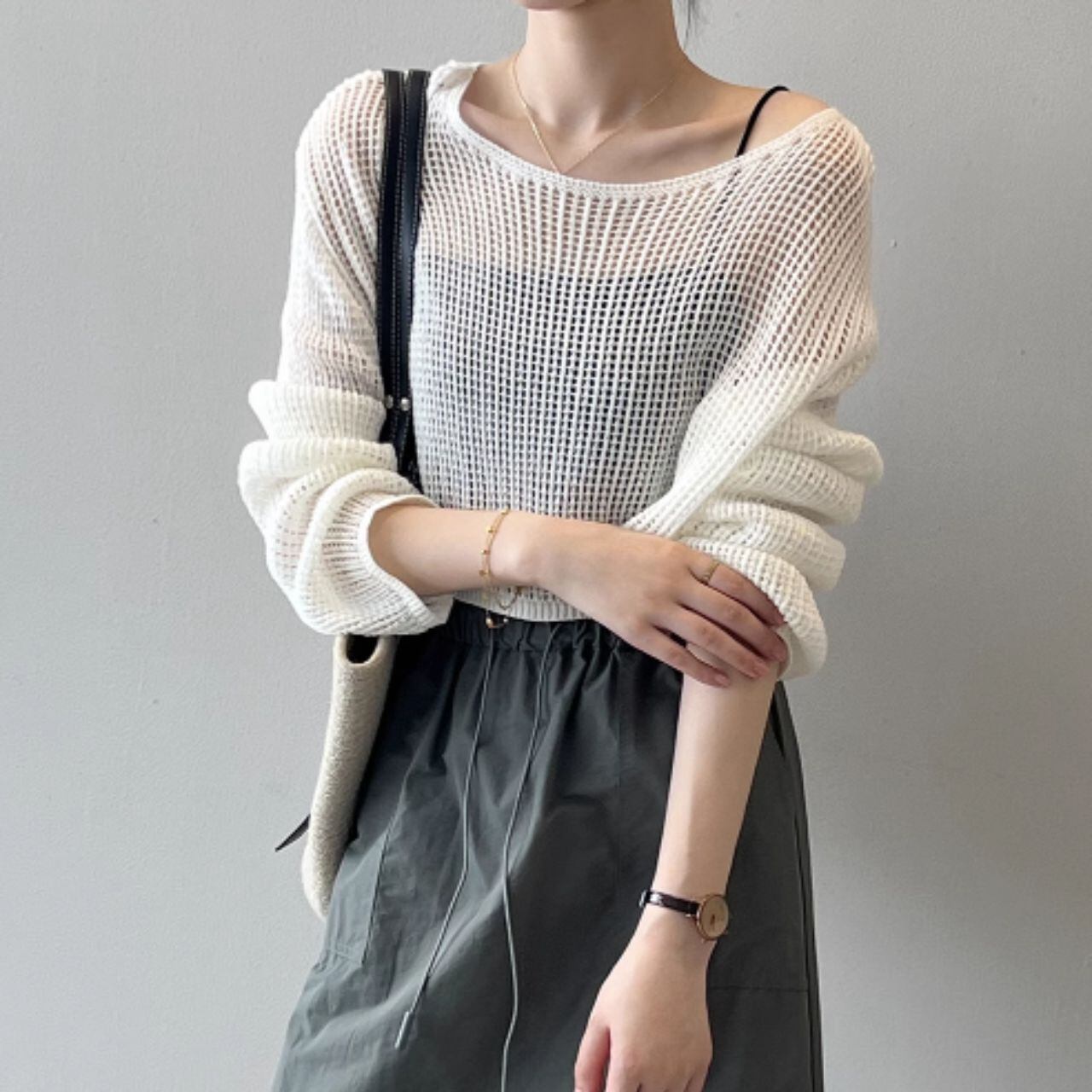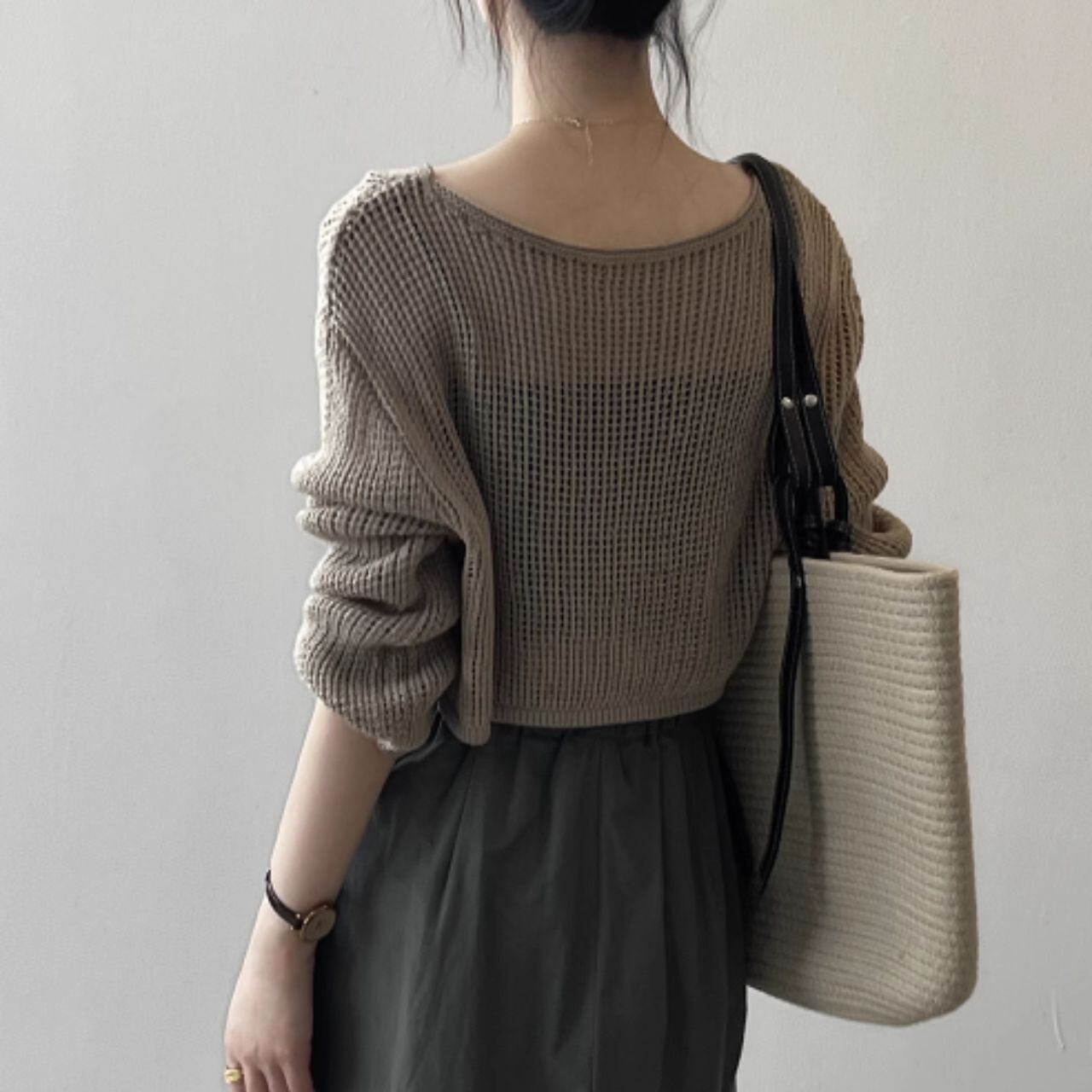 メッシュニットクロップド丈トップス 00407