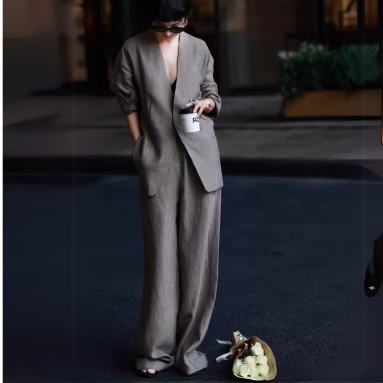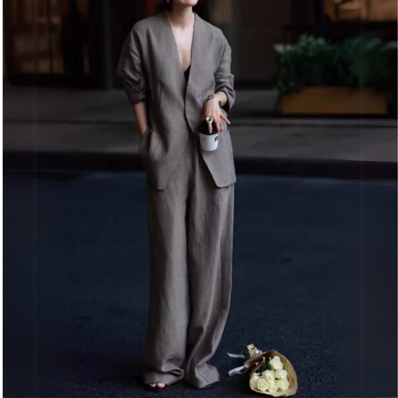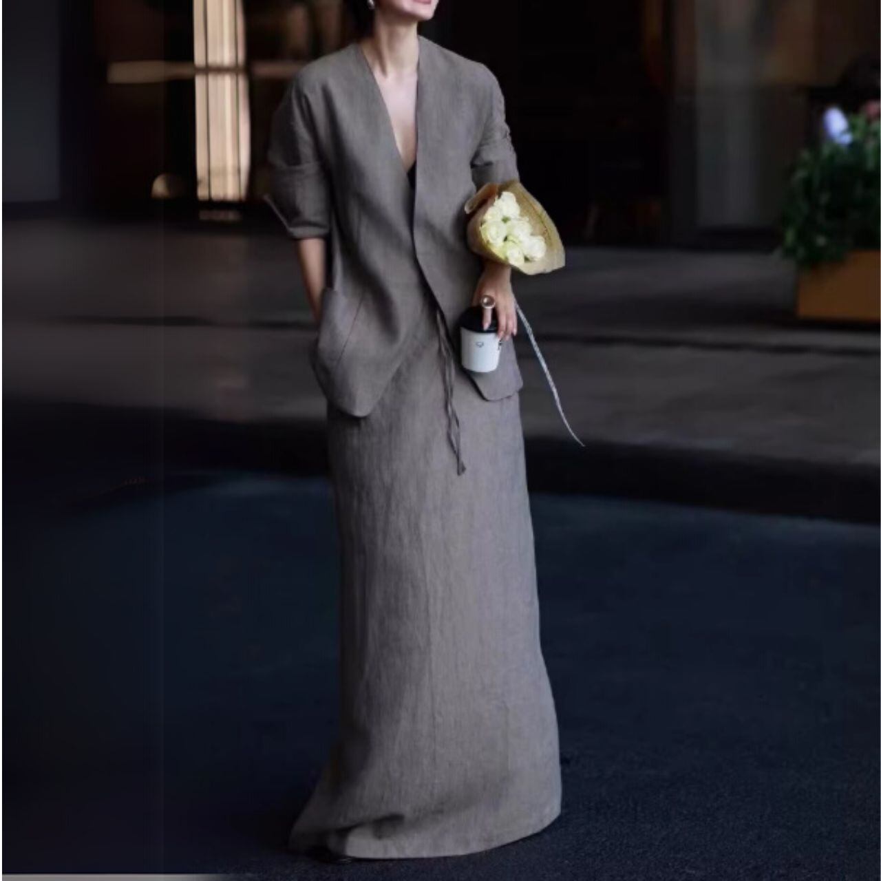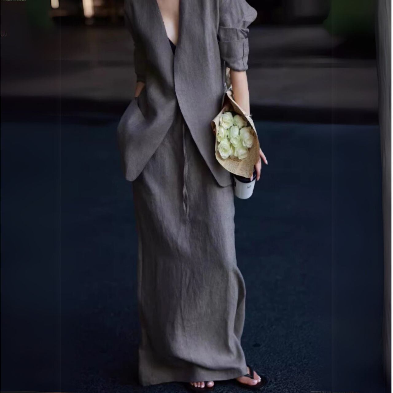 オープンフロントジャケット&Aラインスカートセットアップ 00418