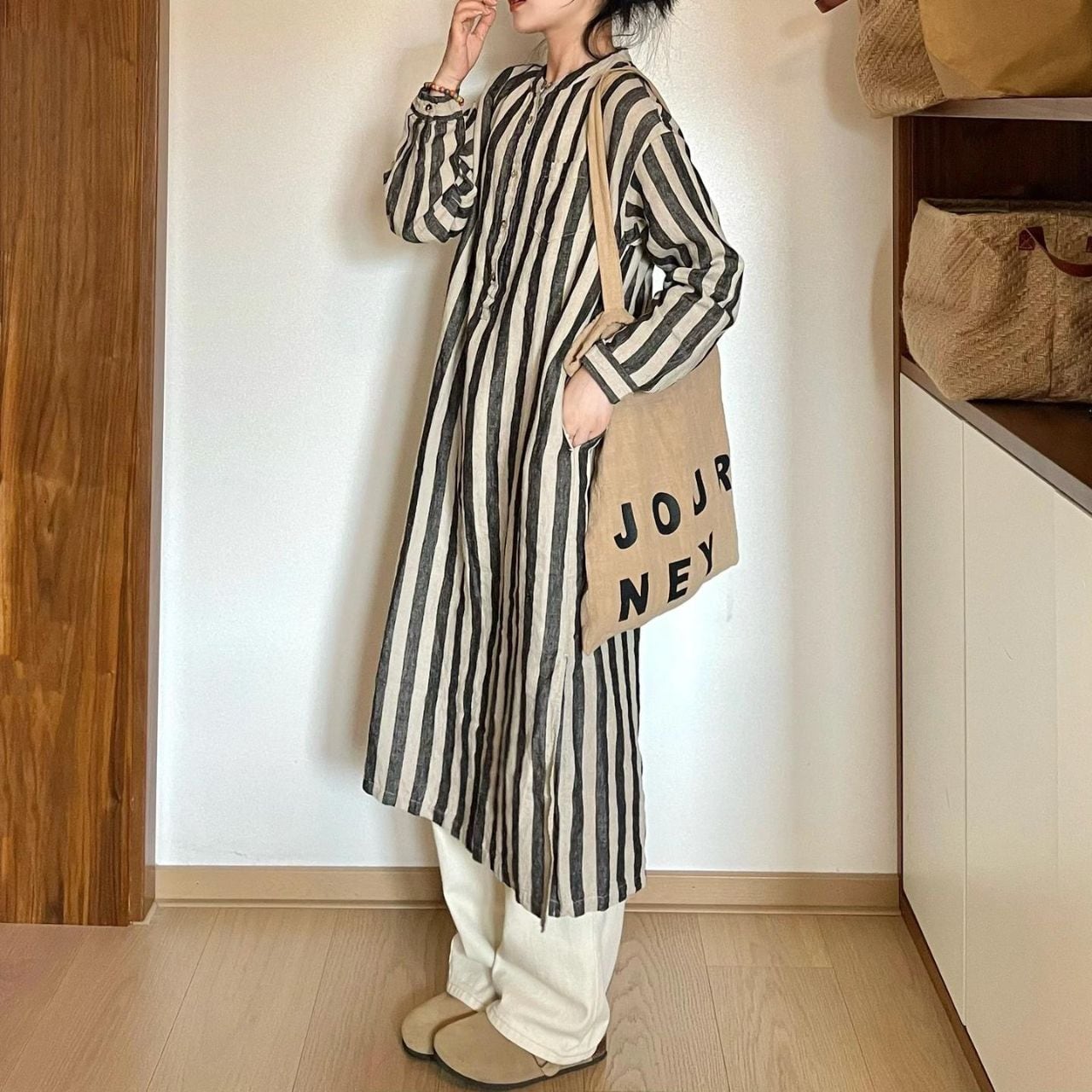ストライプロングシャツワンピース 00423