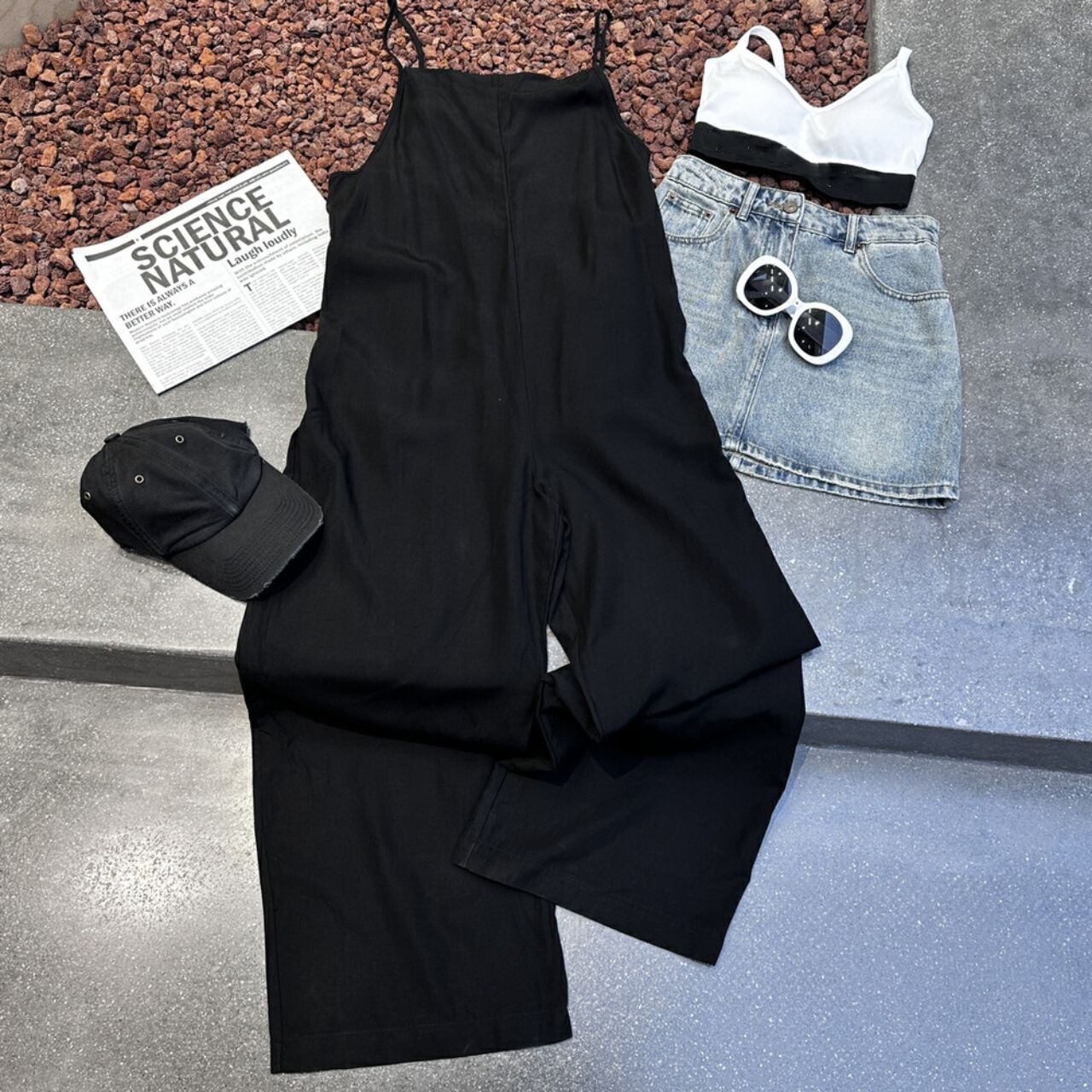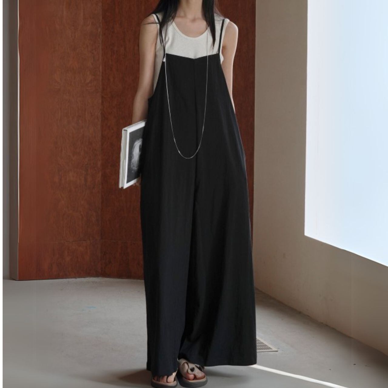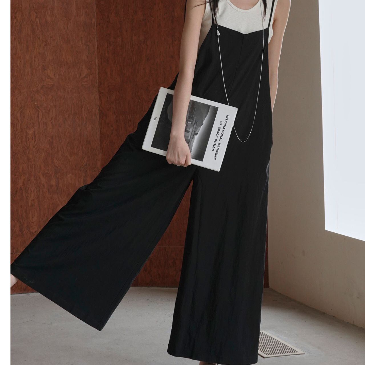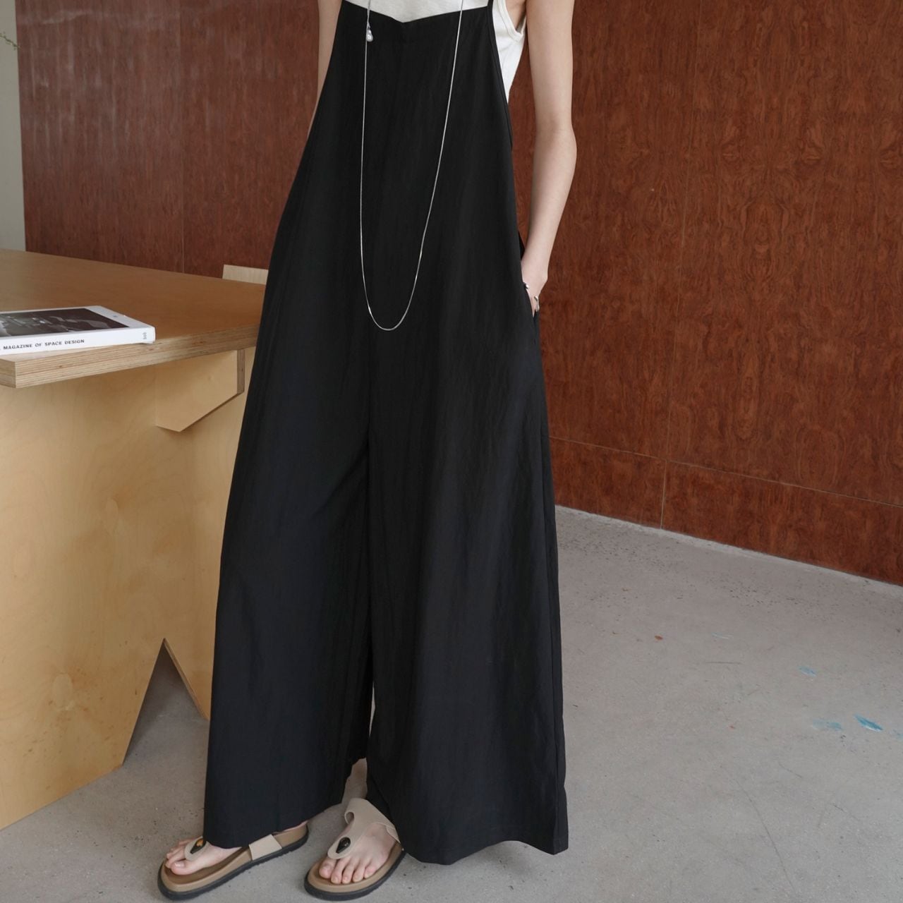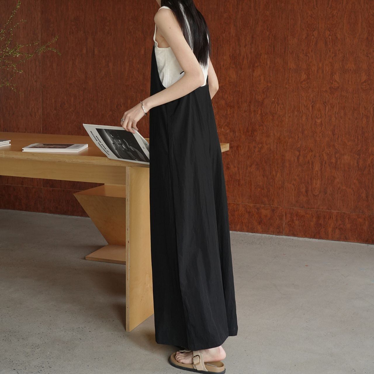 ストラップ付フレアデザインサロペット 00415