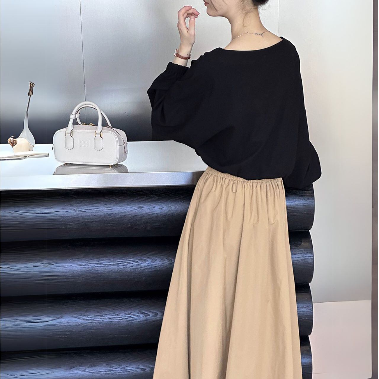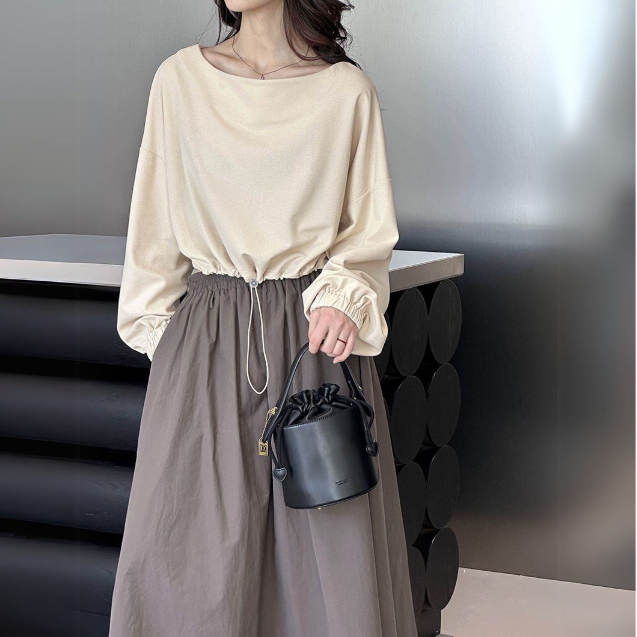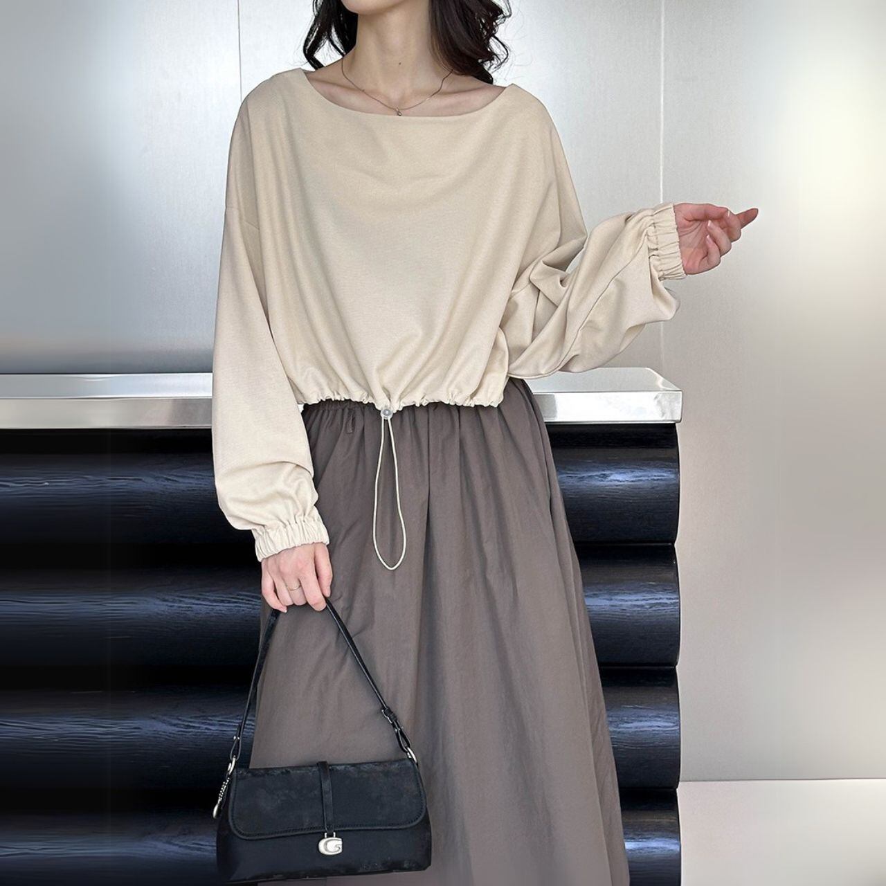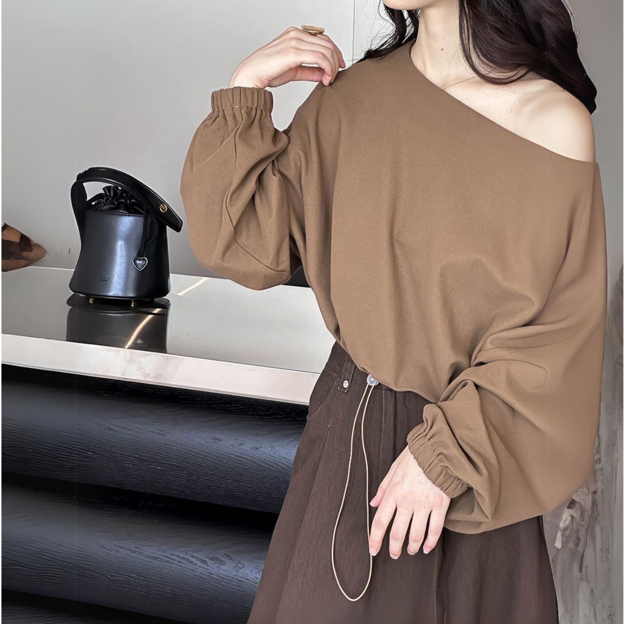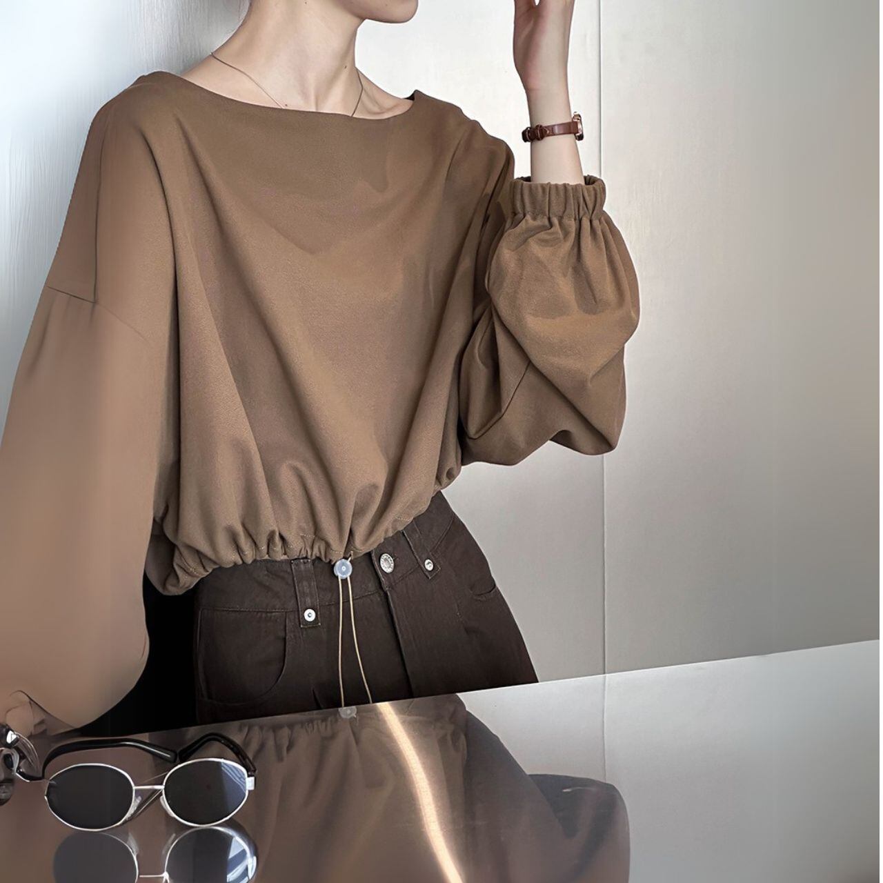 ボートネッククロップド丈トップス 00479