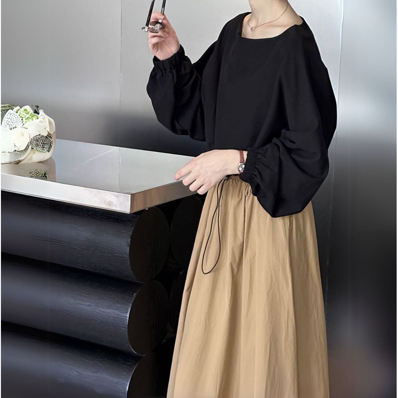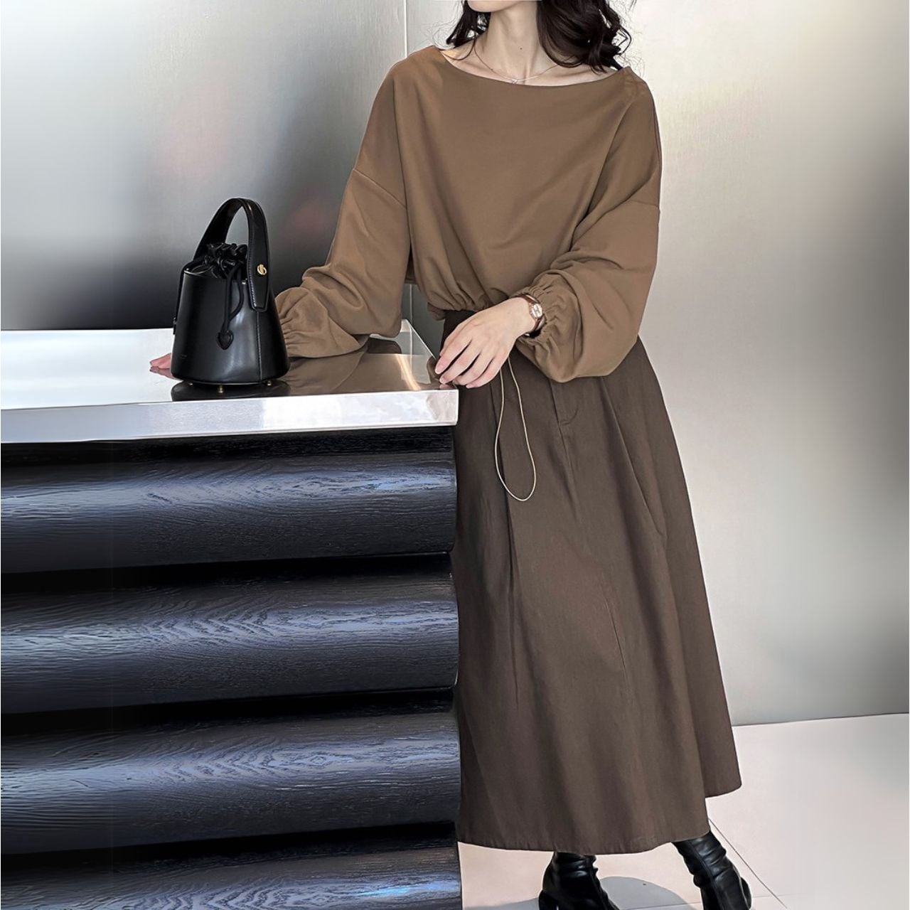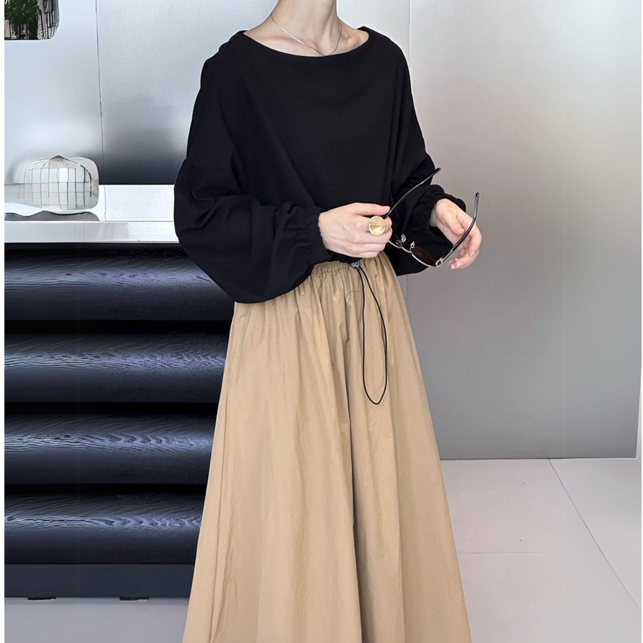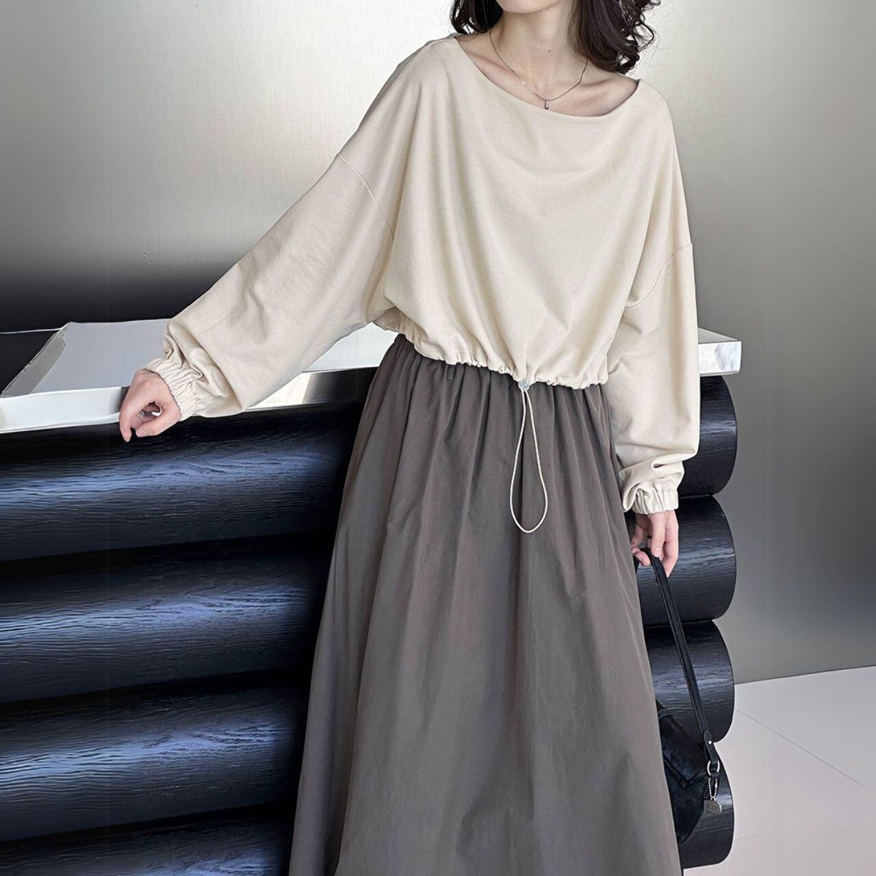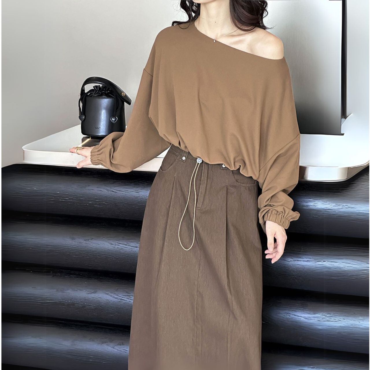 ボートネッククロップド丈トップス 00479