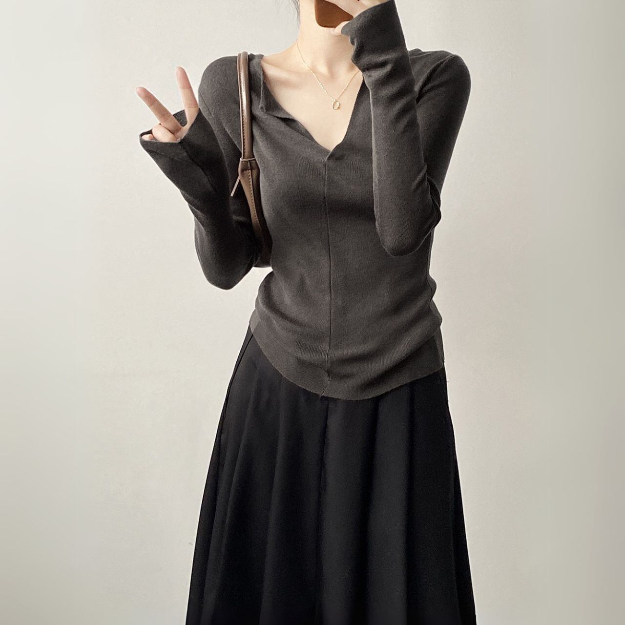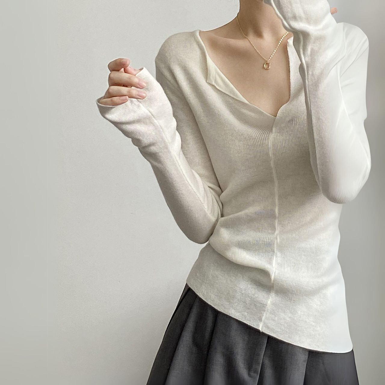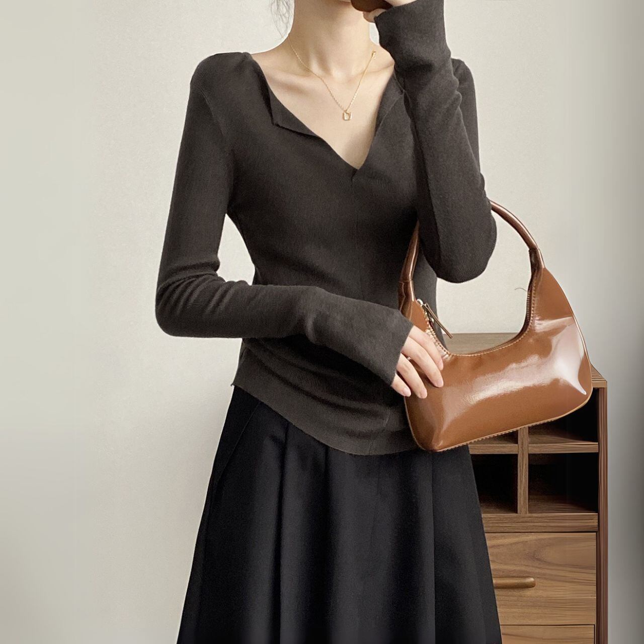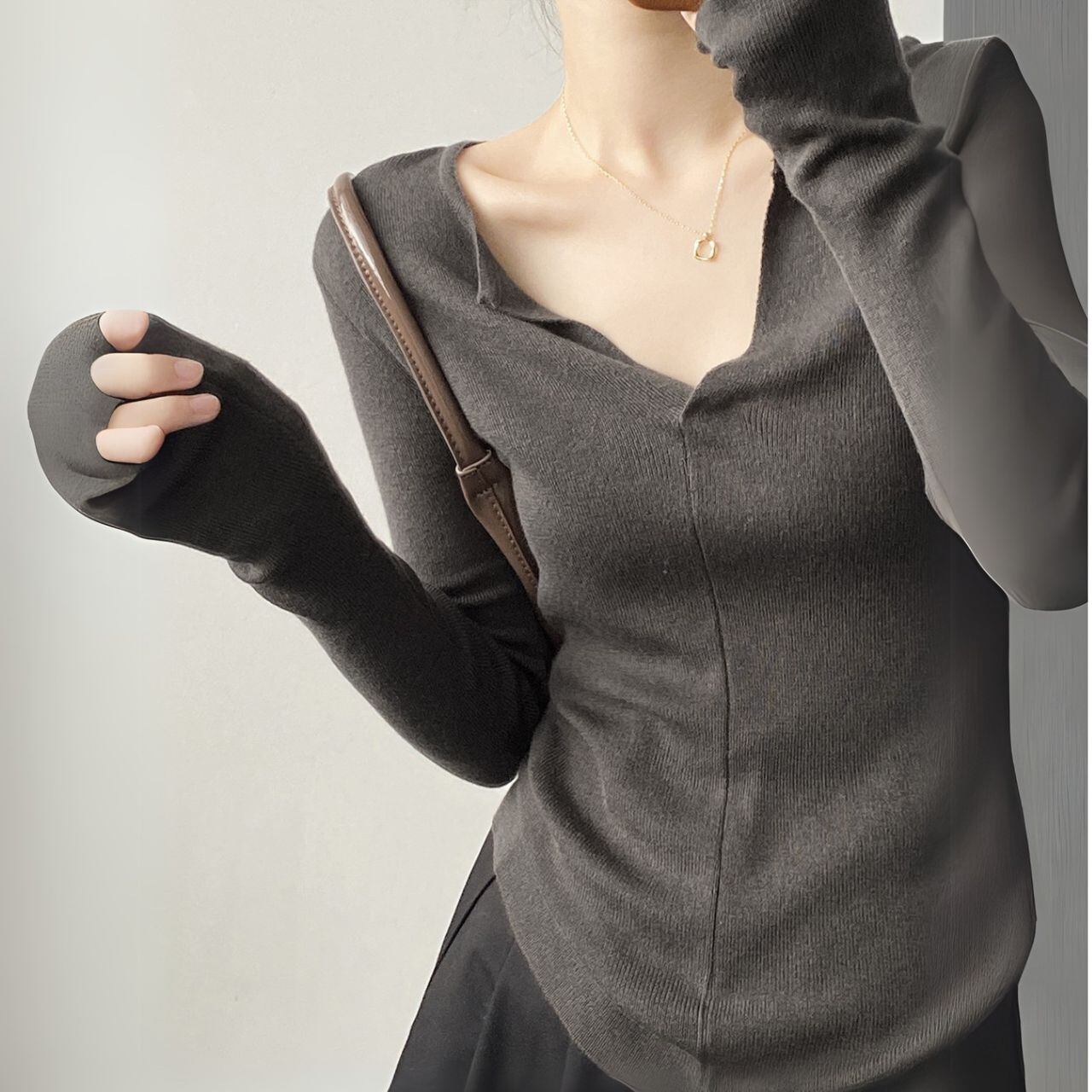 Vネックロングスリーブニットトップス 00480