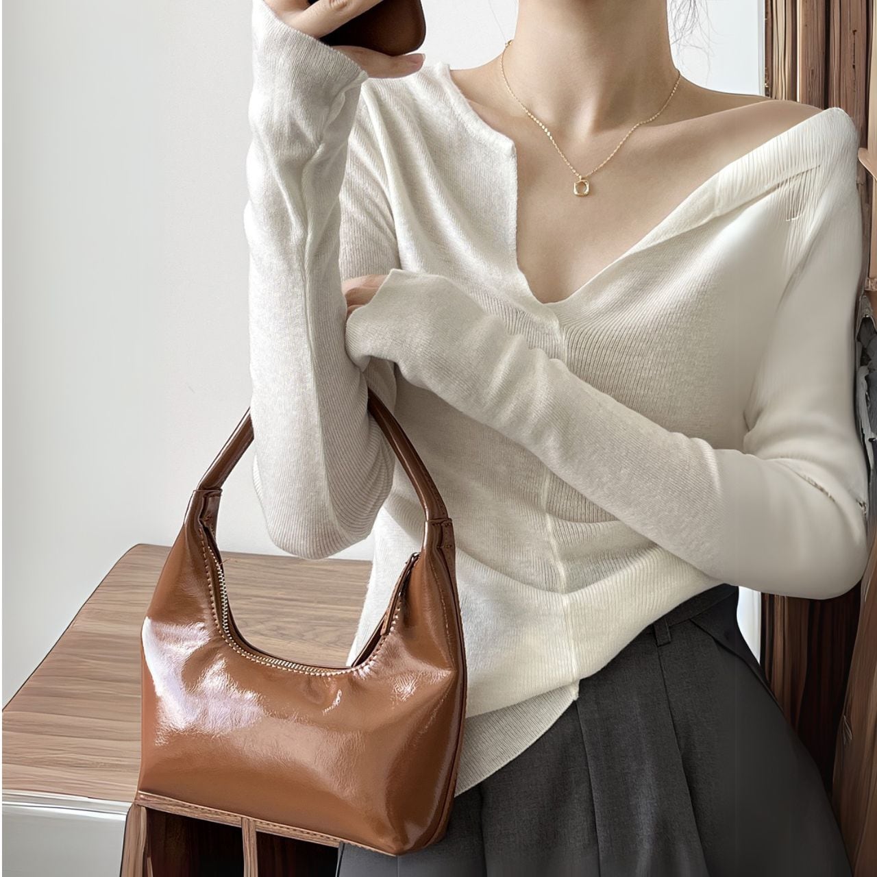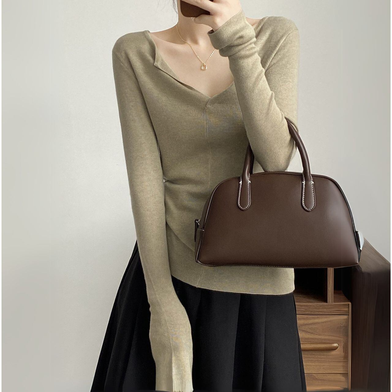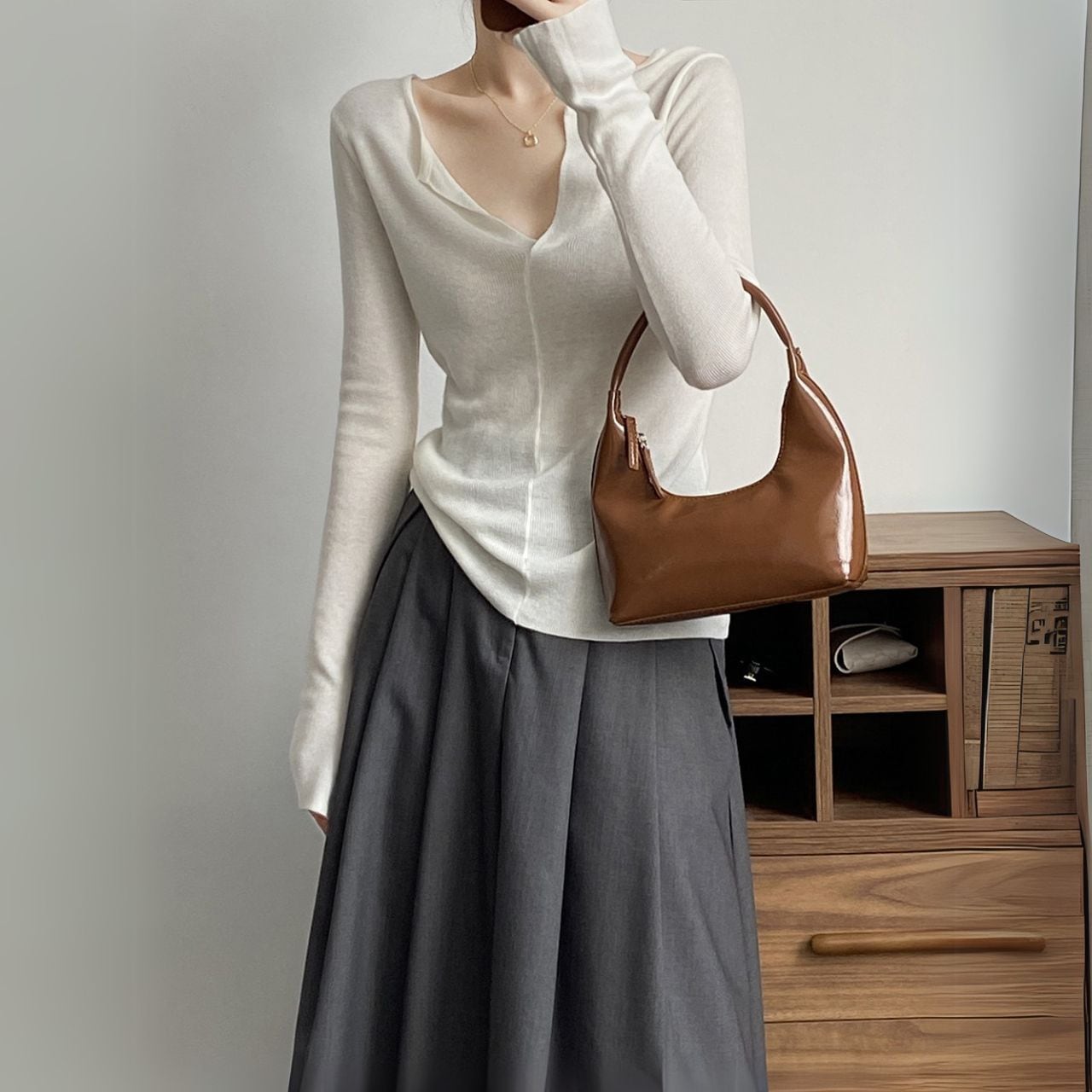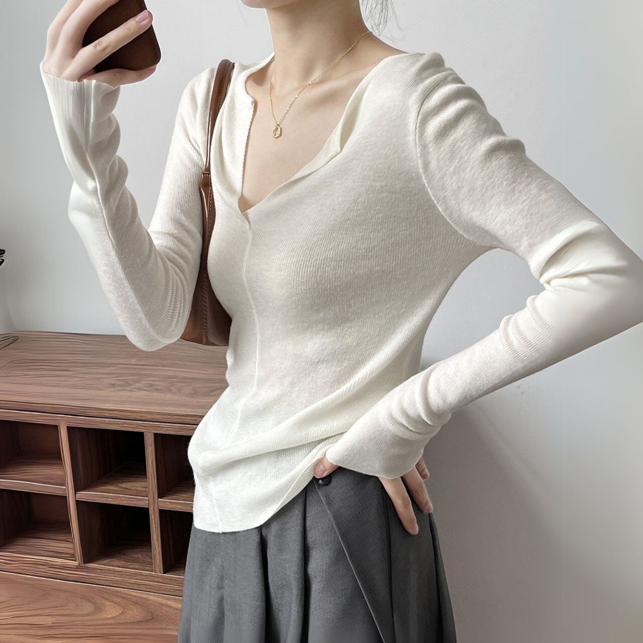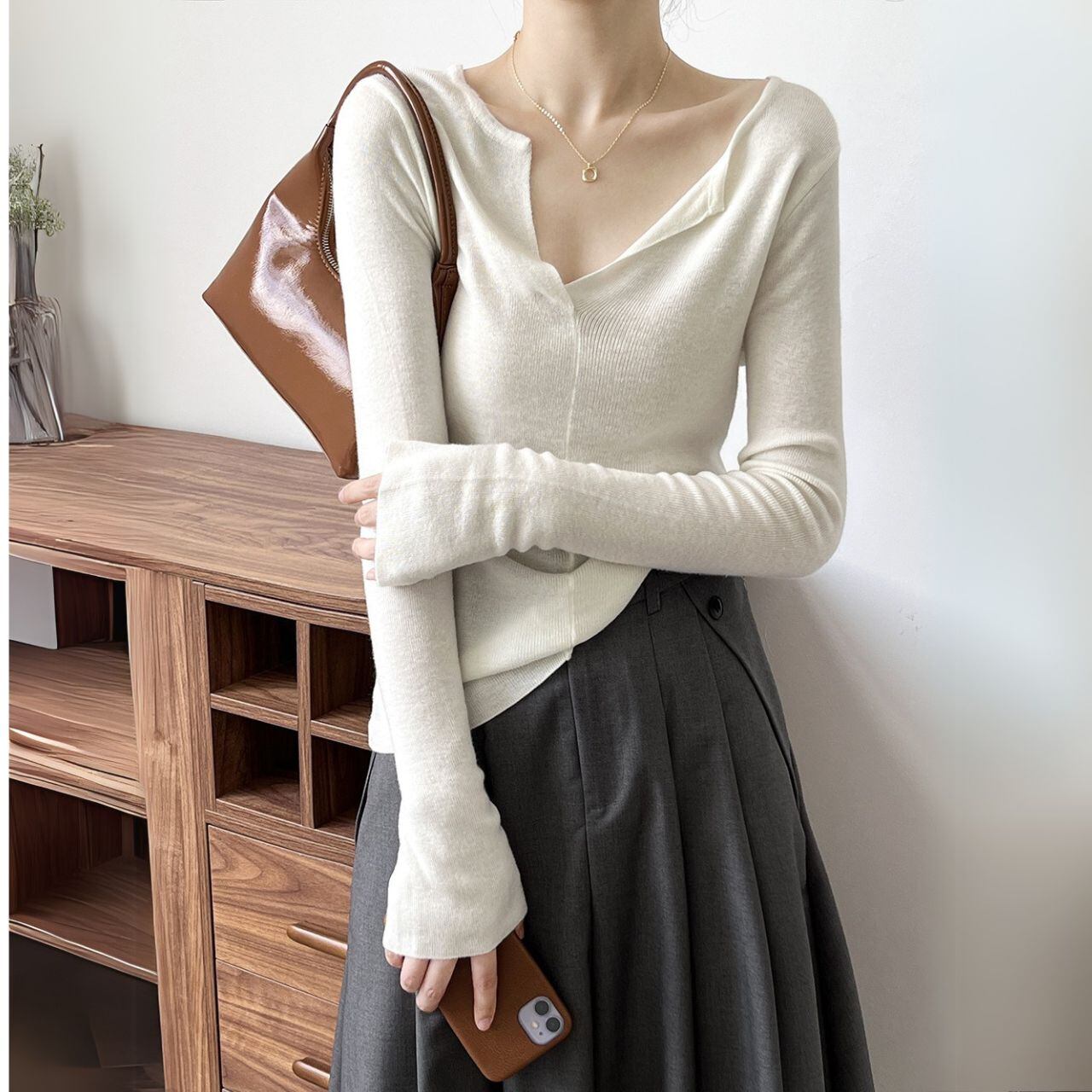 Vネックロングスリーブニットトップス 00480