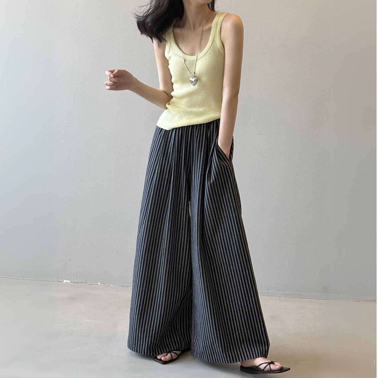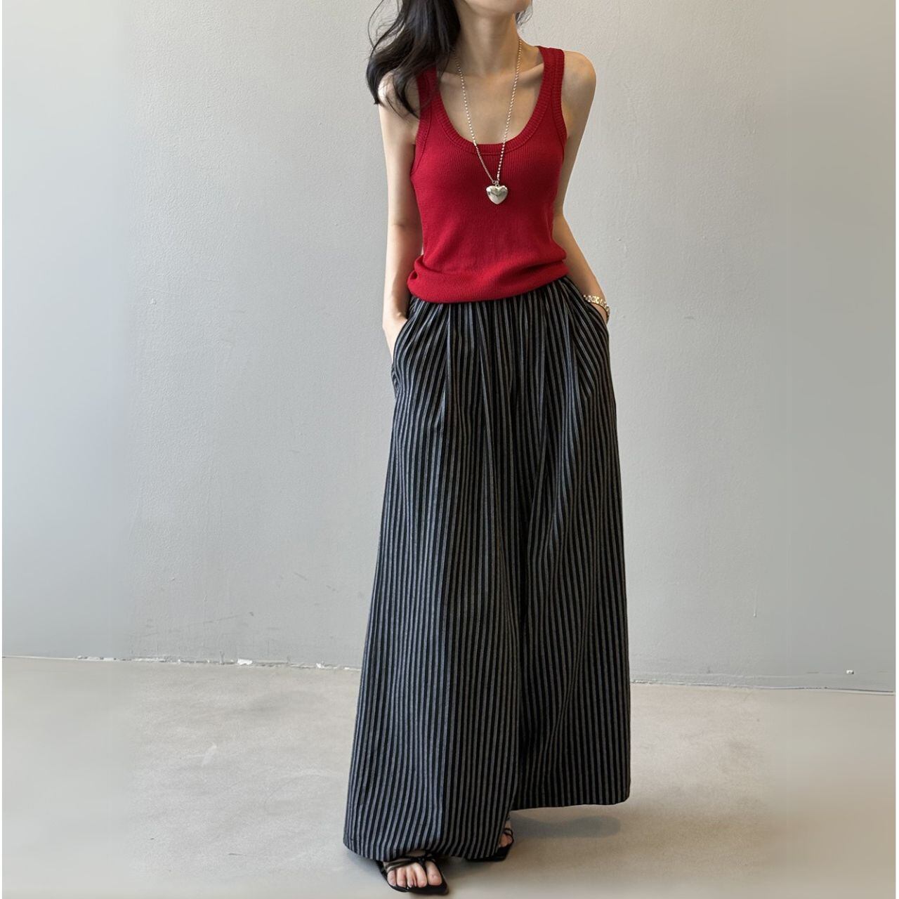 リラックスフィットストライプワイドパンツ 00509