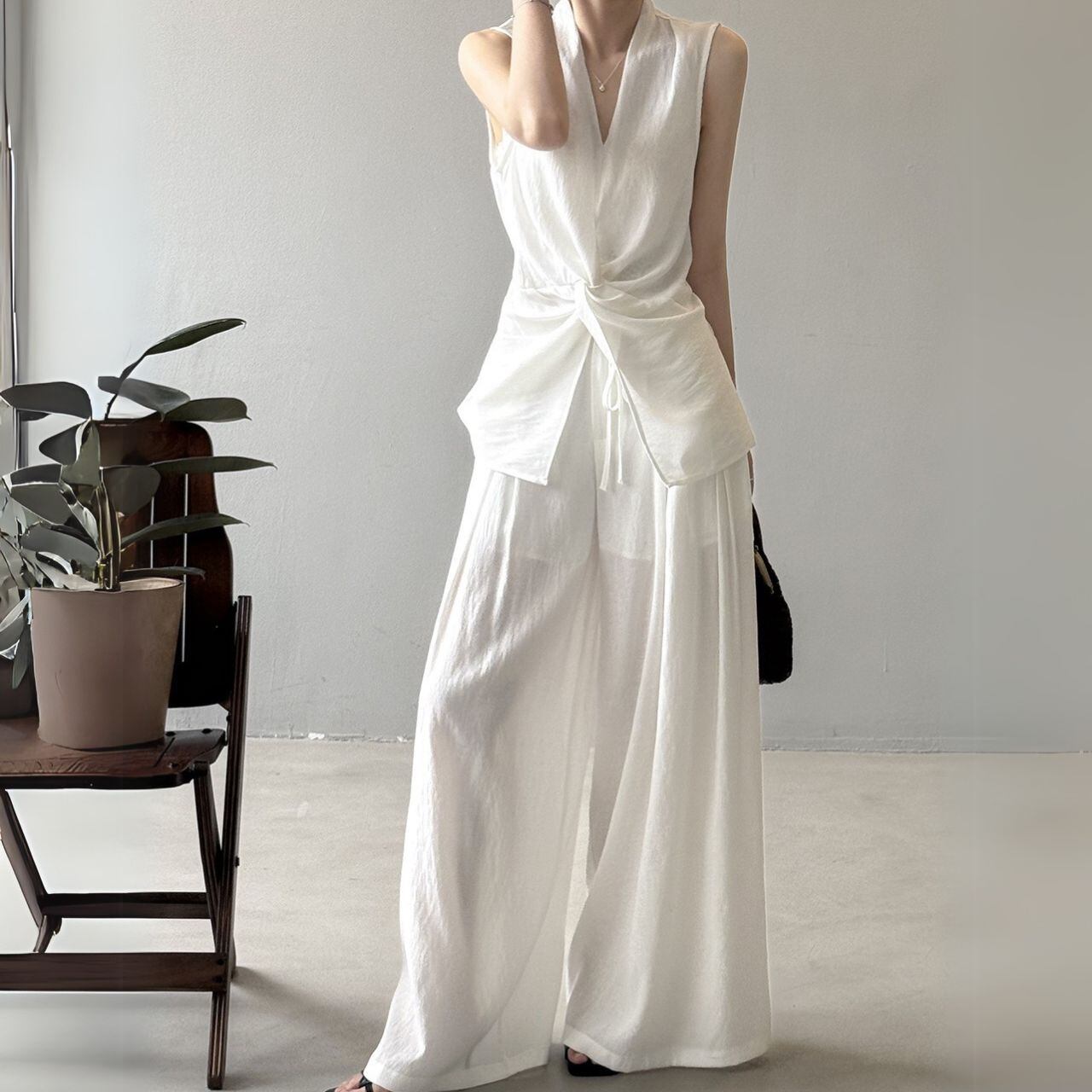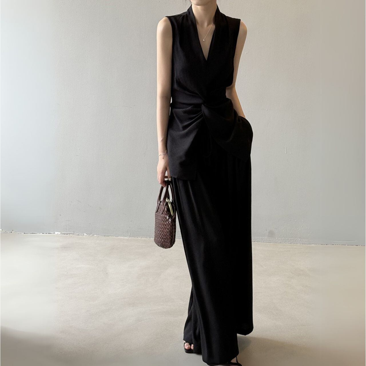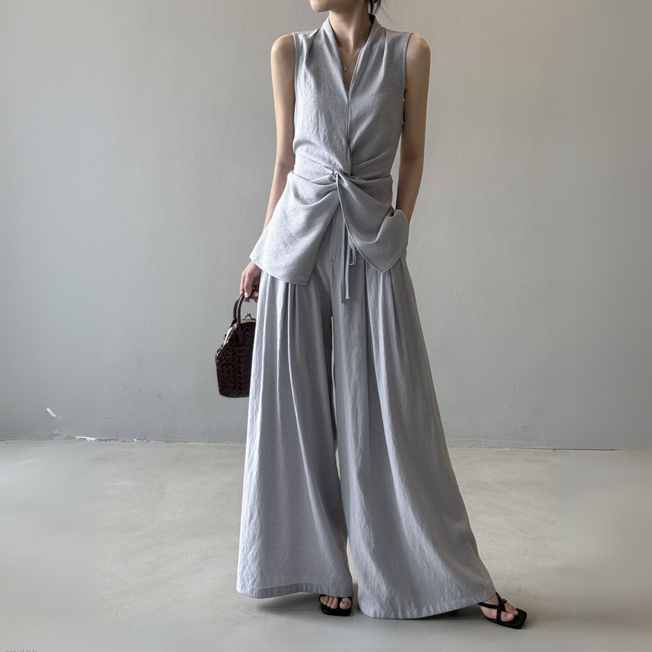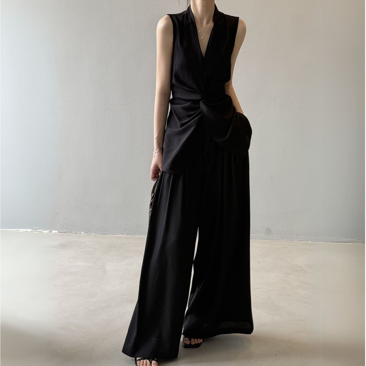 ノースリーブVネックトップスワイドパンツセットアップ 00504