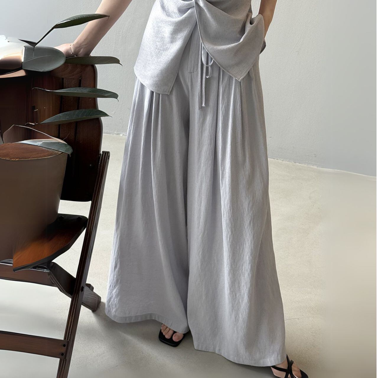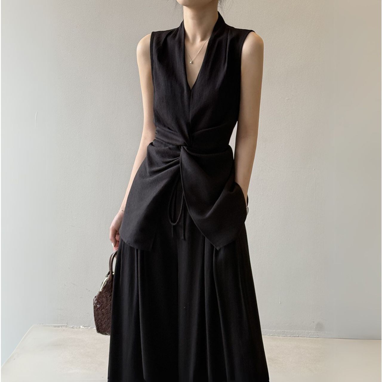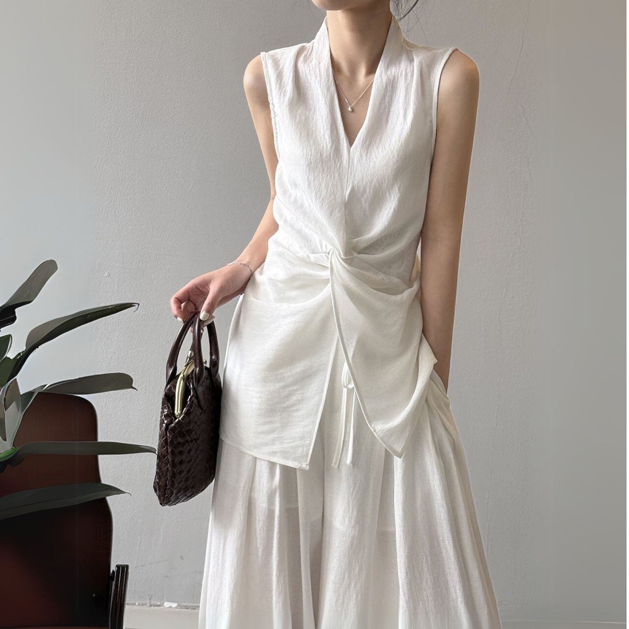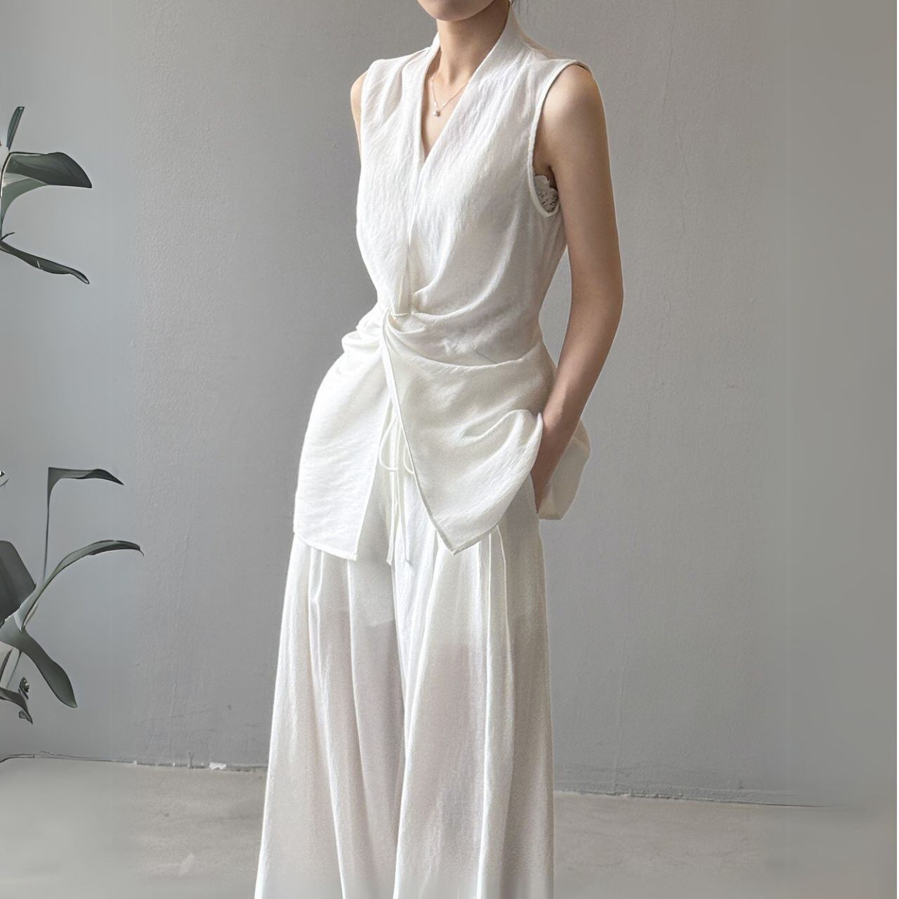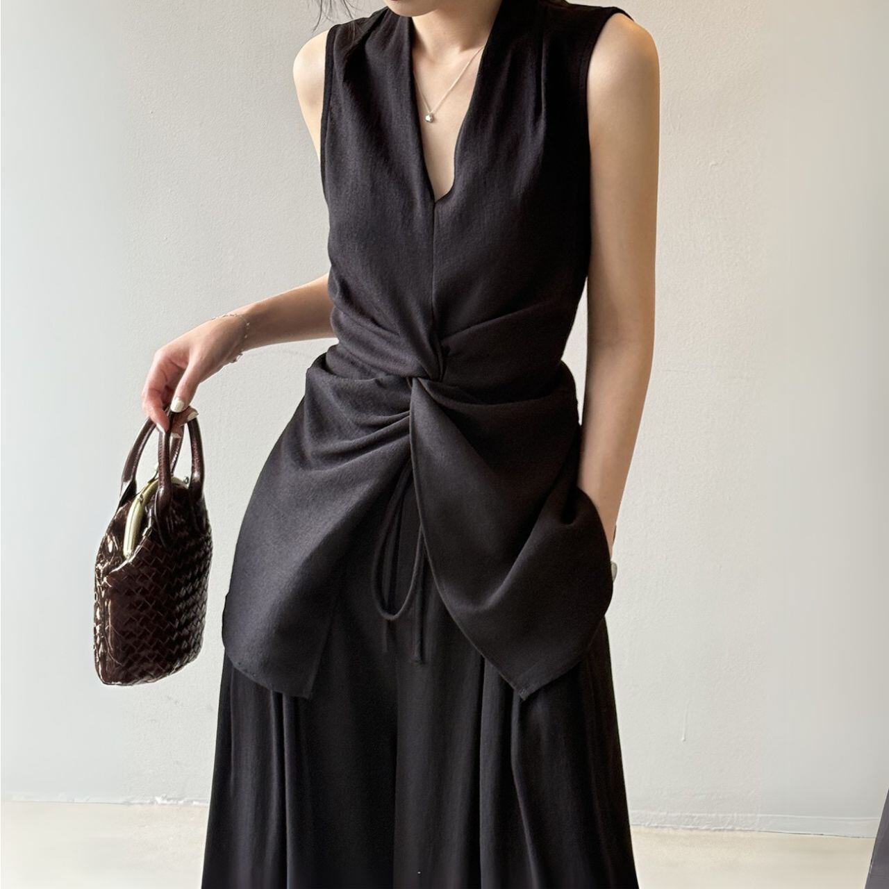 ノースリーブVネックトップスワイドパンツセットアップ 00504