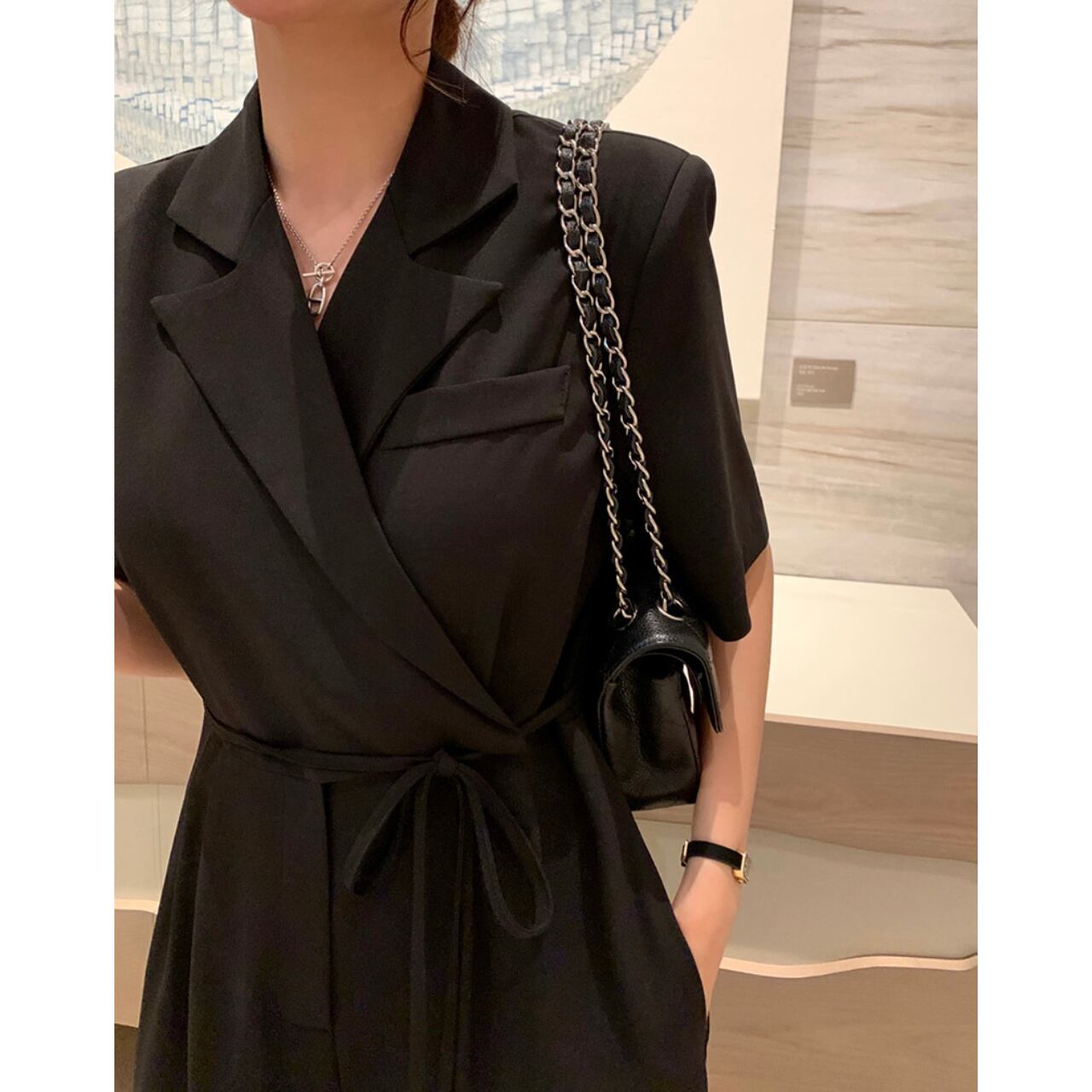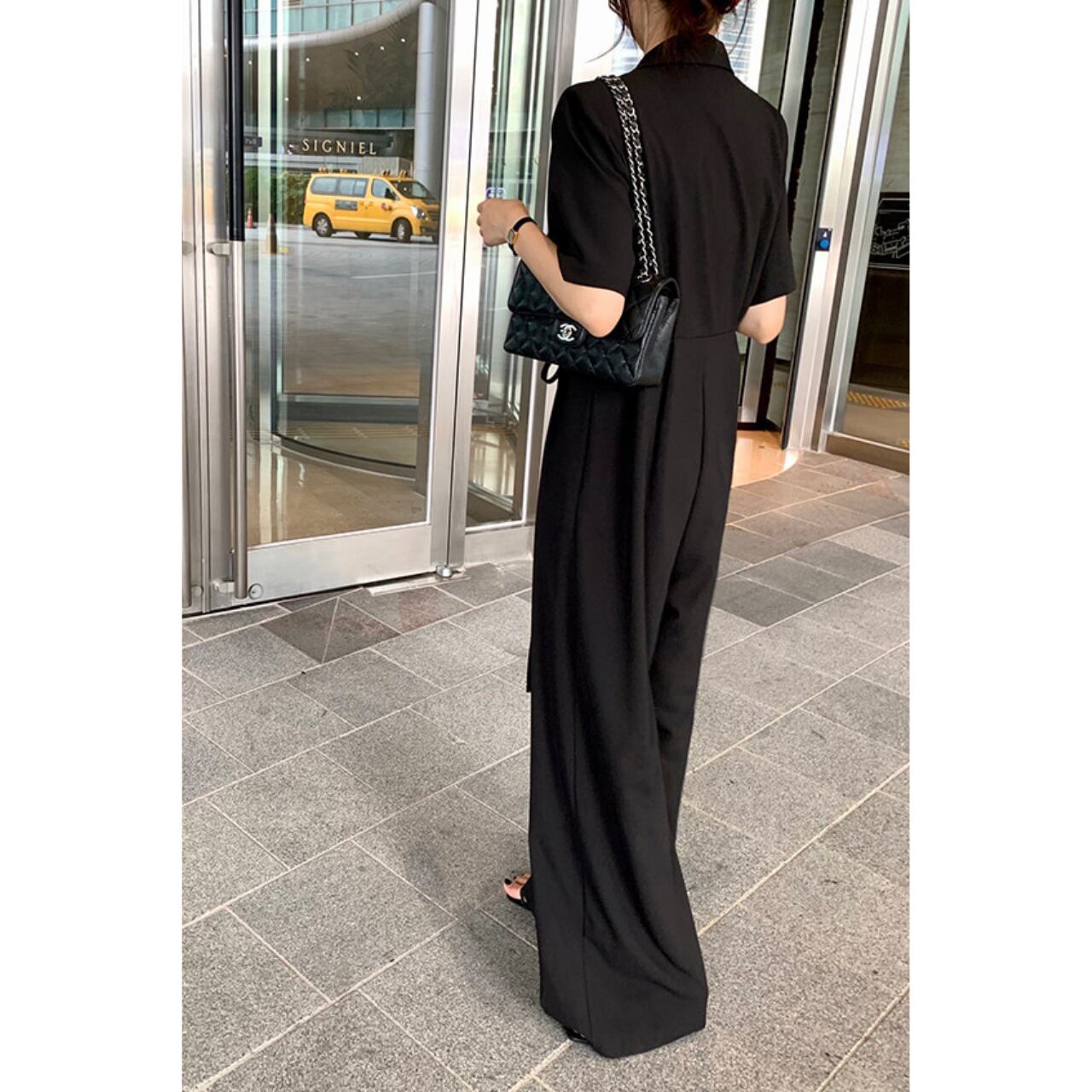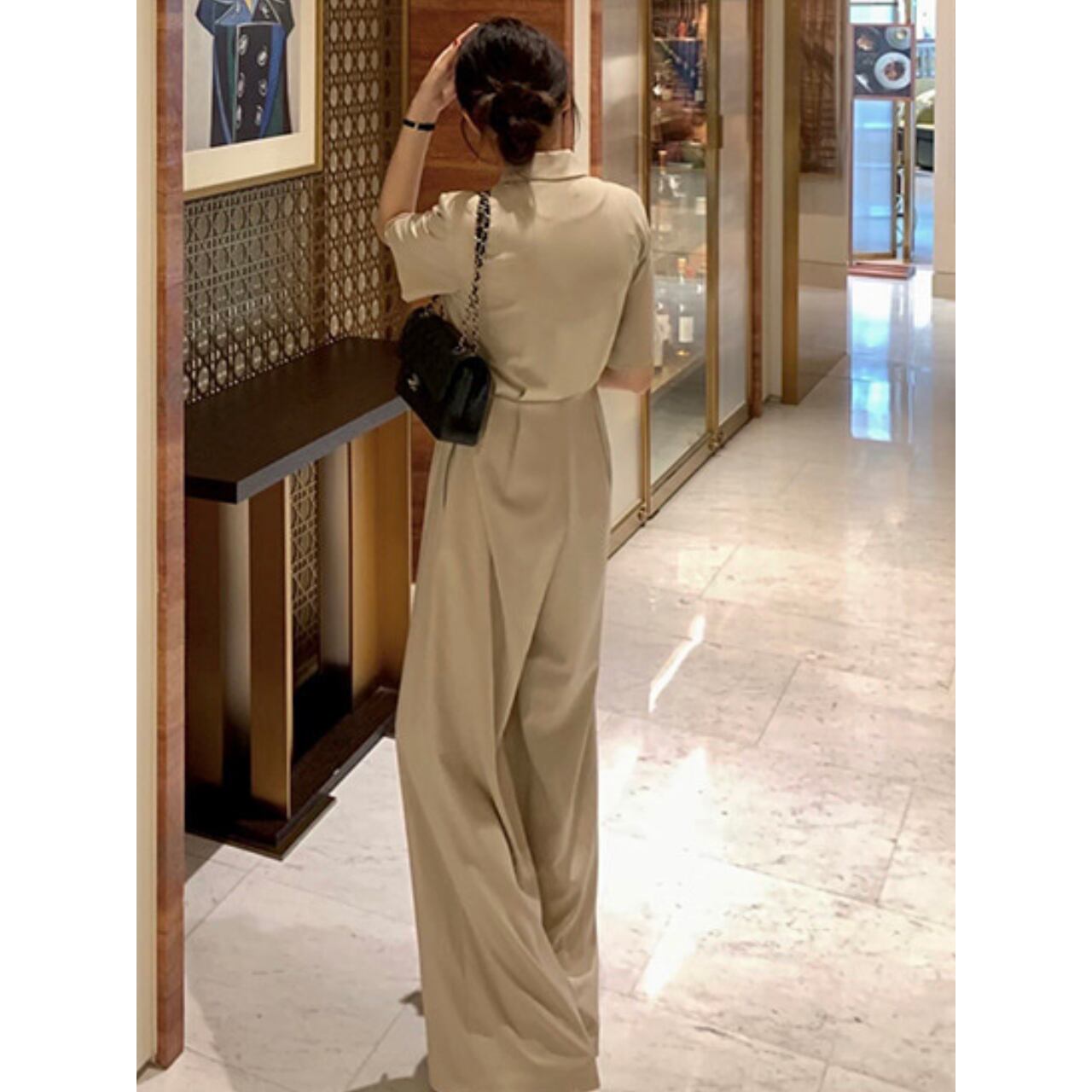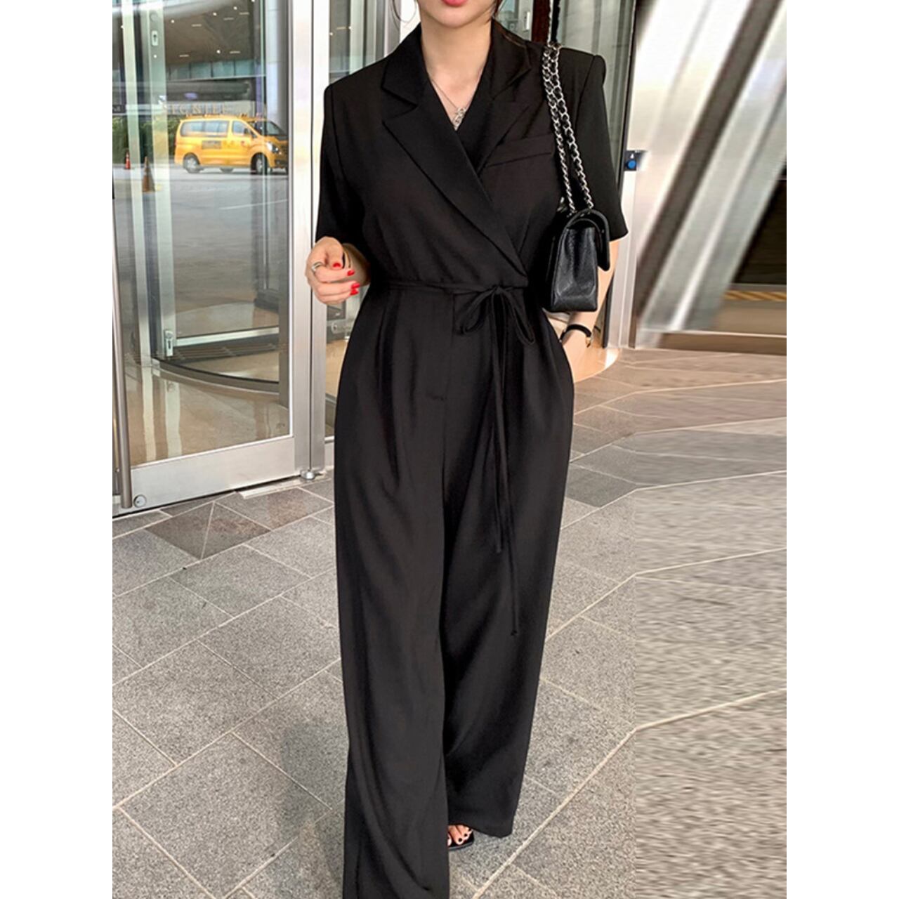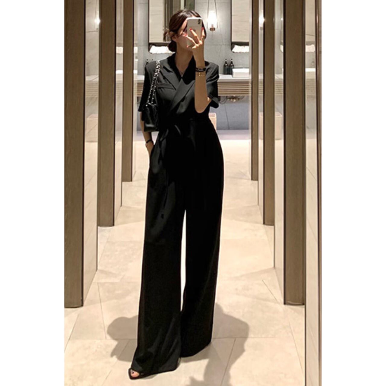 ウエストリボンストレートワイドレッグオールインワン 00562