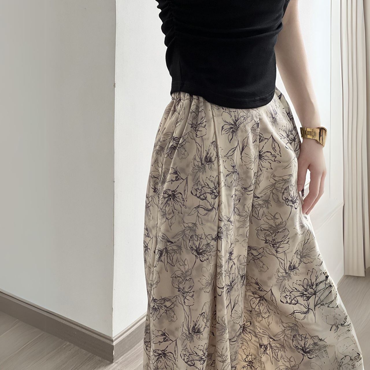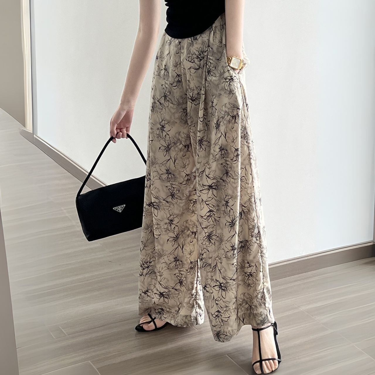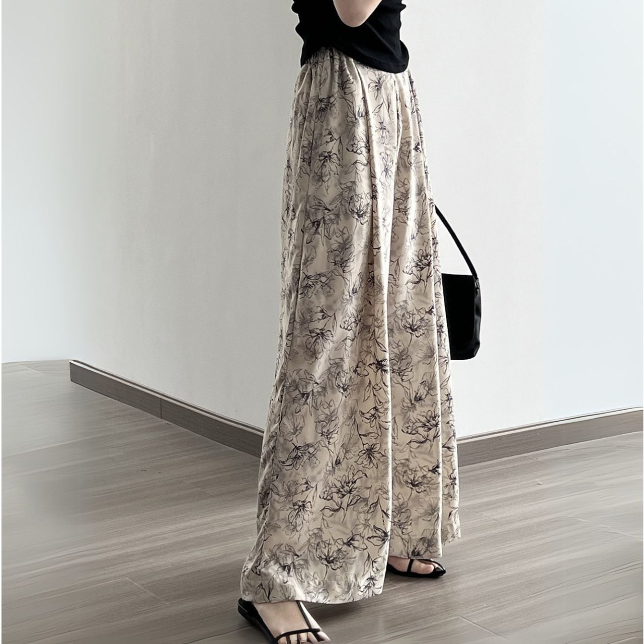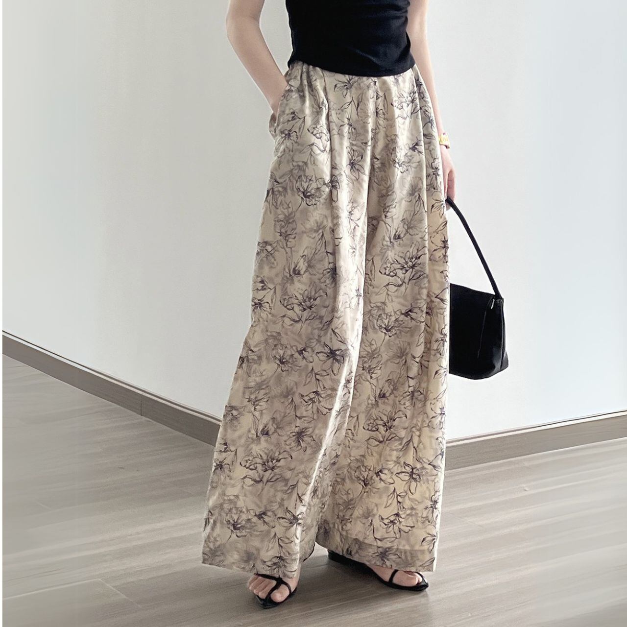 花柄プリントルーズワイドレッグパンツ 00584