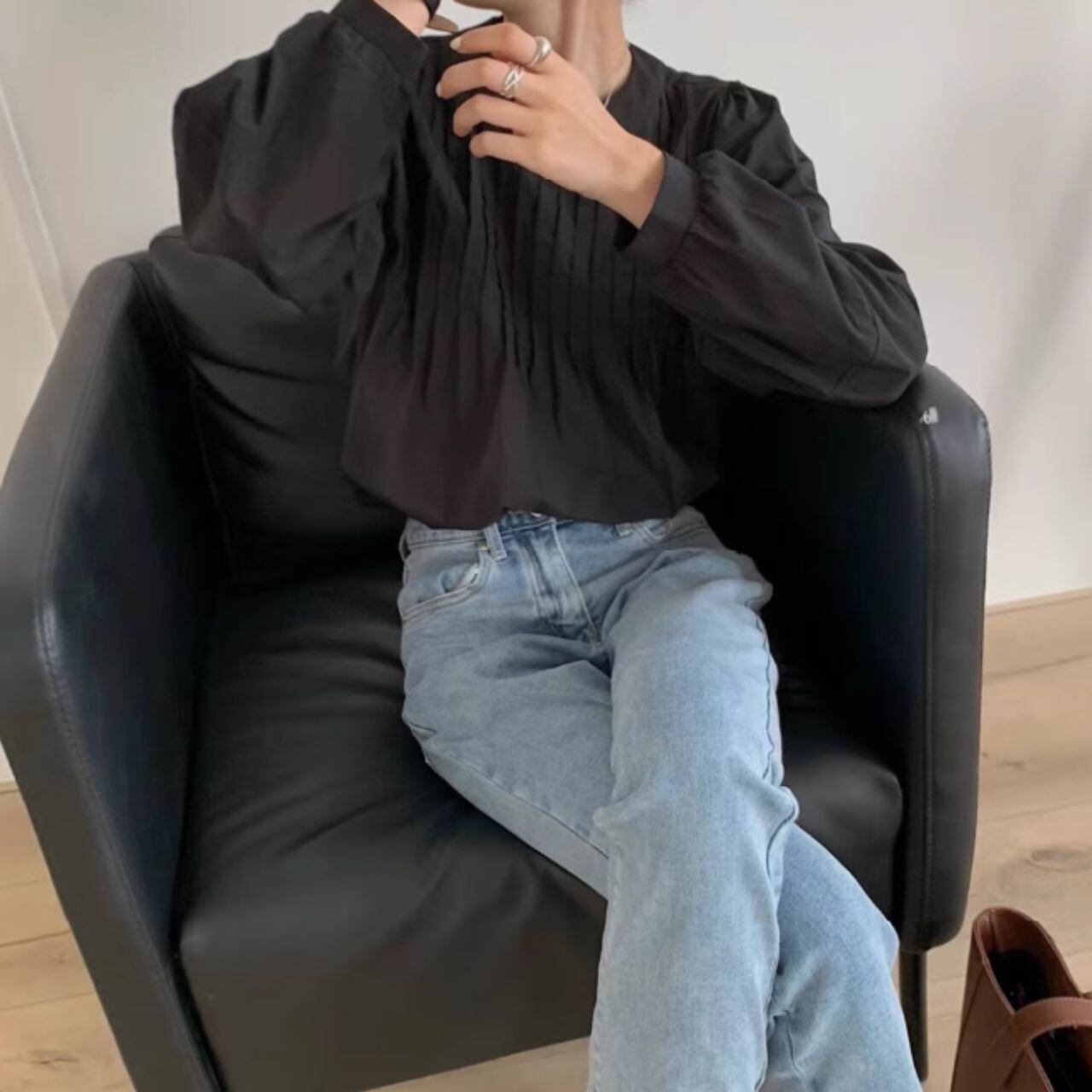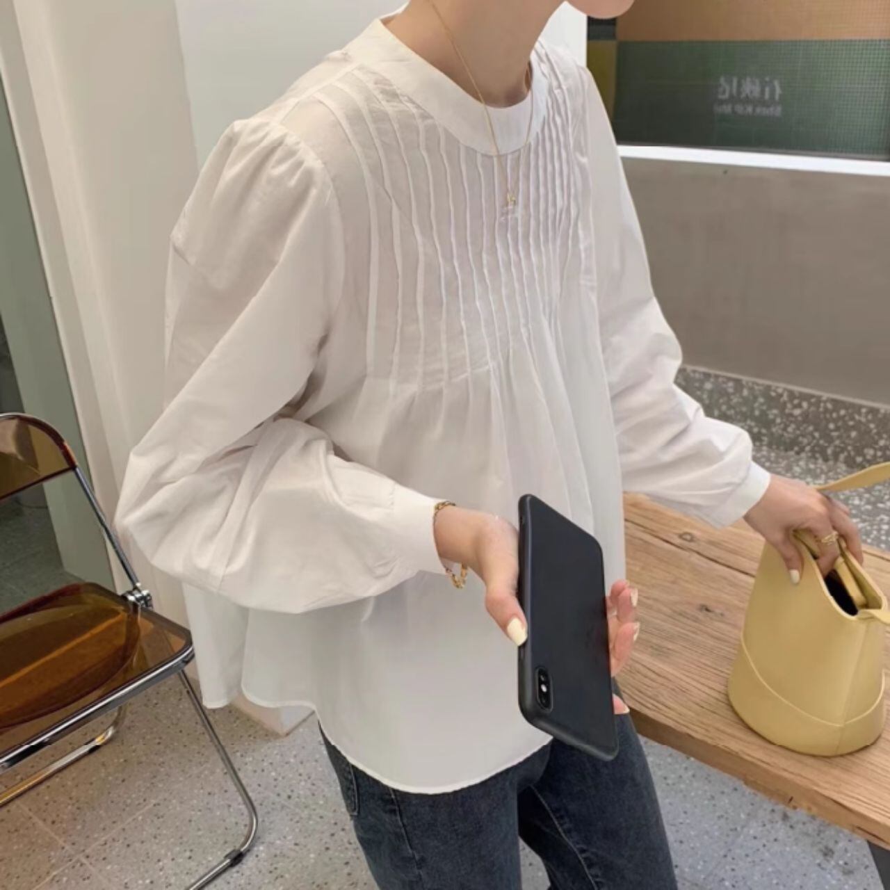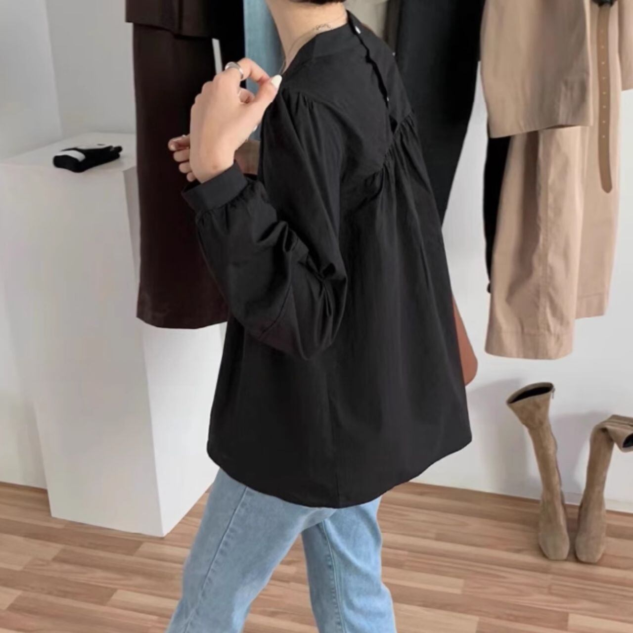 スタンドカラーオーバーサイズバルーンスリーブシャツ 00595