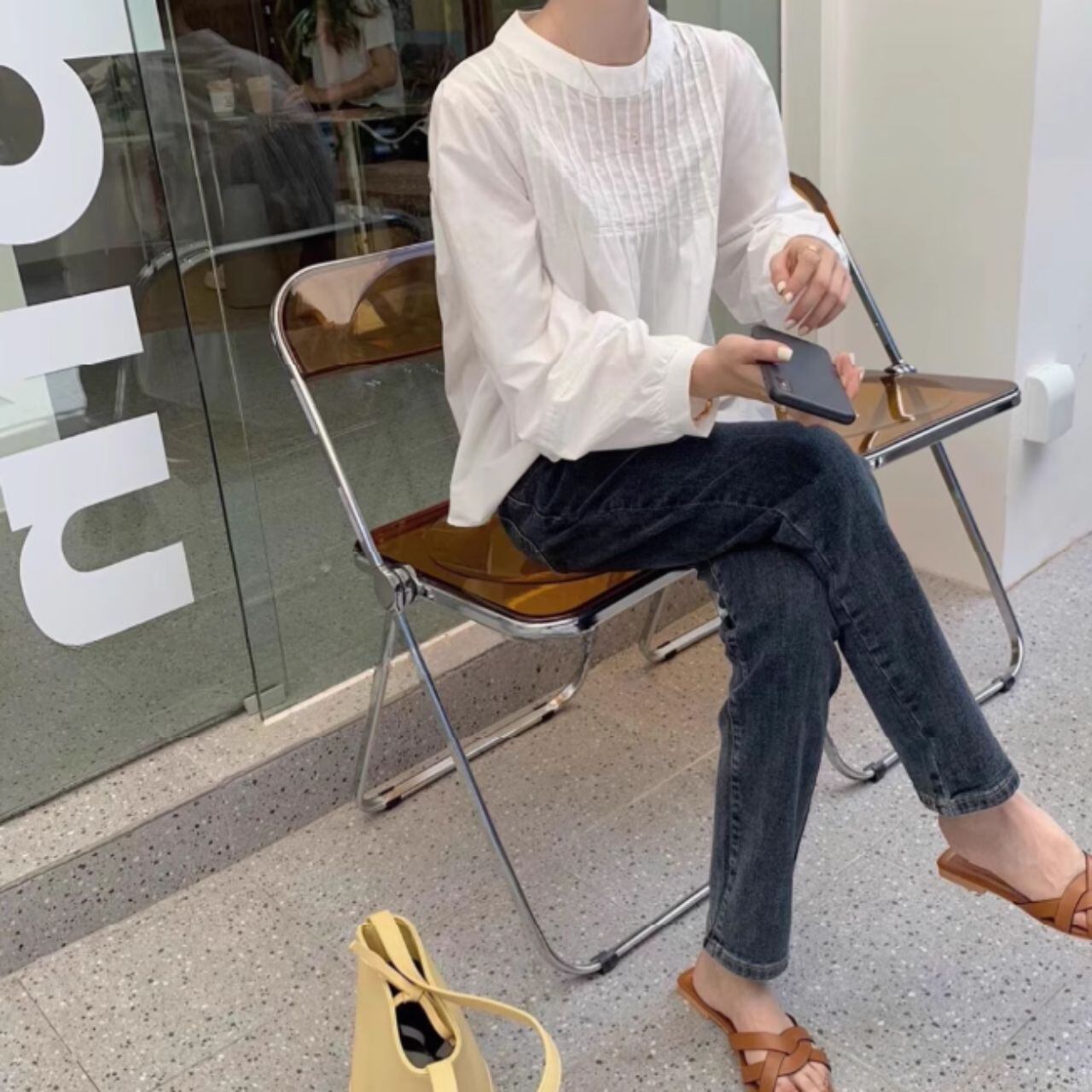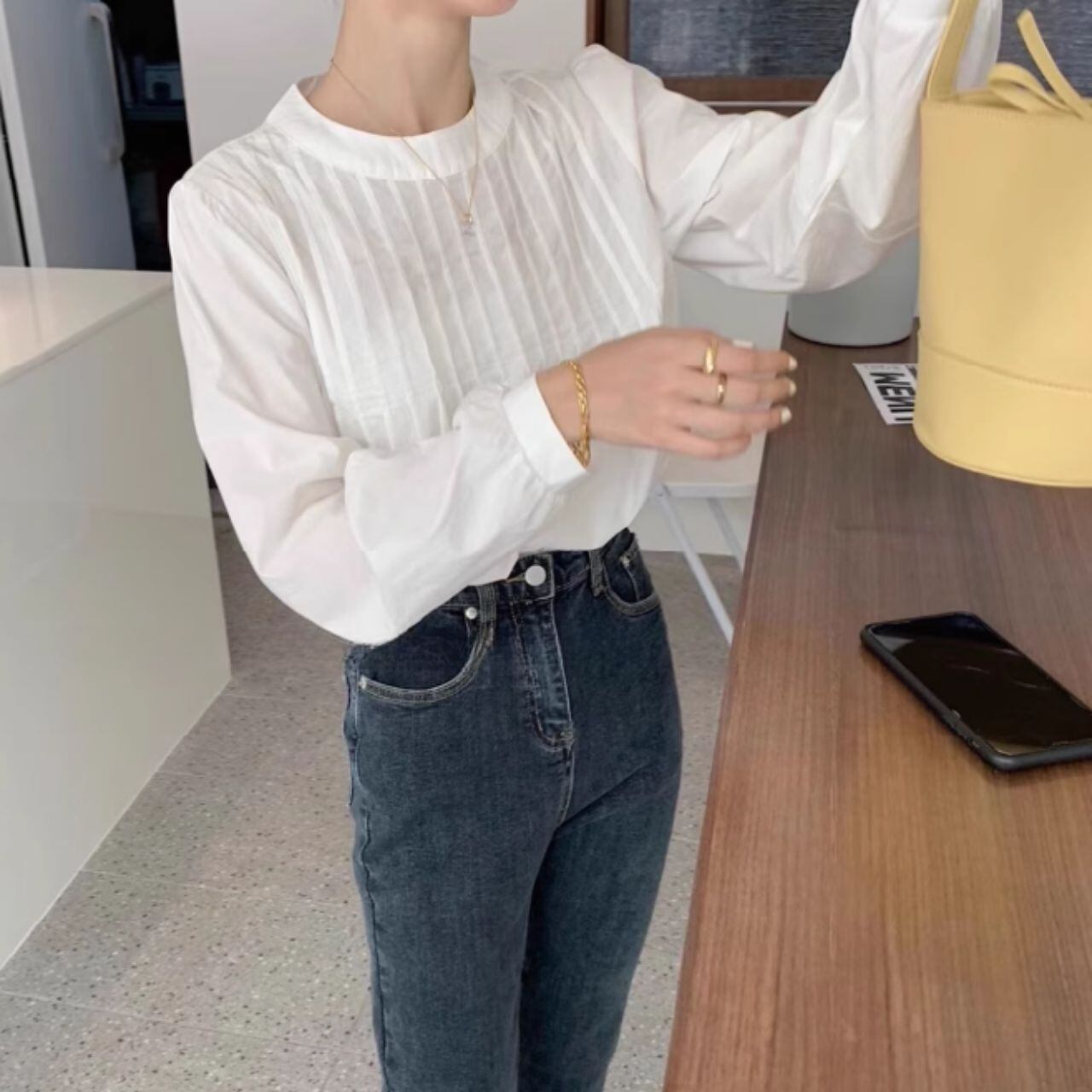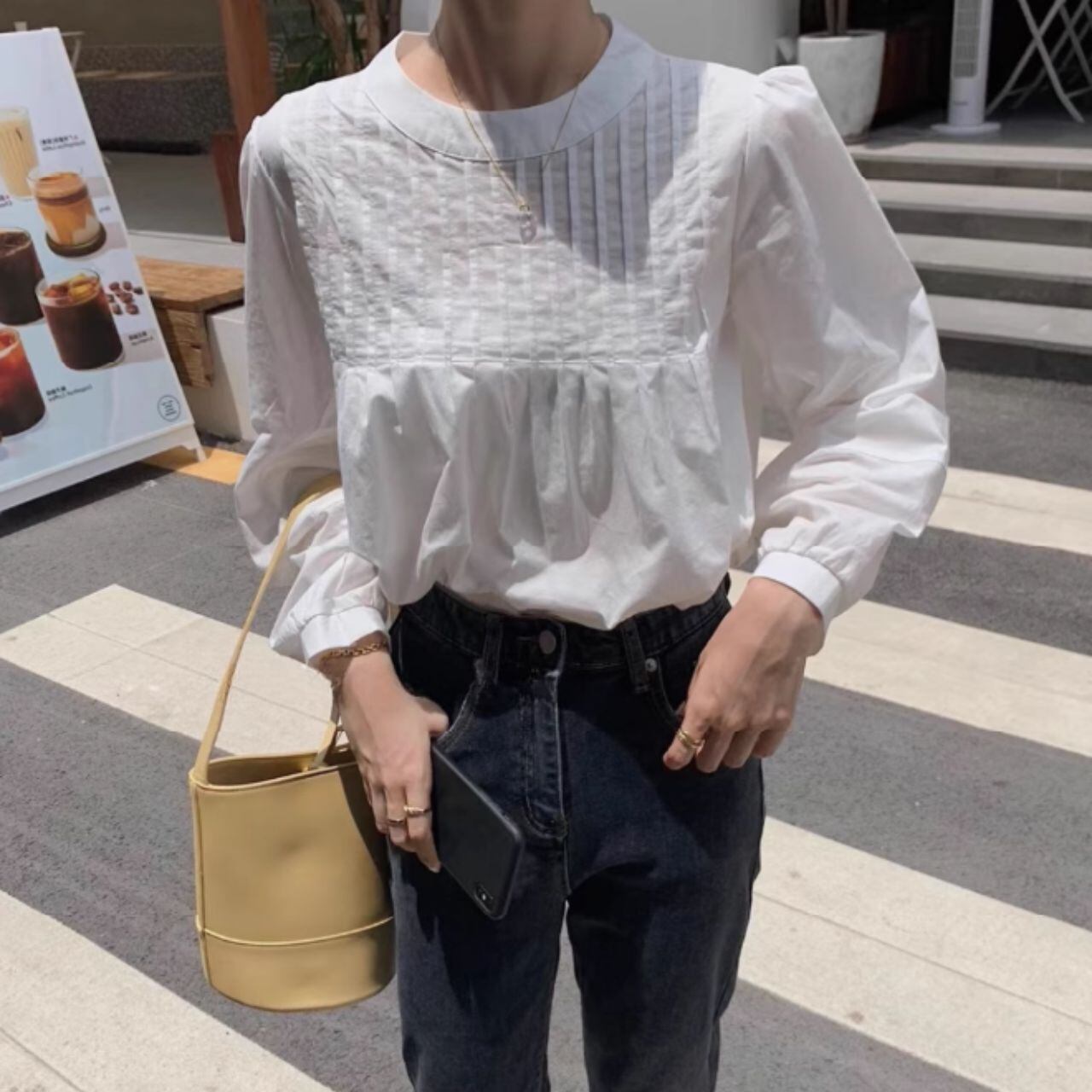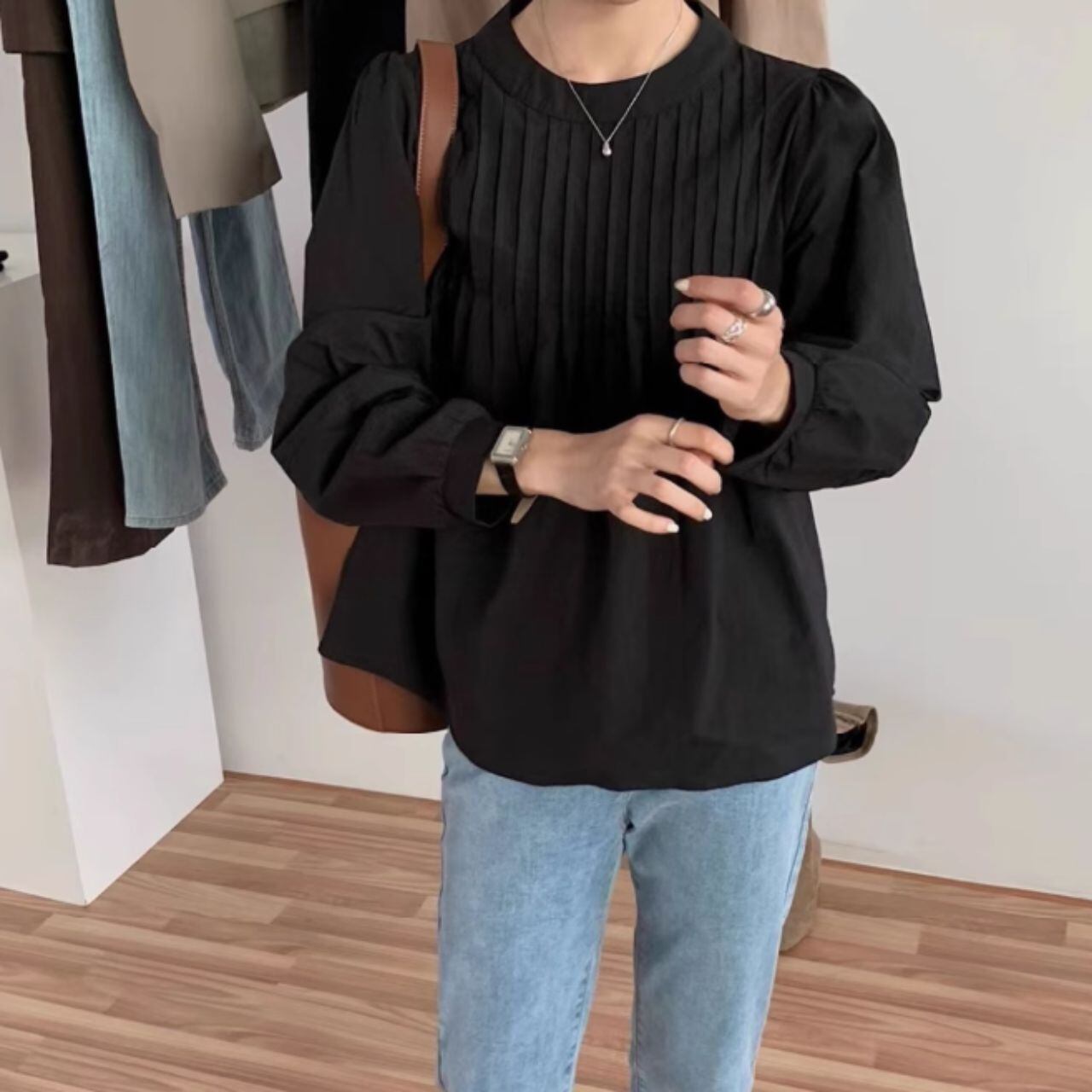 スタンドカラーオーバーサイズバルーンスリーブシャツ 00595