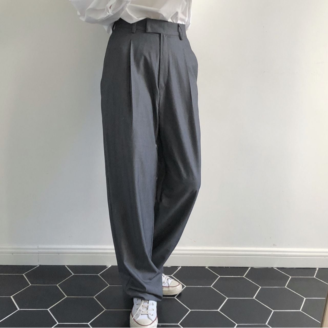プリーツ入りセンタープレスルーズフィットパンツ 00606