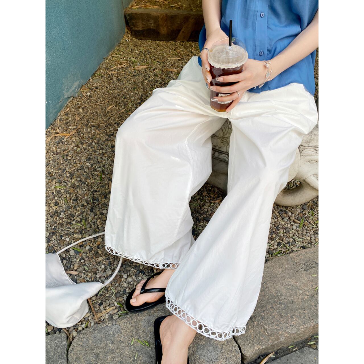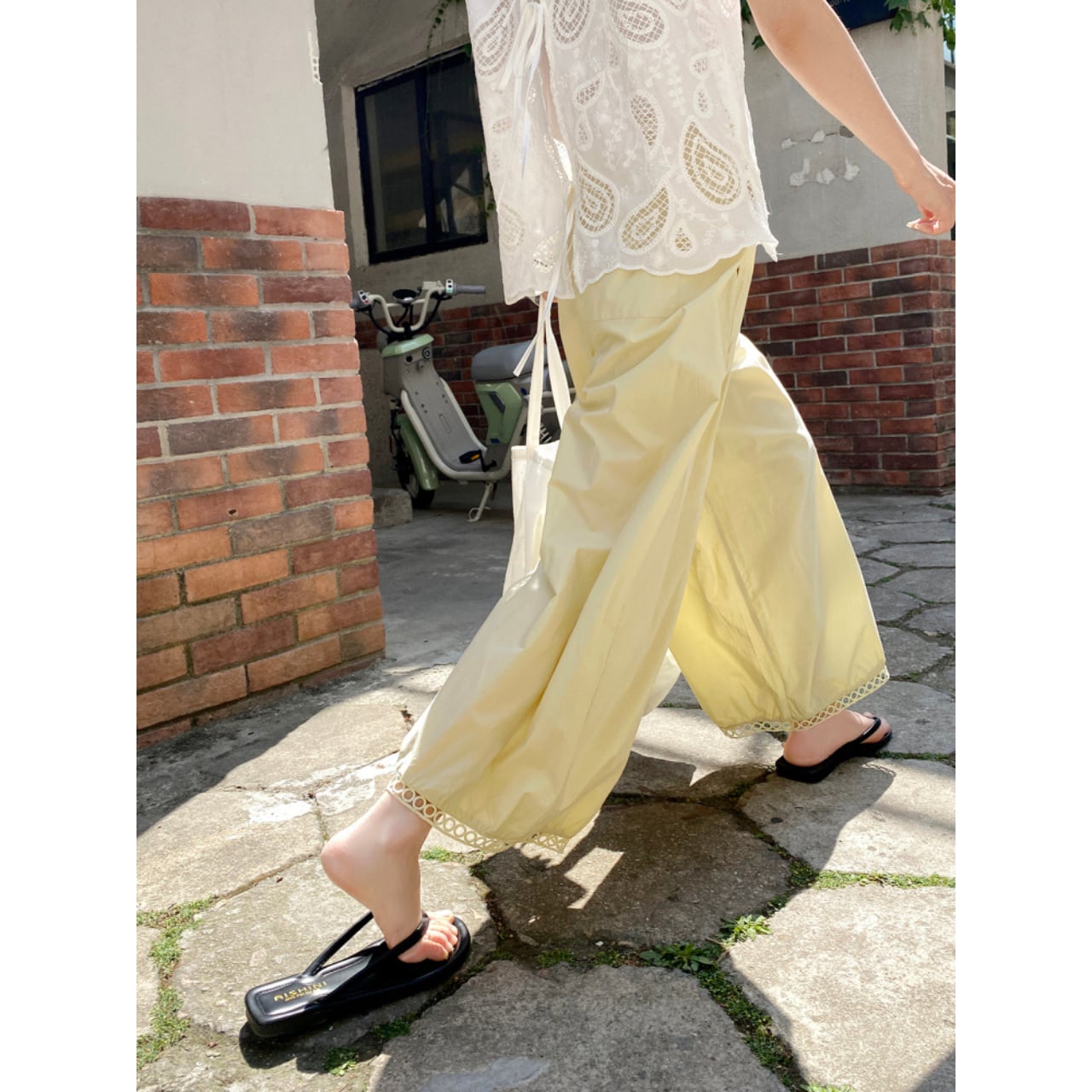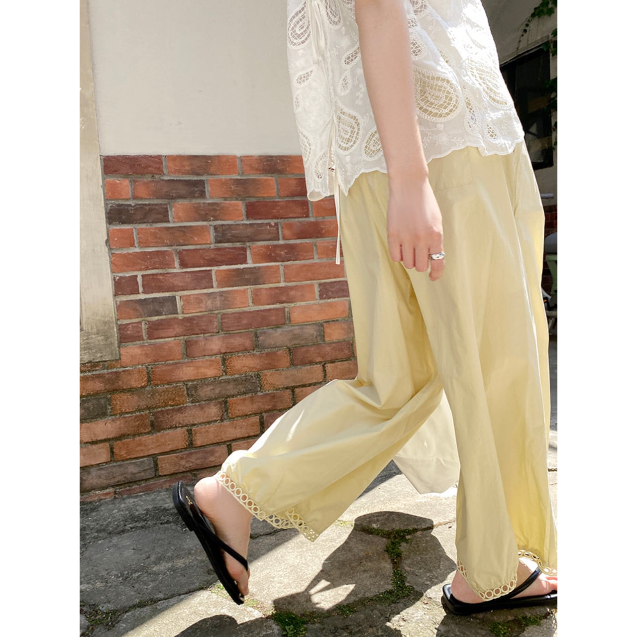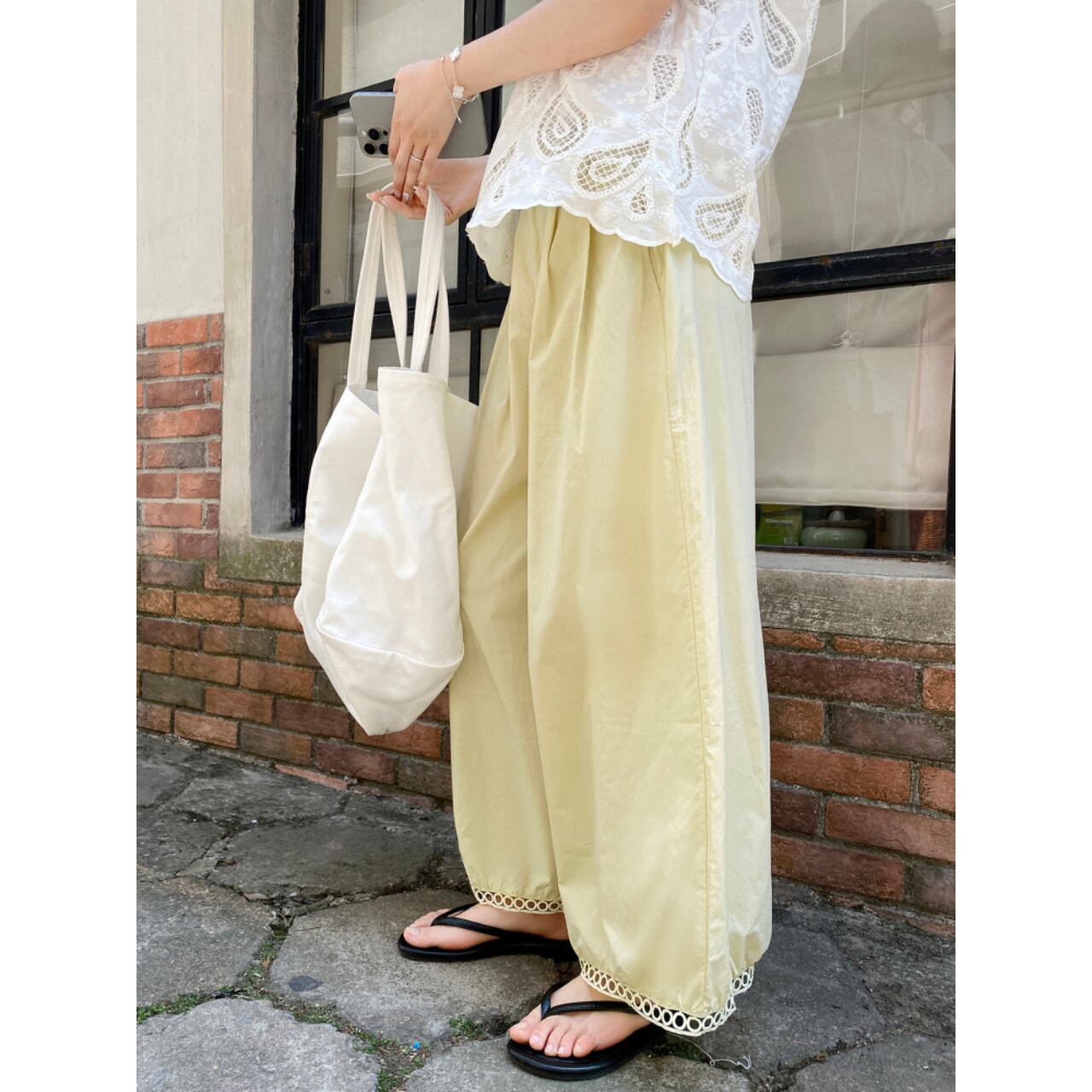 レーストリム付きバルーンワイドパンツ 00712