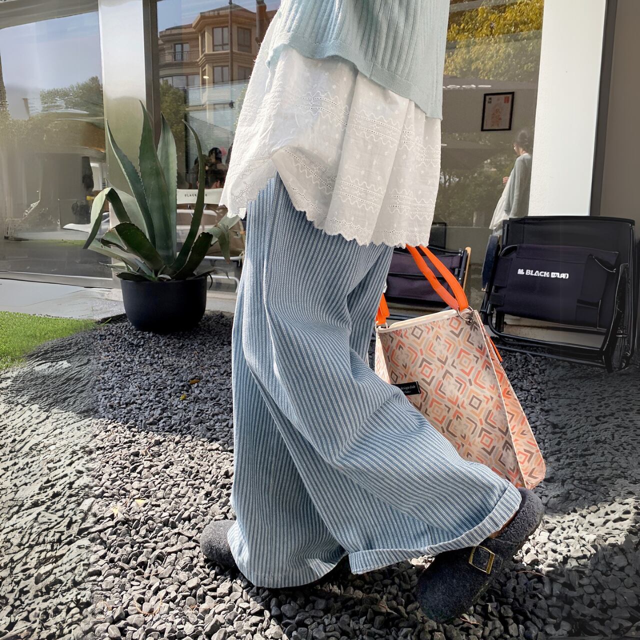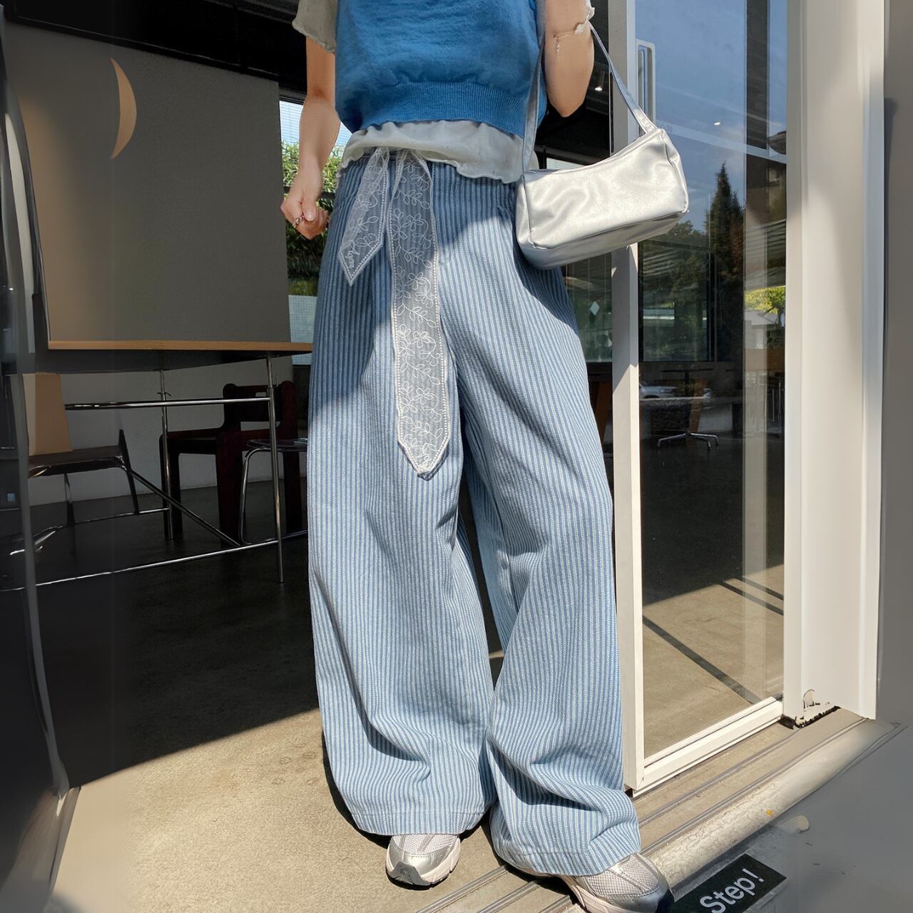 レースベルト付きストライプパンツ 00713