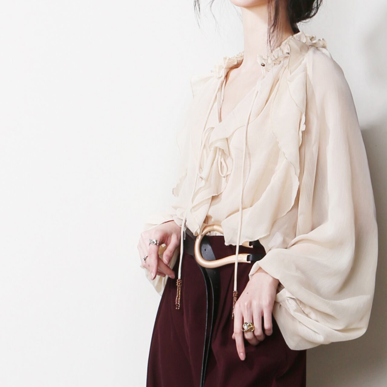 フリルネックバルーンスリーブブラウス 00744