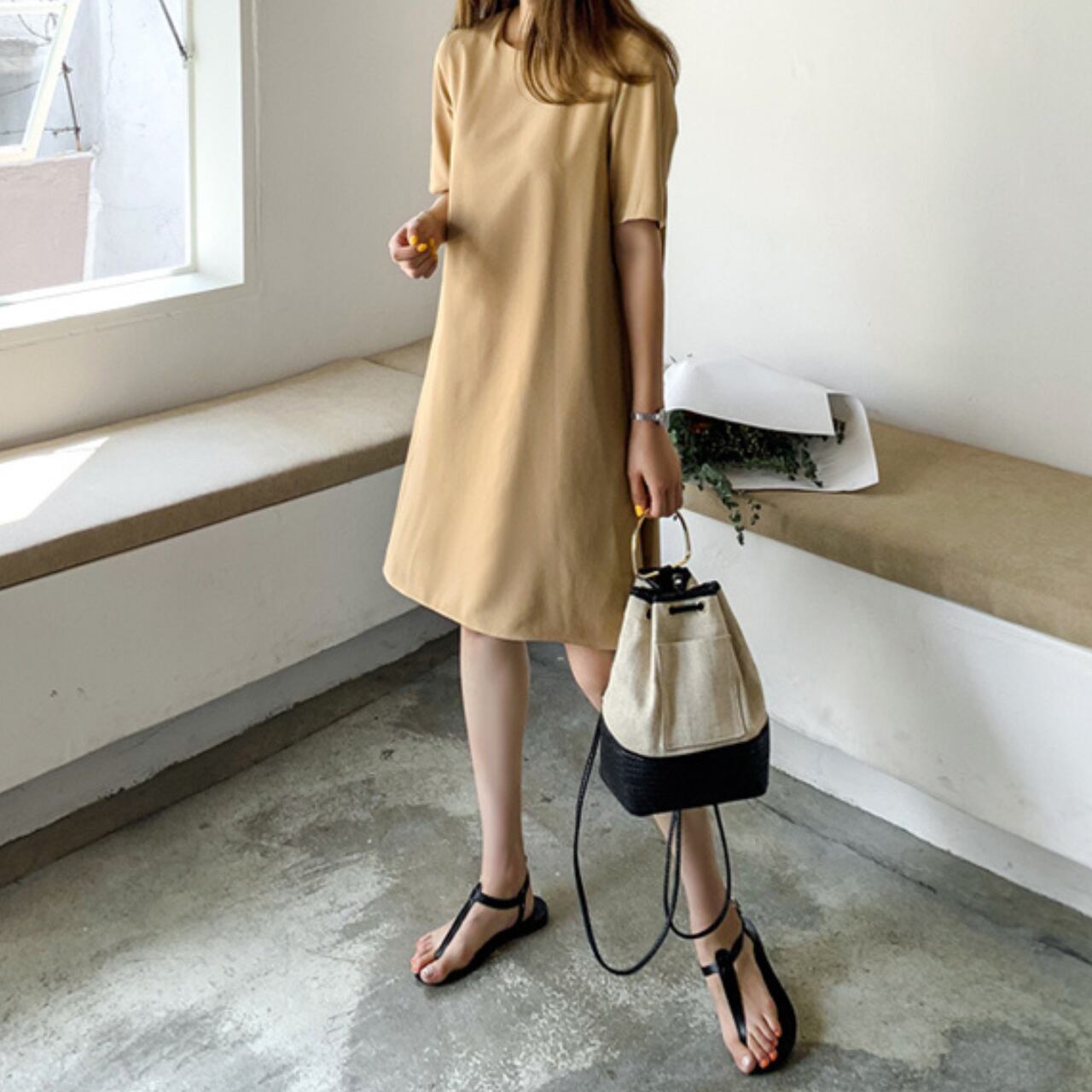 バックプリーツスタンドカラーワンピース 00770