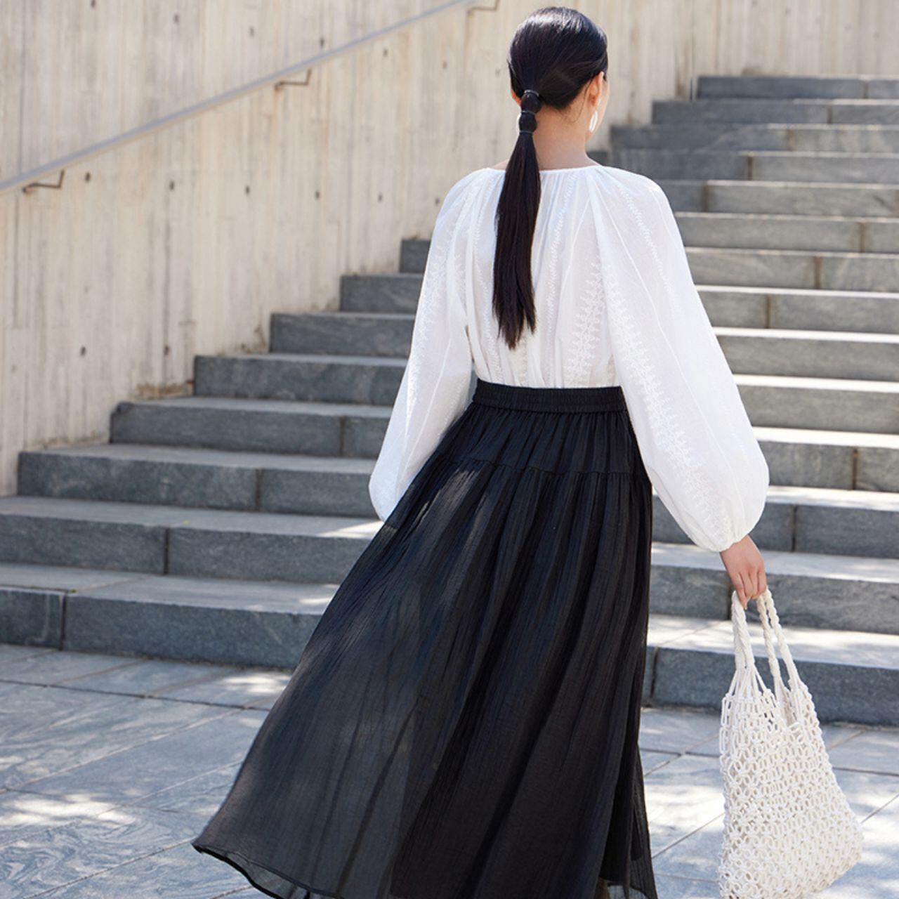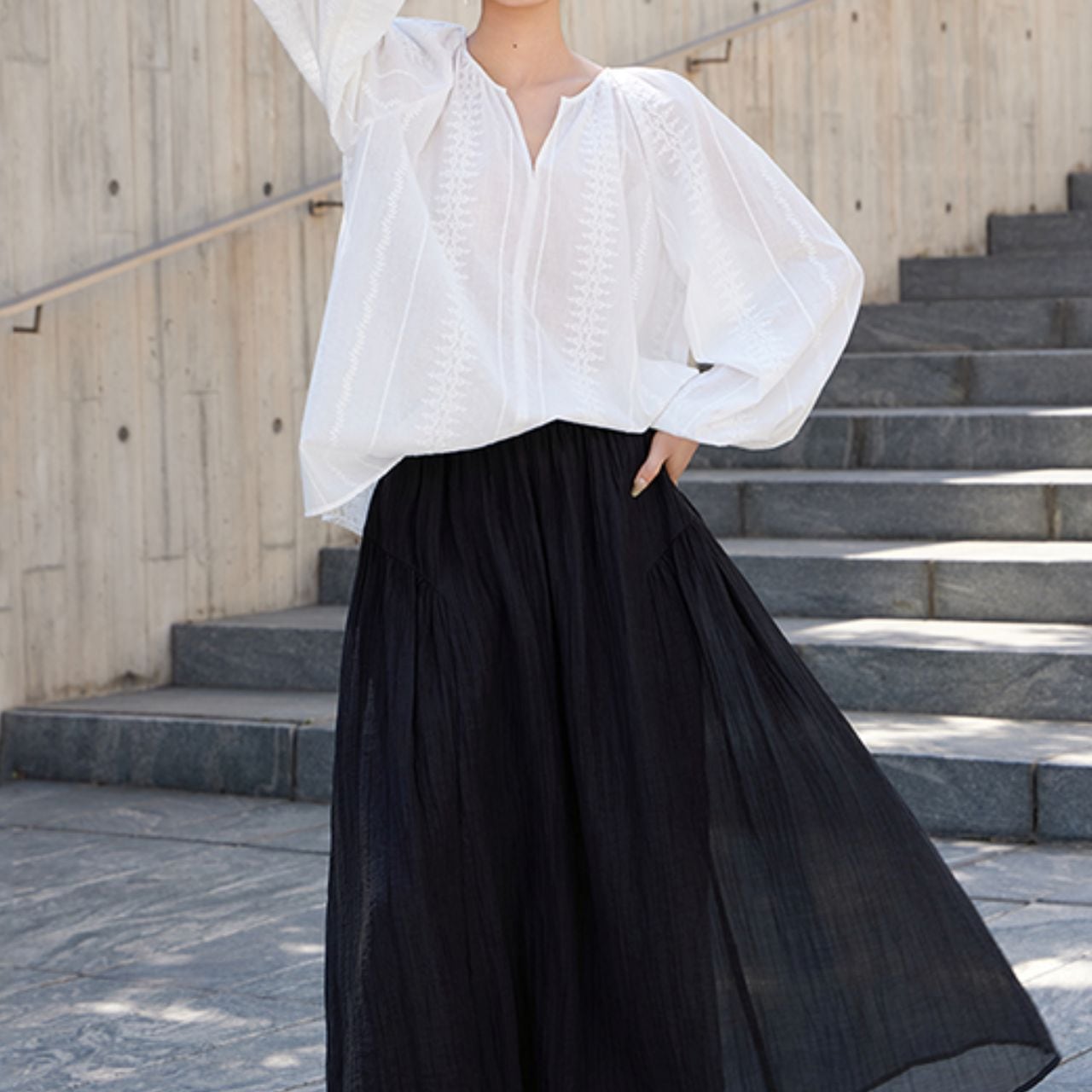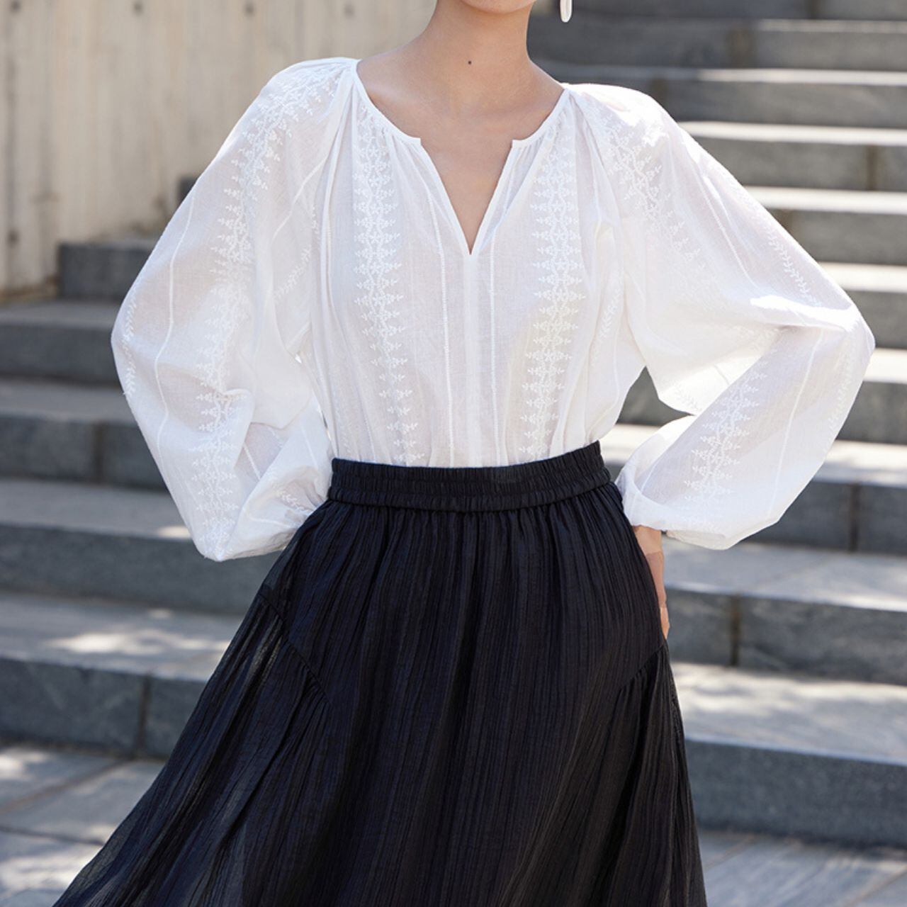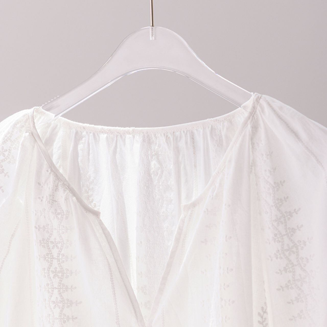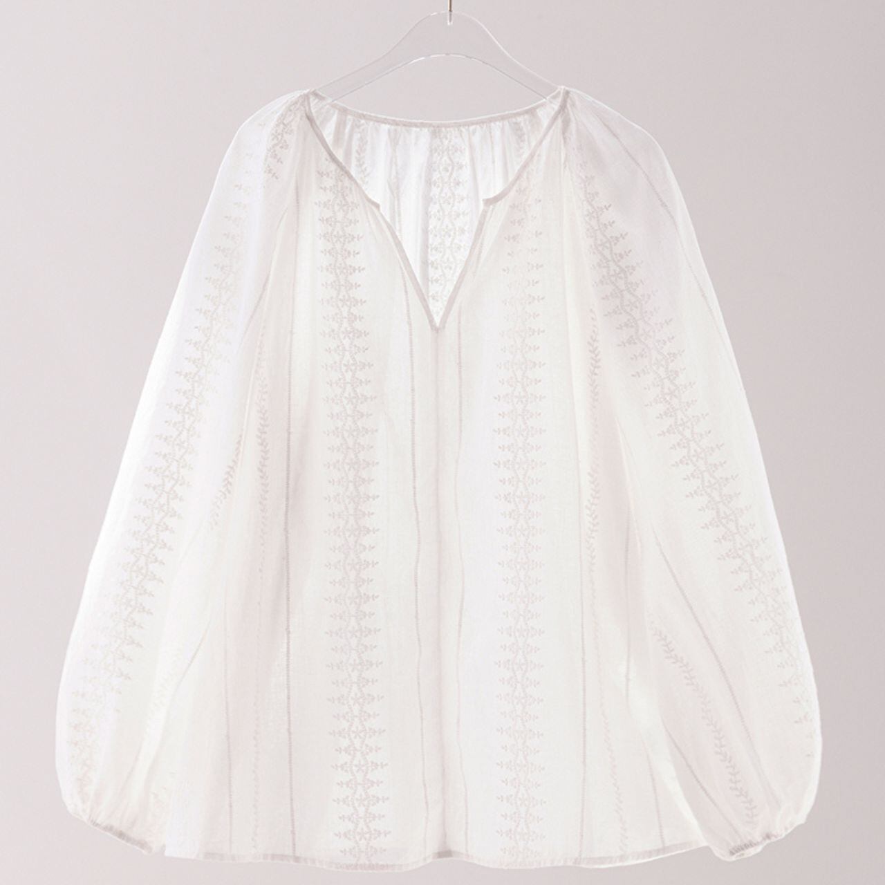 刺繍入りVネックバルーンスリーブブラウス 00622