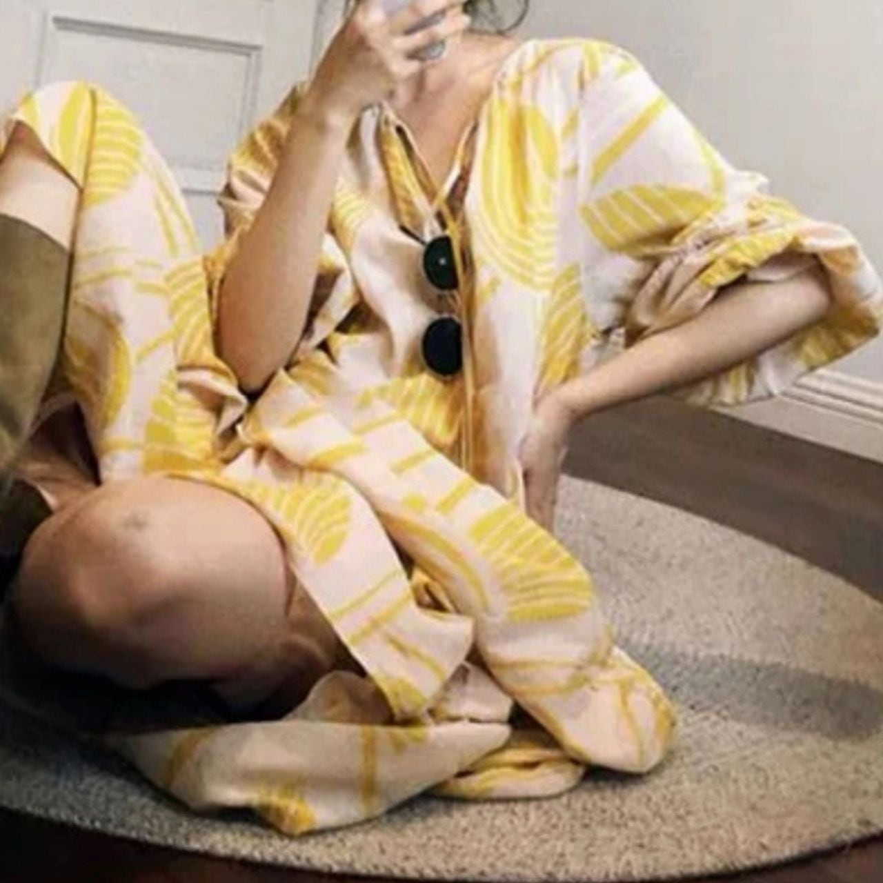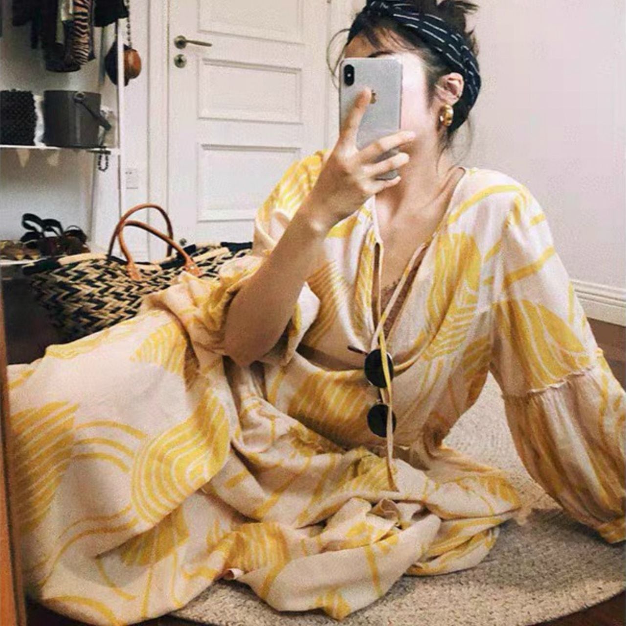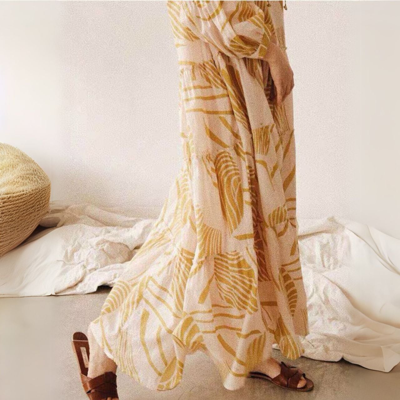 デザインプリントVネックロングワンピース 00651