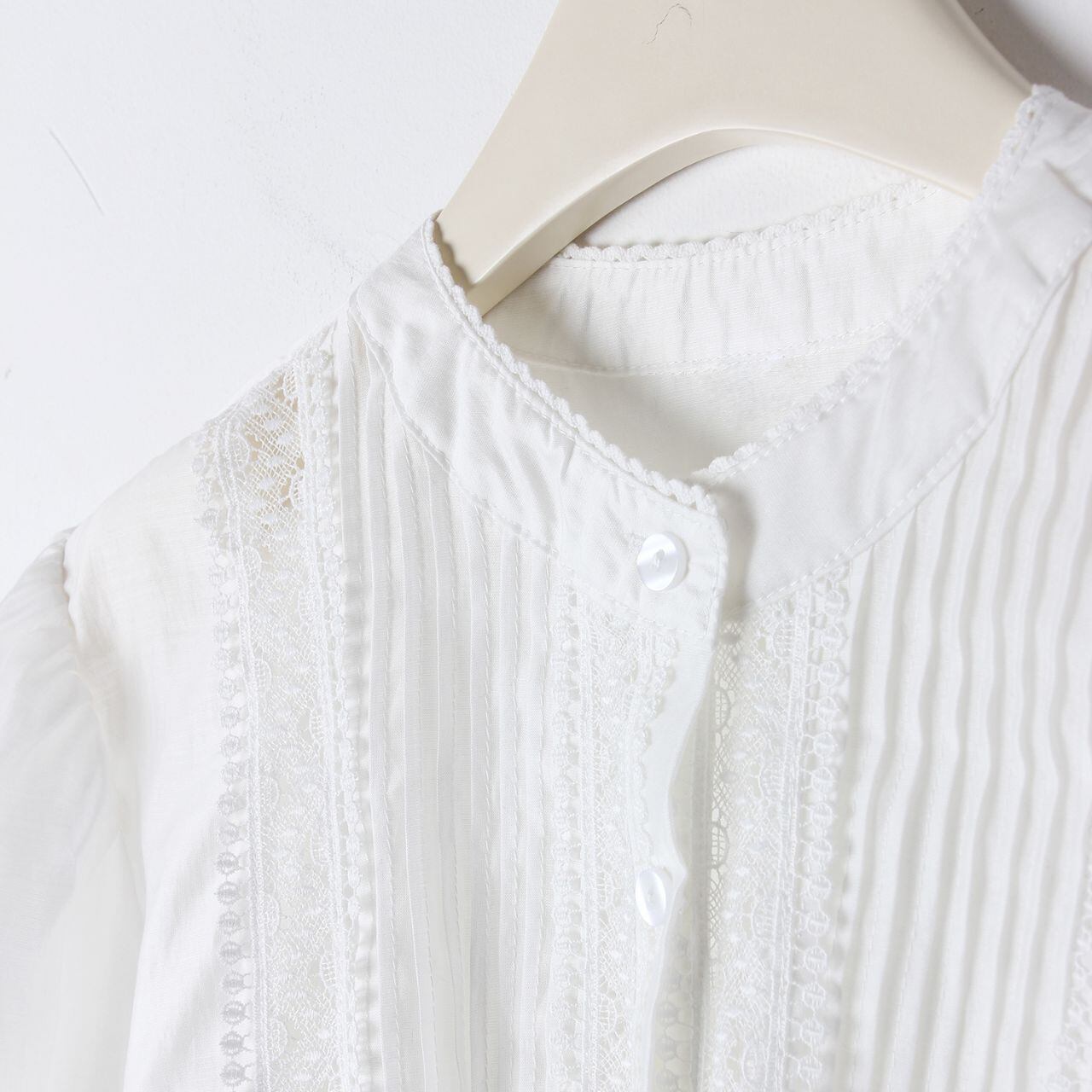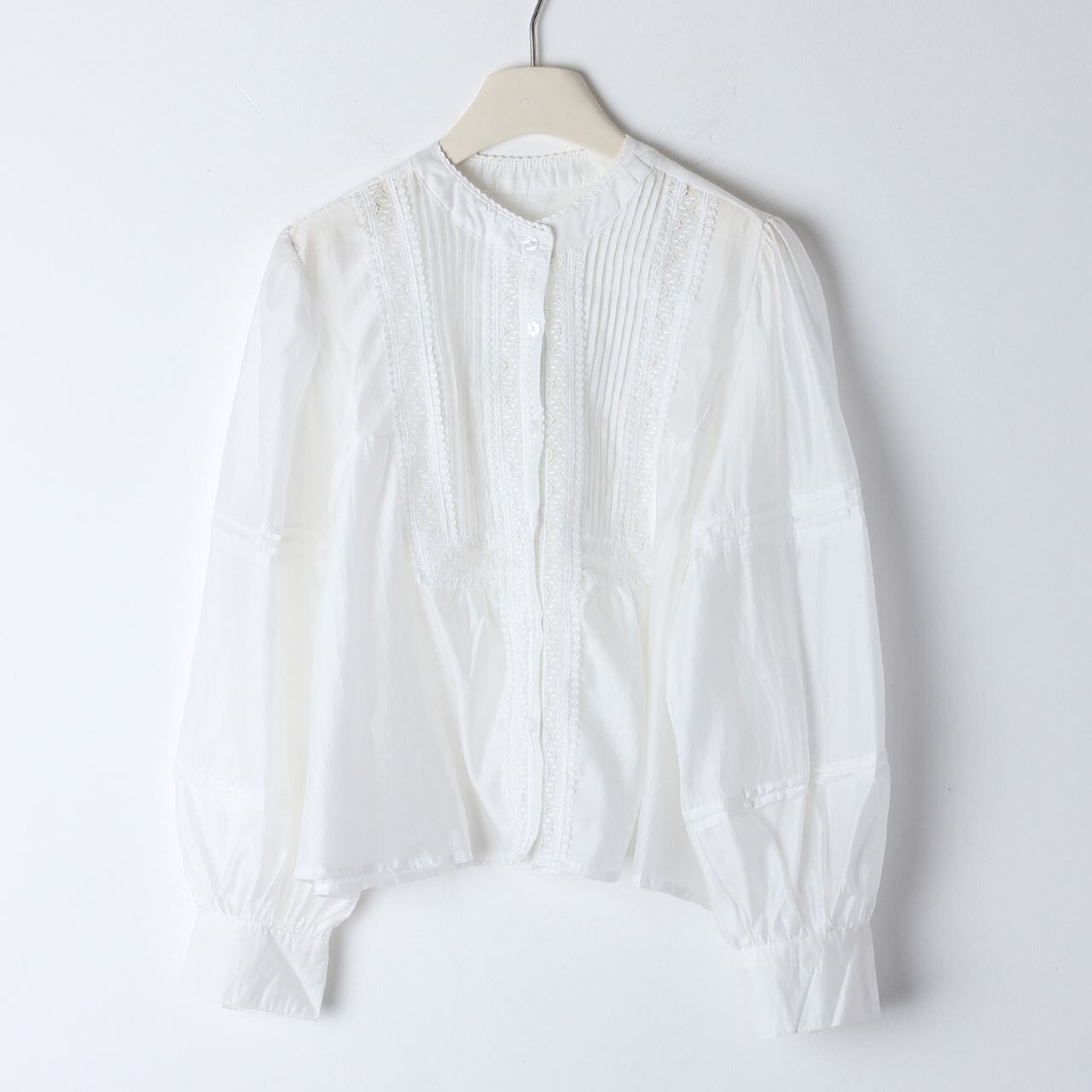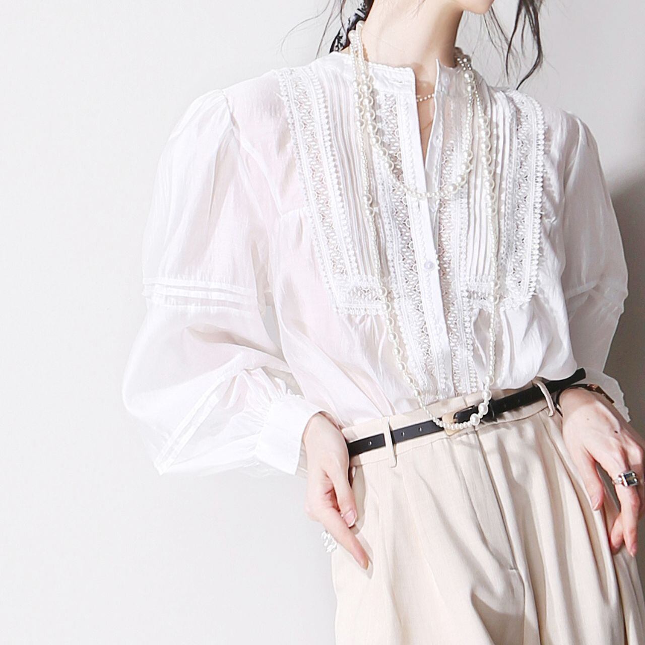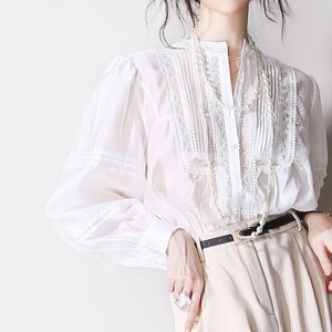 ヨーク切替レースバンドカラーロングスリーブブラウス 00656