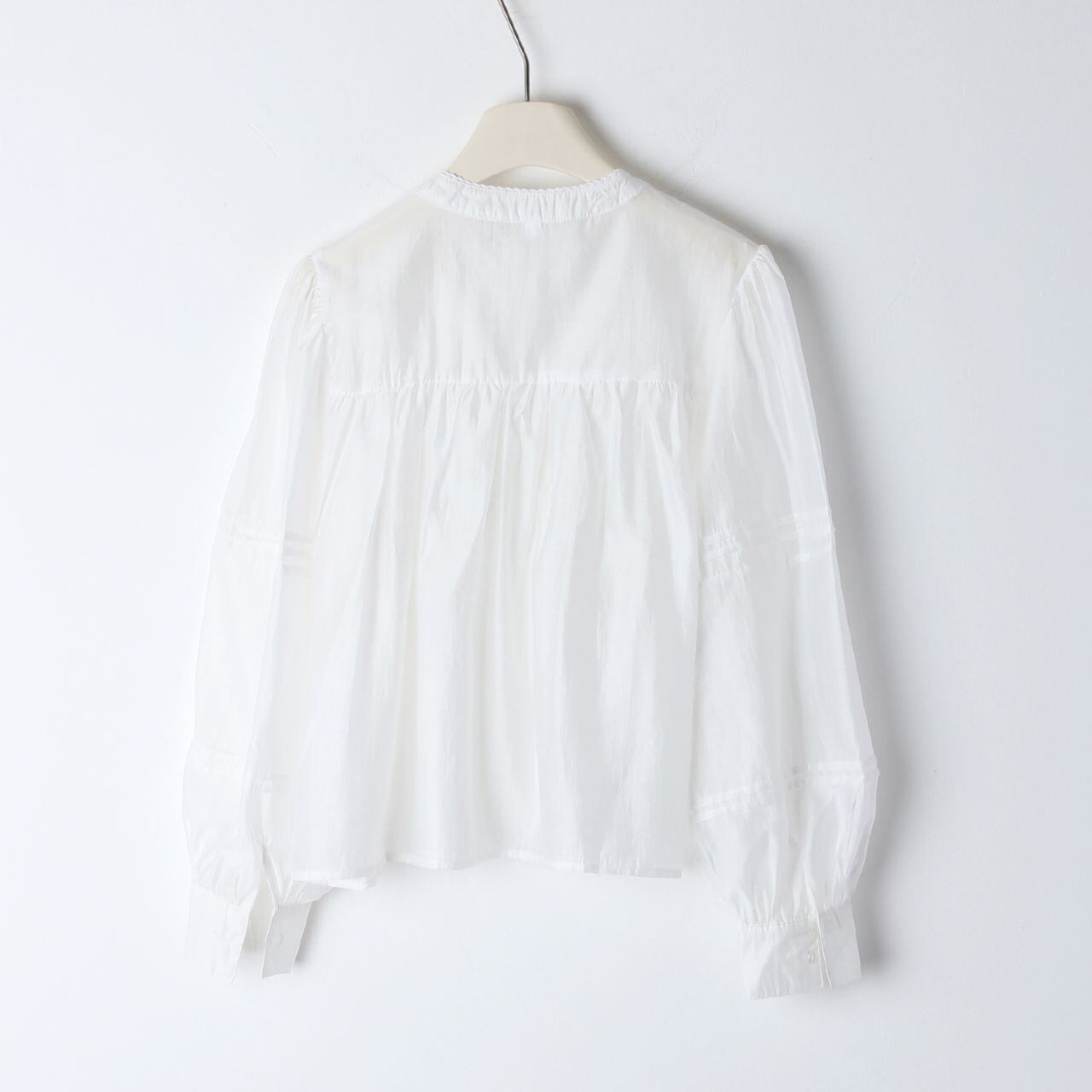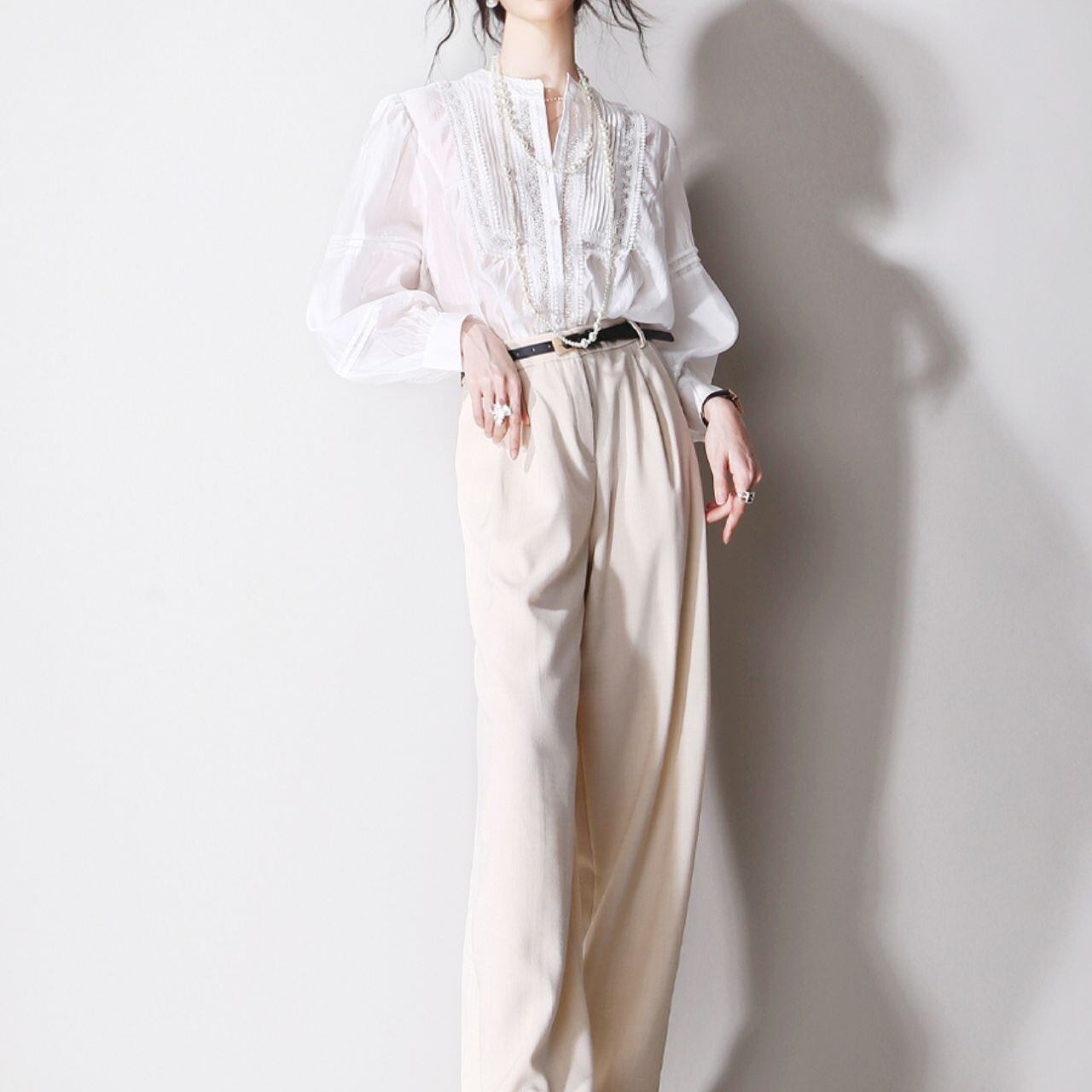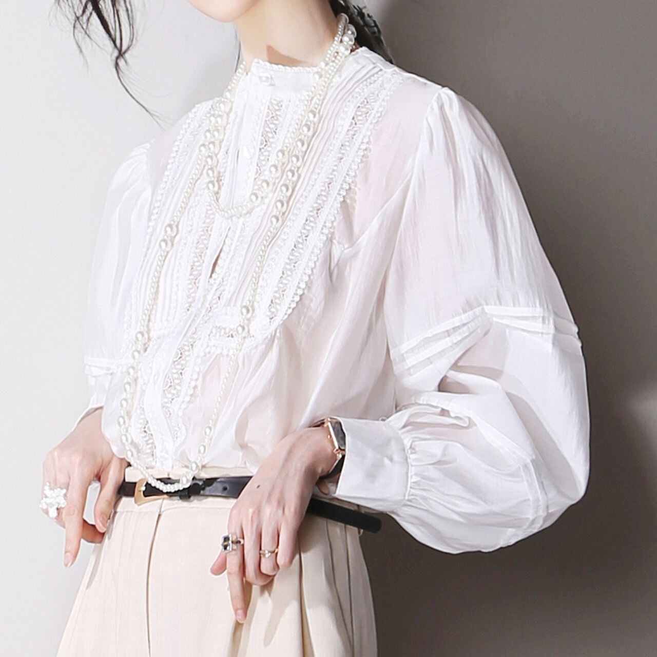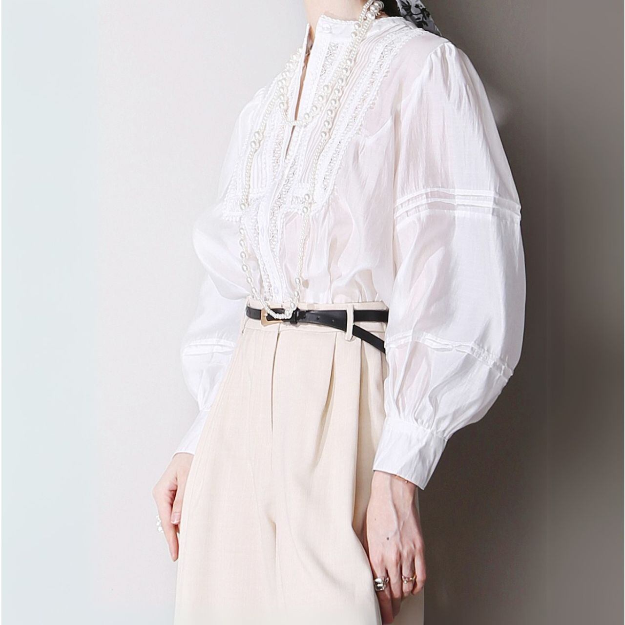 ヨーク切替レースバンドカラーロングスリーブブラウス 00656