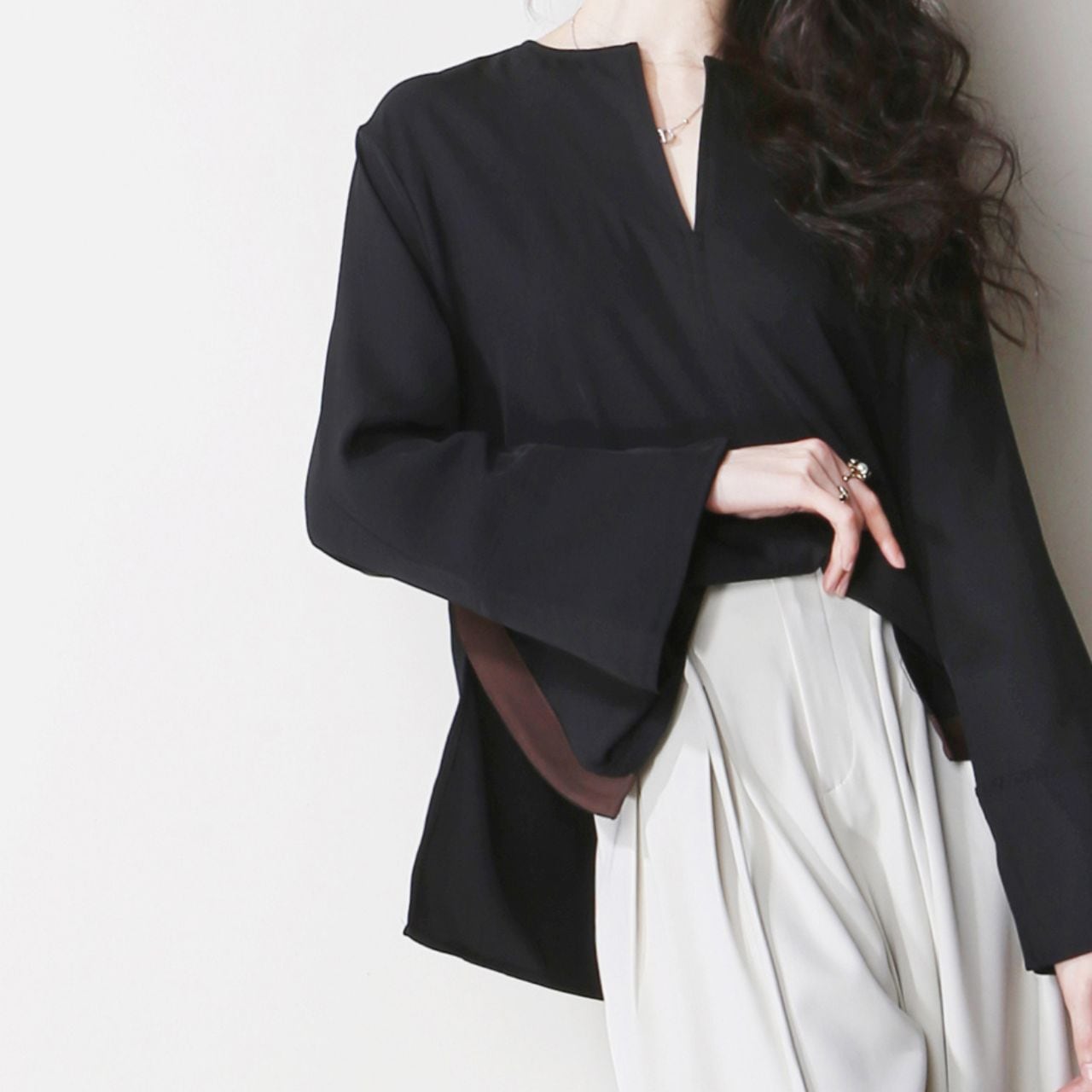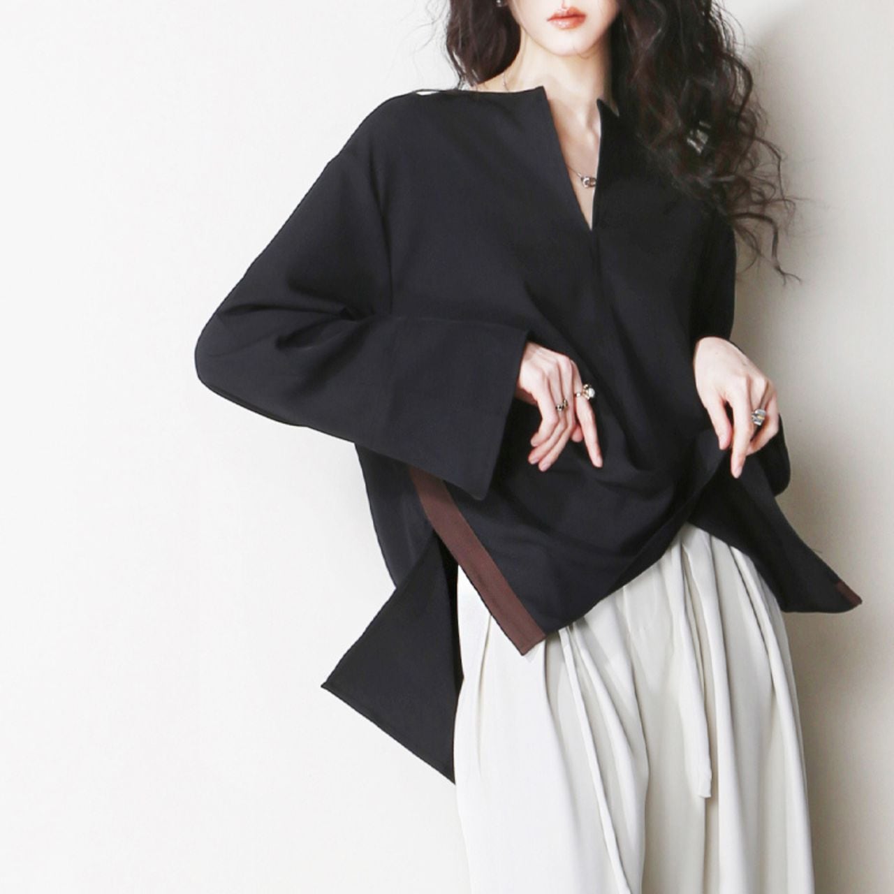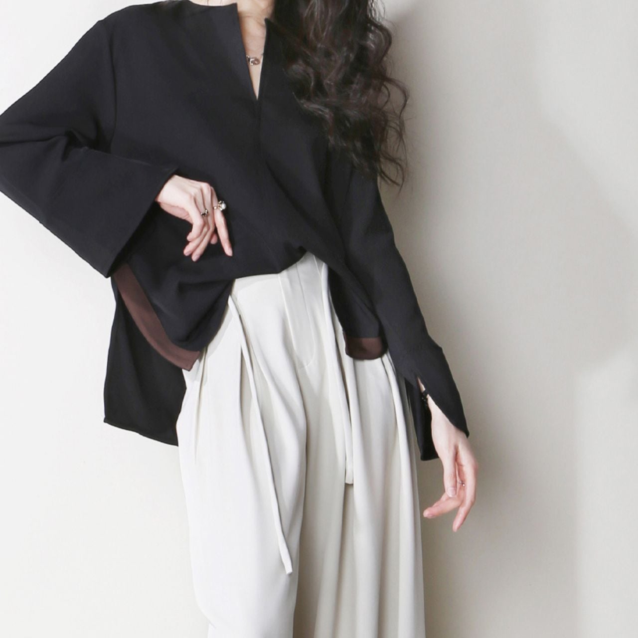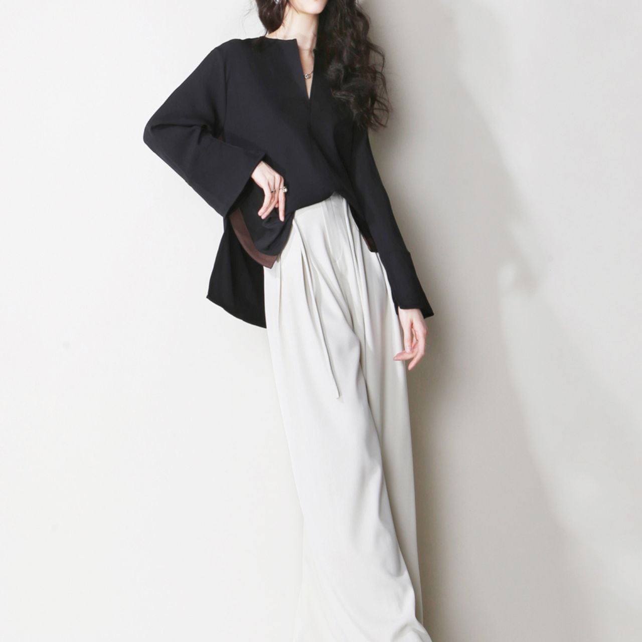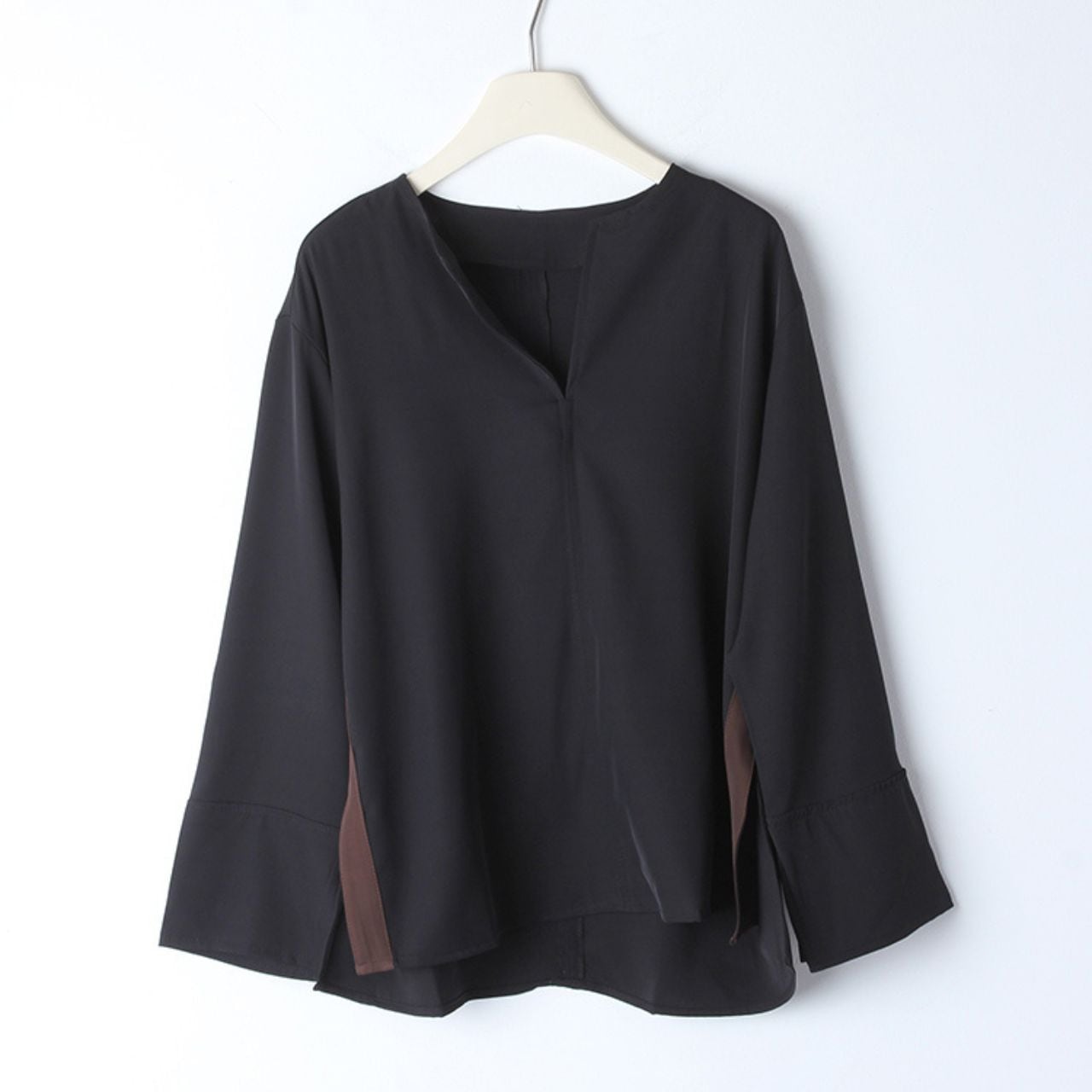 アシンメトリーヘムラインロングスリーブブラウス 00664