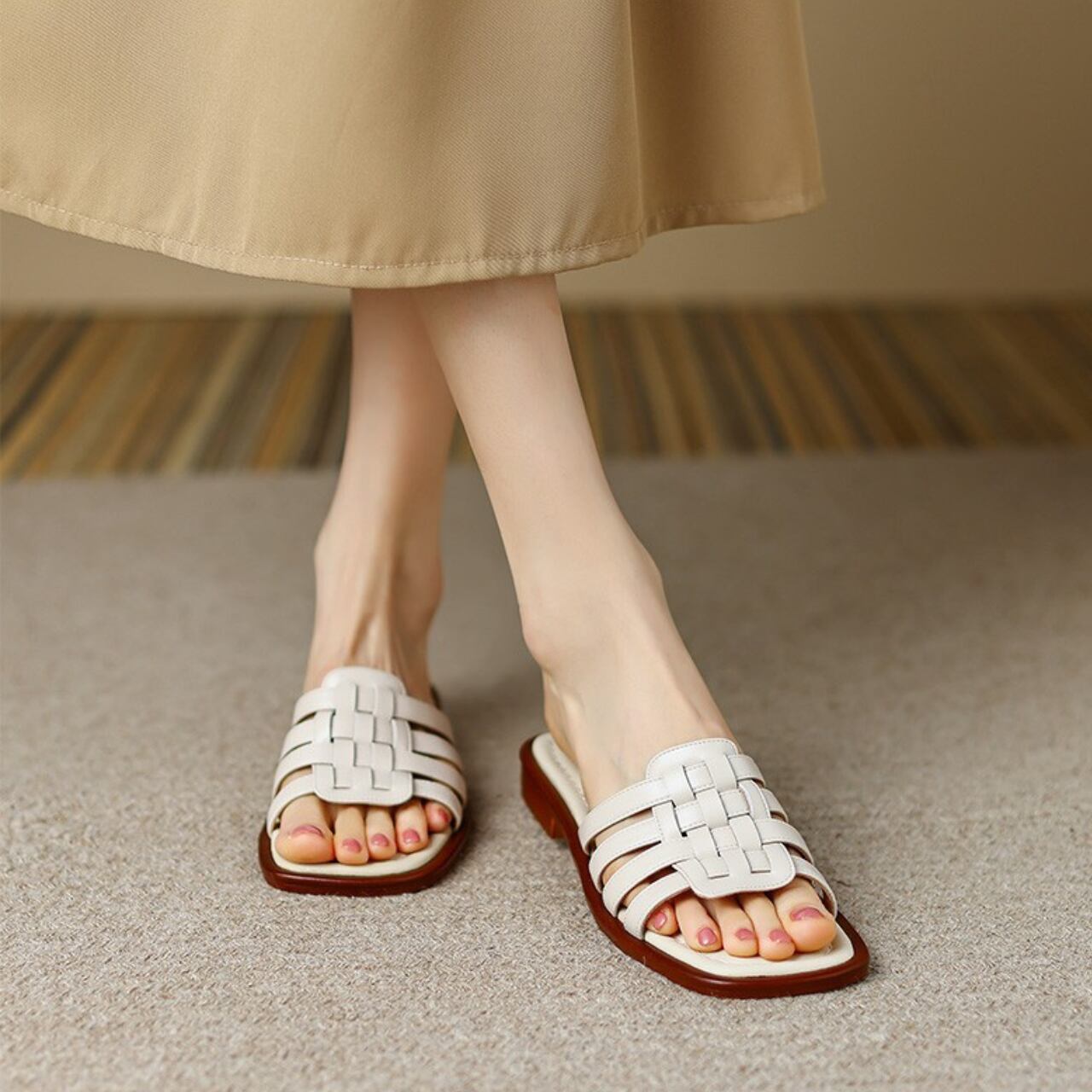 【白のみならOK?】レザーメッシュフラットミュール 00821