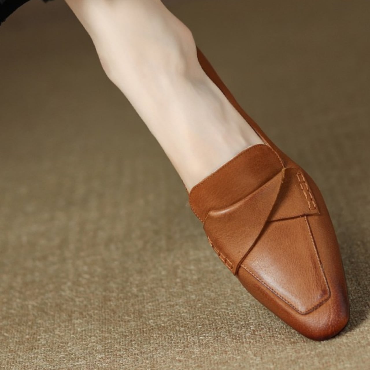 ポインテッドトゥレザーローヒールパンプス 00823