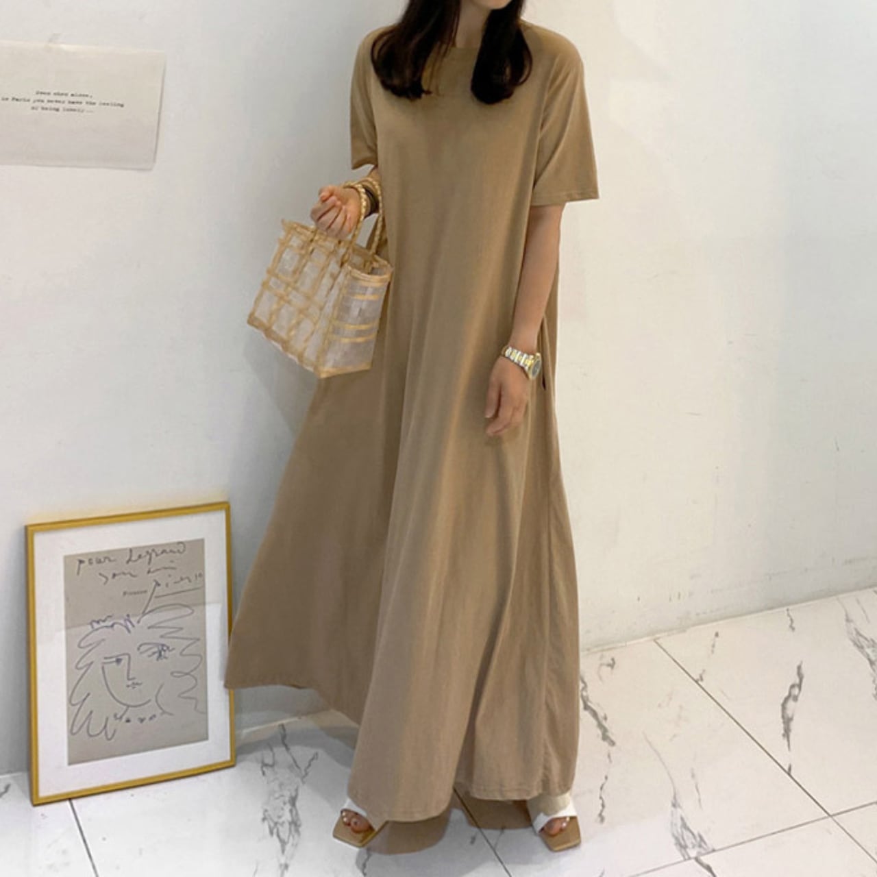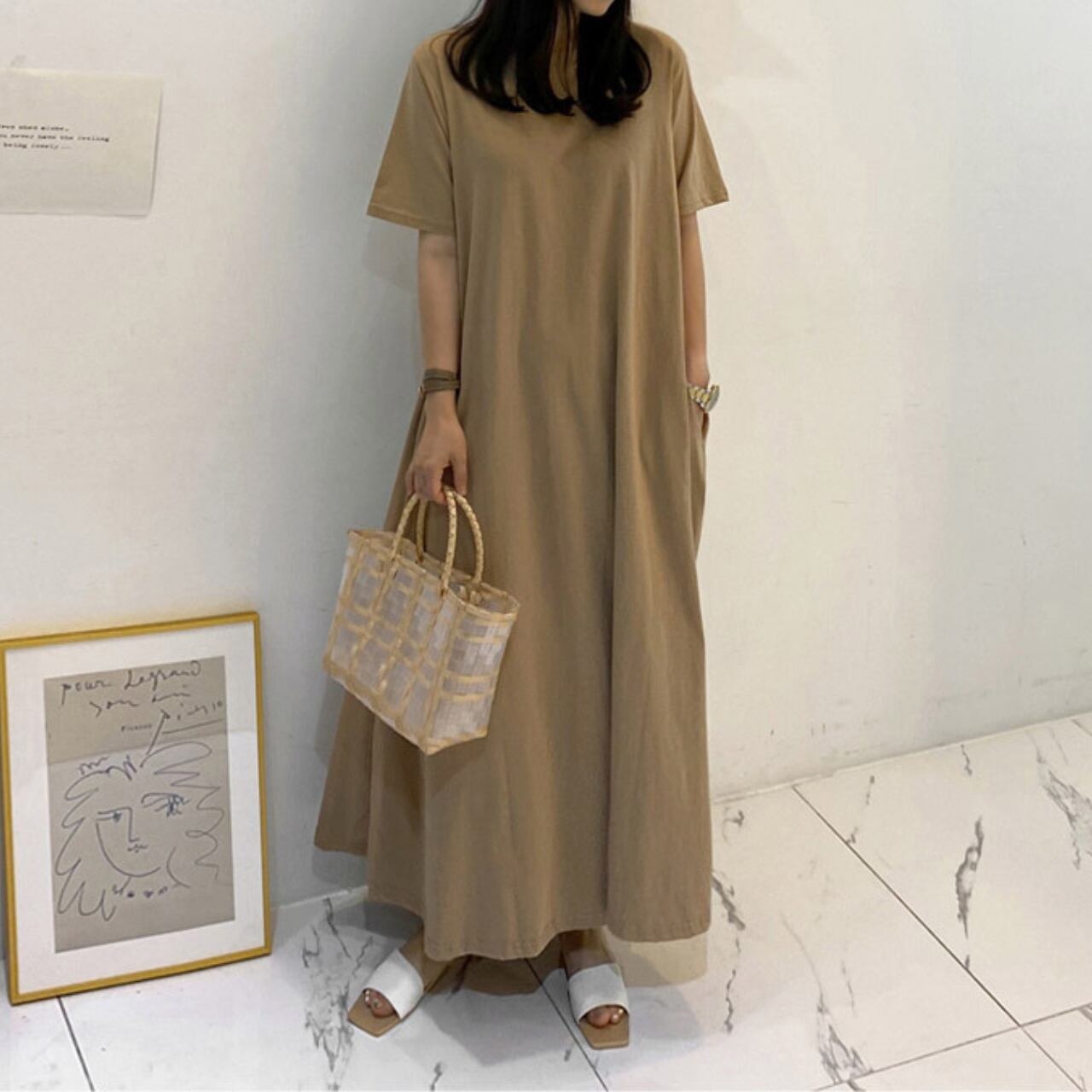 ロングTシャツ Aラインワンピース 00833