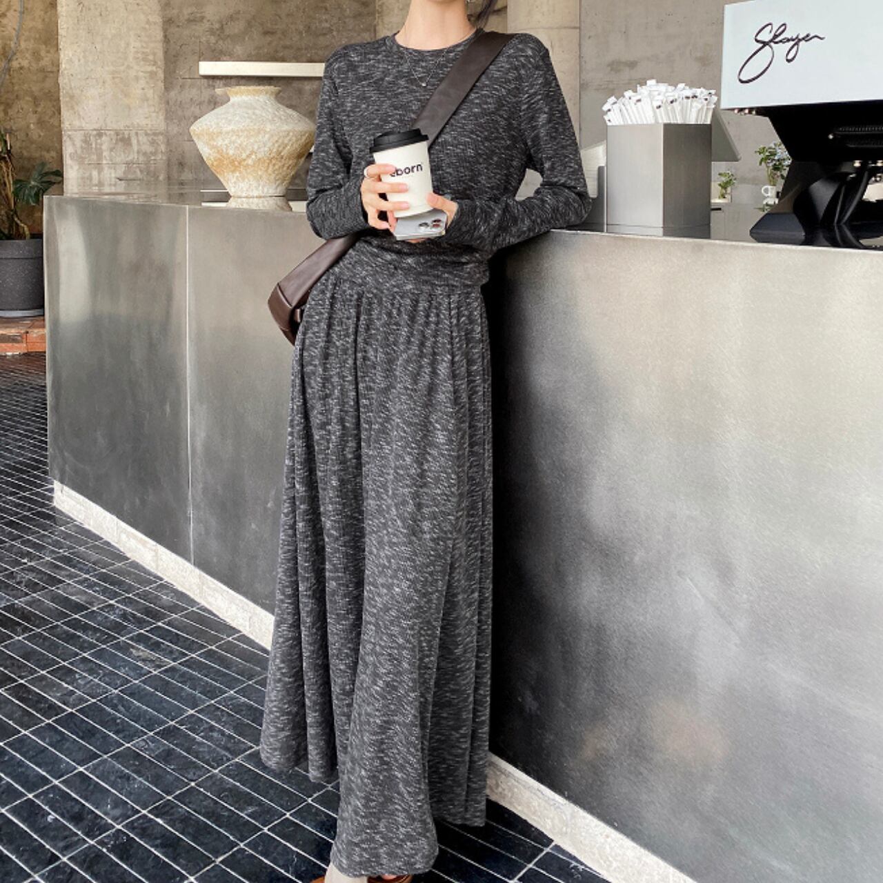 バックリボントップス&フレアスカートセットアップ 00848