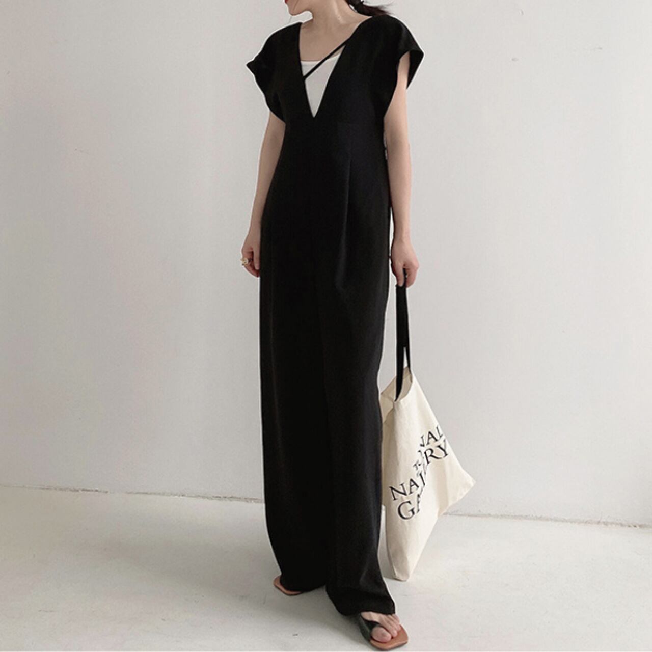 スクエアネックワイドレッグジャンプスーツ 00857