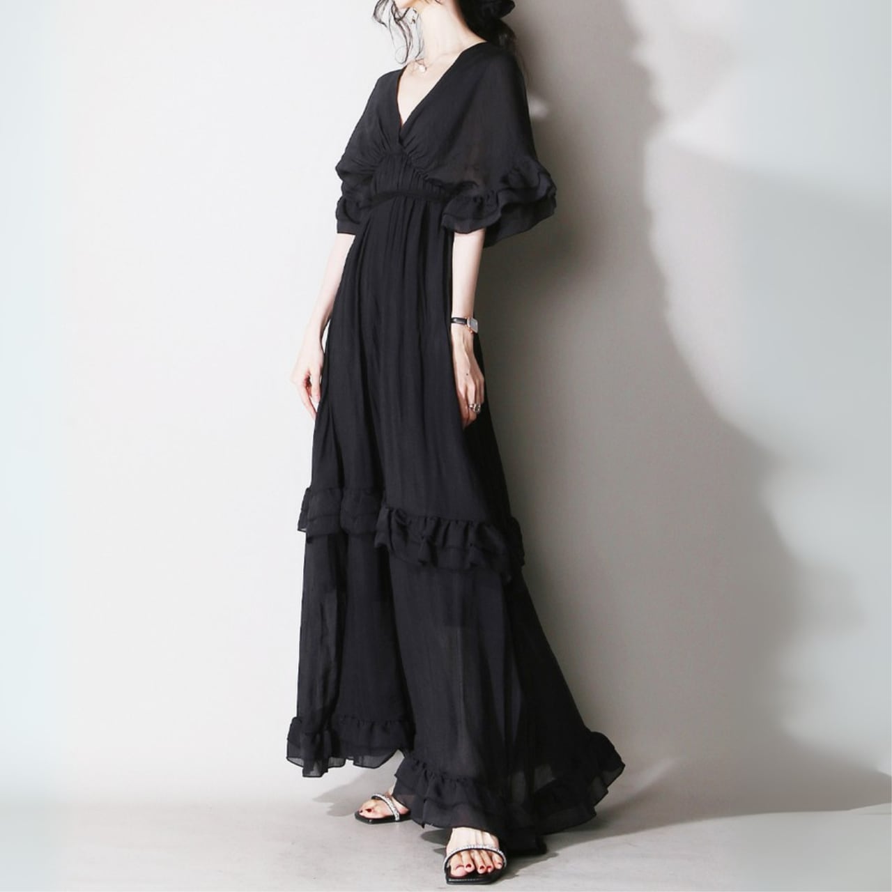 エアリーシフォンフレアスリーブワンピース 00859