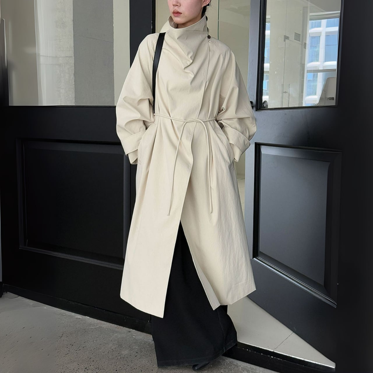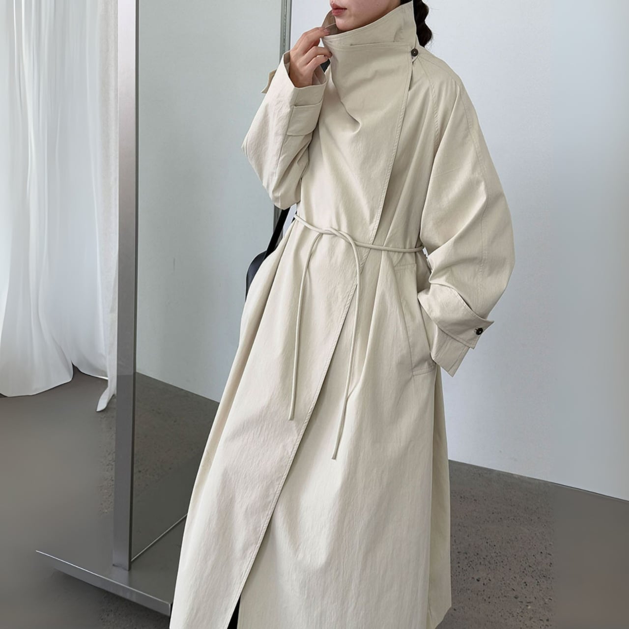 スタンドカラーロングトレンチコート 00890