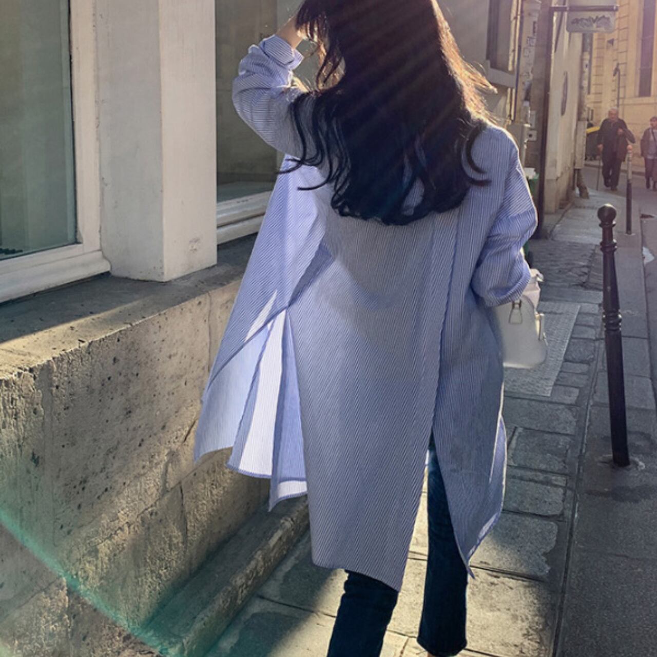 オーバーサイズストライプデザインシャツ 00916