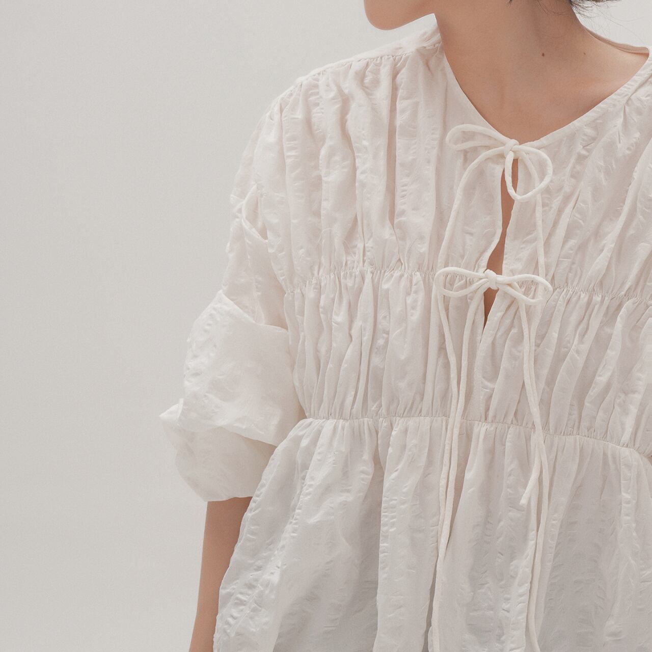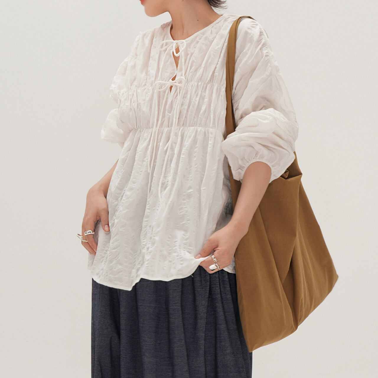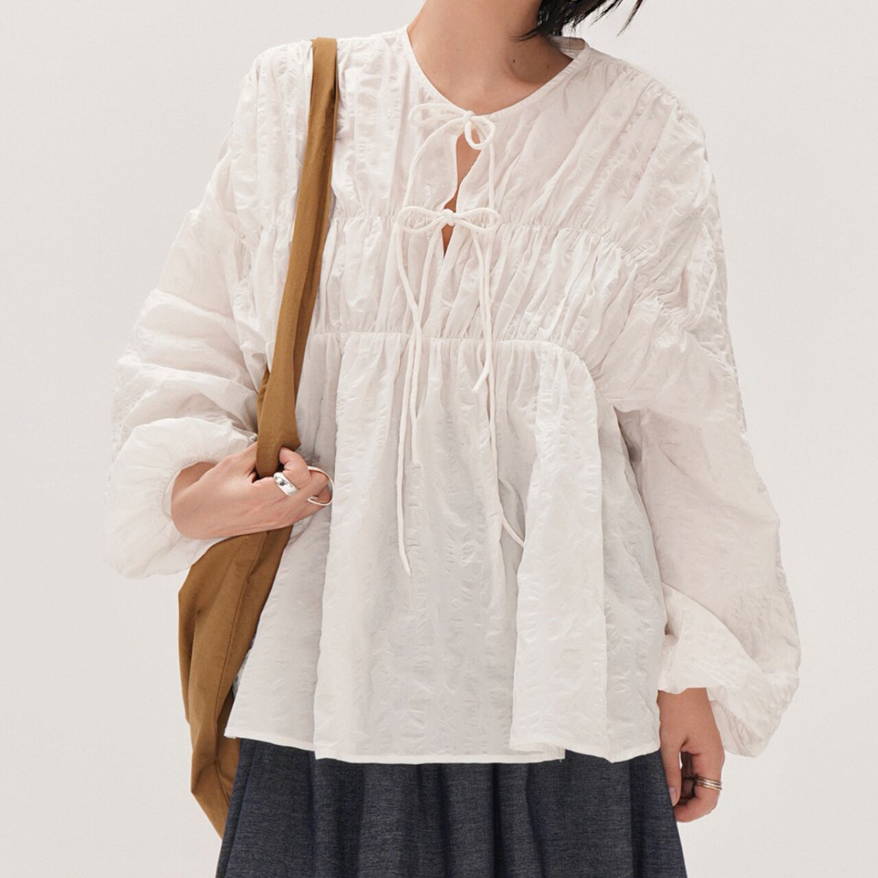 バルーンスリーブVネックロングスリーブブラウス 00923