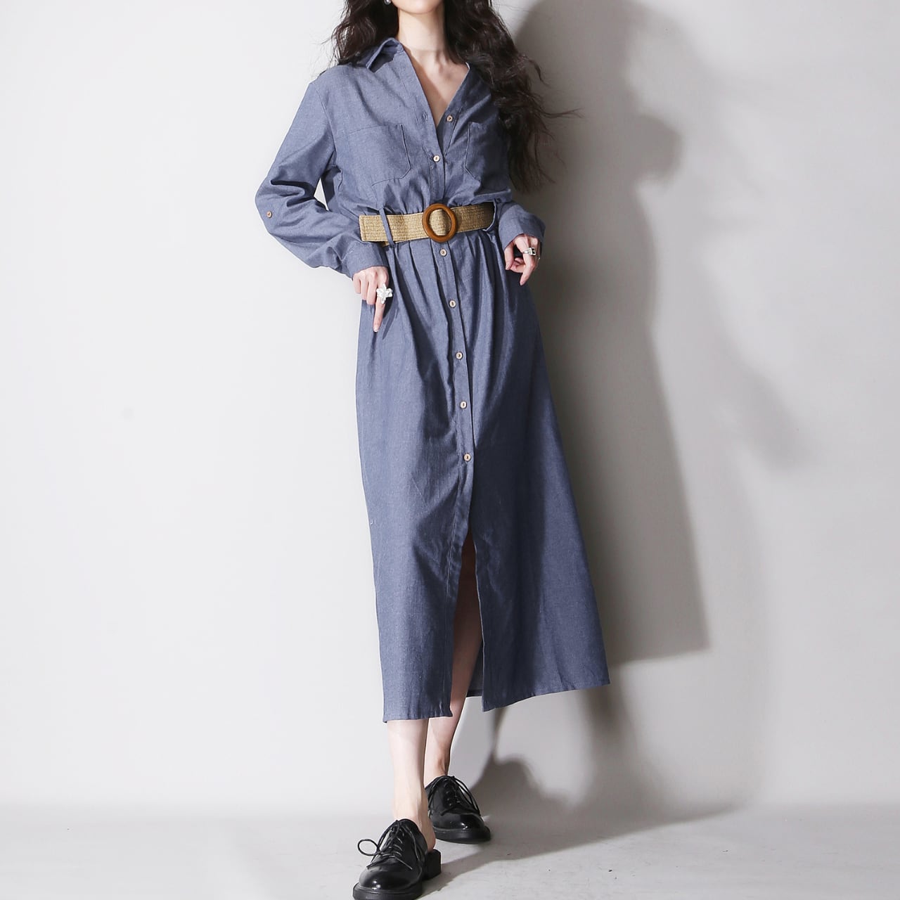 ベルト付きシャツワンピース 01033